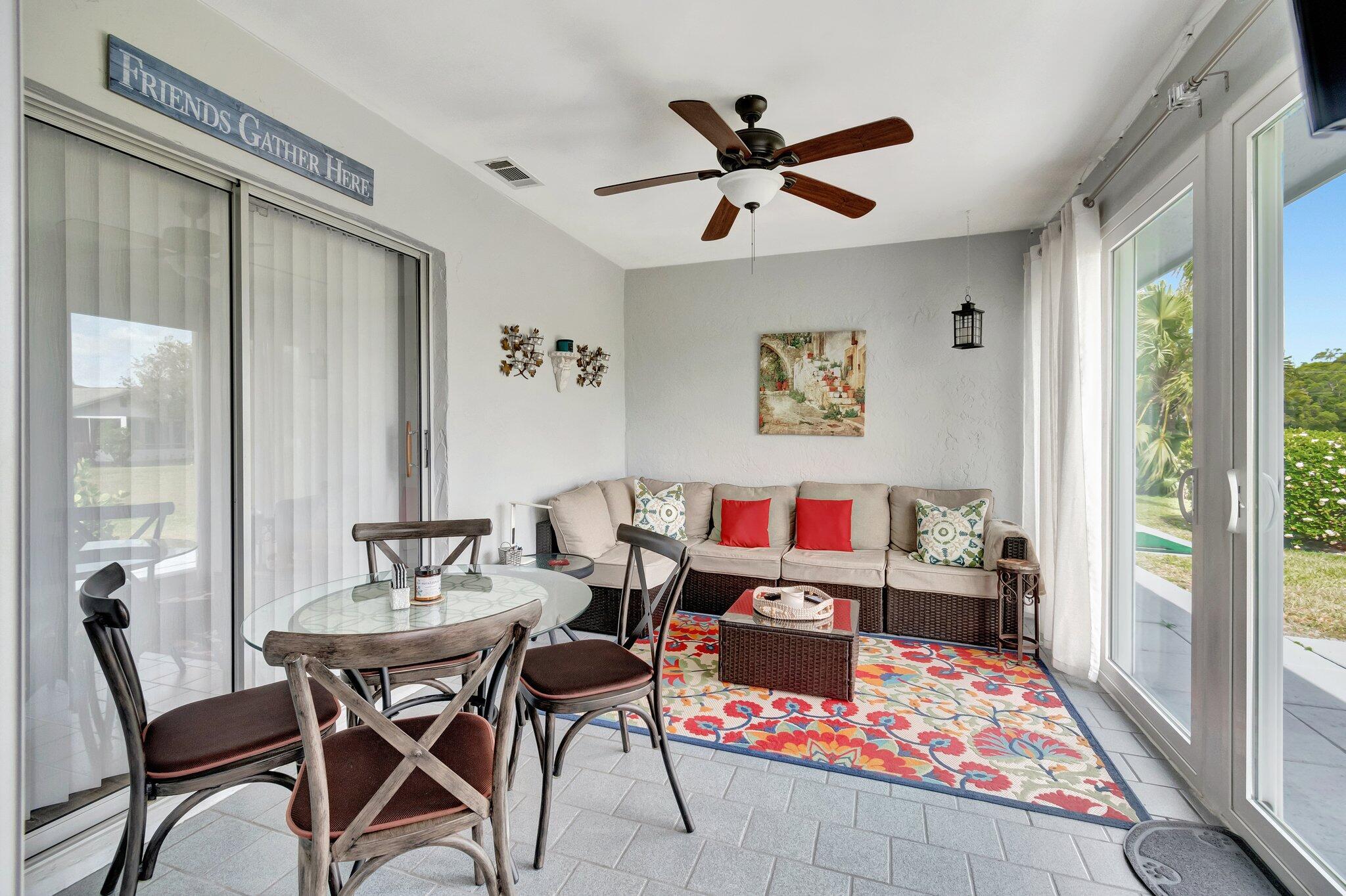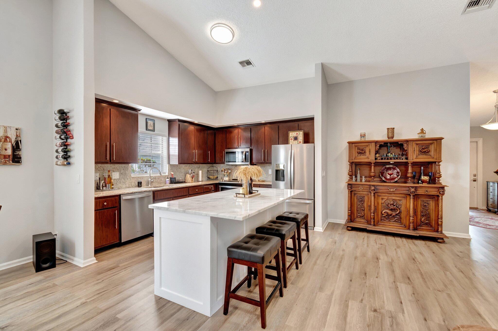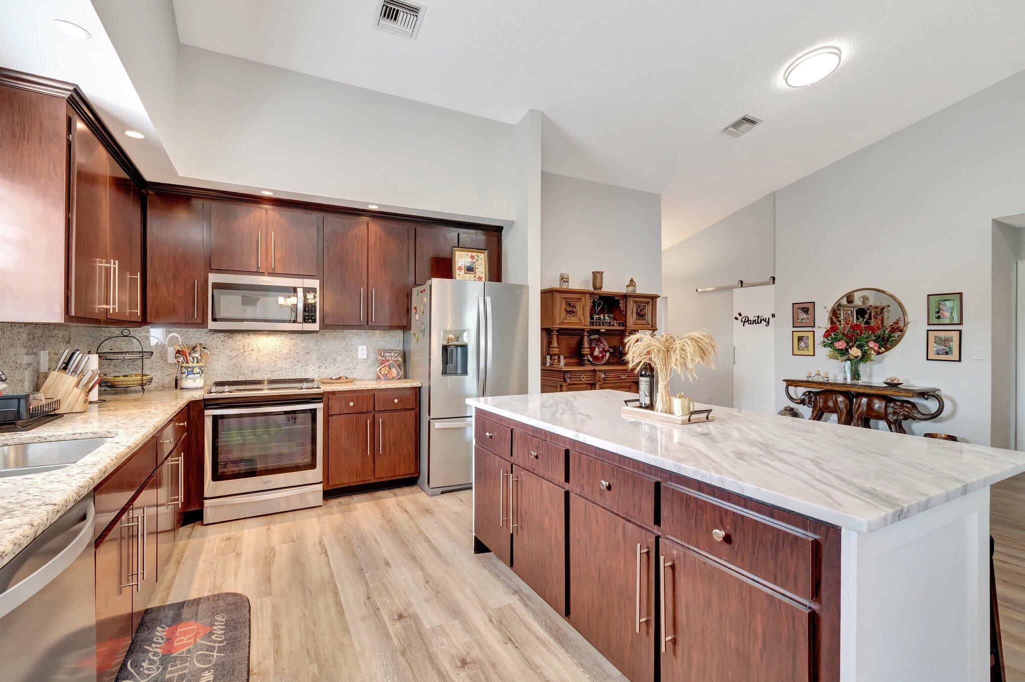 Beautiful home in the most desirable location. , Sunny and bright with open golf course vistas. This renovated home offers 2 bedrooms 2 bath plus, a den with queen-size murphy bed that can easily be turned into a 3rd bedroom, + 2 car garage. Vaulted ceilings and open floor plan that flows seamlessly from kitchen, marble countertop island into the living and dining areas.The den extends the width of the main area and continues into the Florida room that's airconditioned and it features hurricane impact doors with access to the patio, as well as sliding doors that lead into the main bedroom. Cypress Lakes is an Active Adult community with 18-hole golf course, swimming pool, hot tub, saunas, gym, tennis and pickle ball courts. So much more ..a must see.