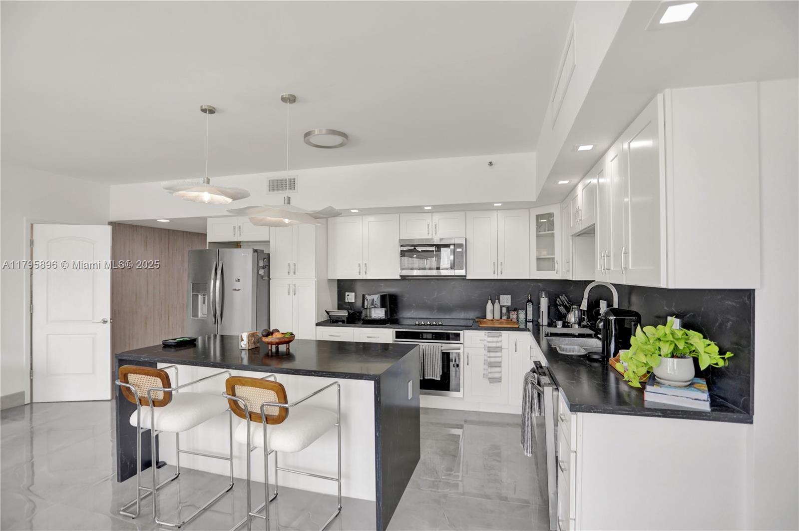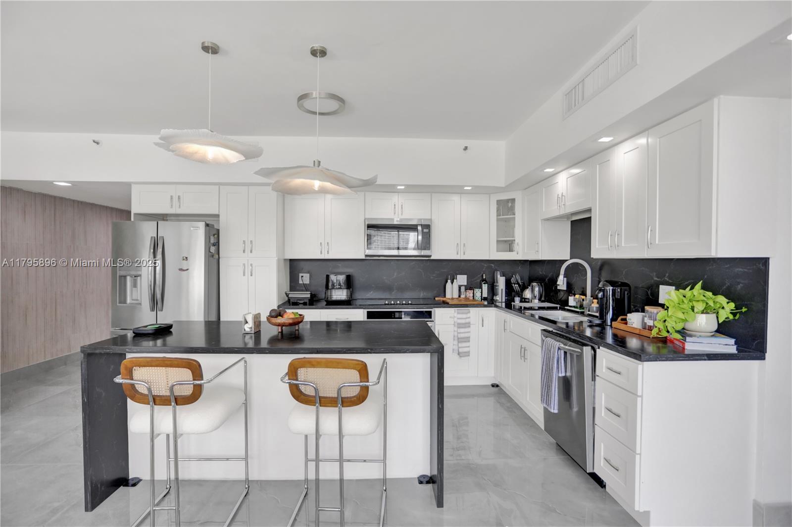Experience the most desirable private waterfront community in Sunny Isles. Located just minutes away from Oleta River State Park and Haulover Beach, Poinciana Island Yacht and Racquet Club offers a lifestyle and amenities rarely found in today’s market. This 3/bed 2.5/bath unique corner unit penthouse has been fully upgraded and boasts one of the best views on the island. It features its own private elevator entrance, a gourmet chef’s kitchen, and 3 private terraces totaling approximately 888 square feet. Relax in the outdoor hot tub and take in the beautiful Intracoastal and ocean views. Enjoy fast access to the beach and seamless indoor-outdoor living that capture the essence of South Florida coastal living. Dock space available. Don’t miss this opportunity!