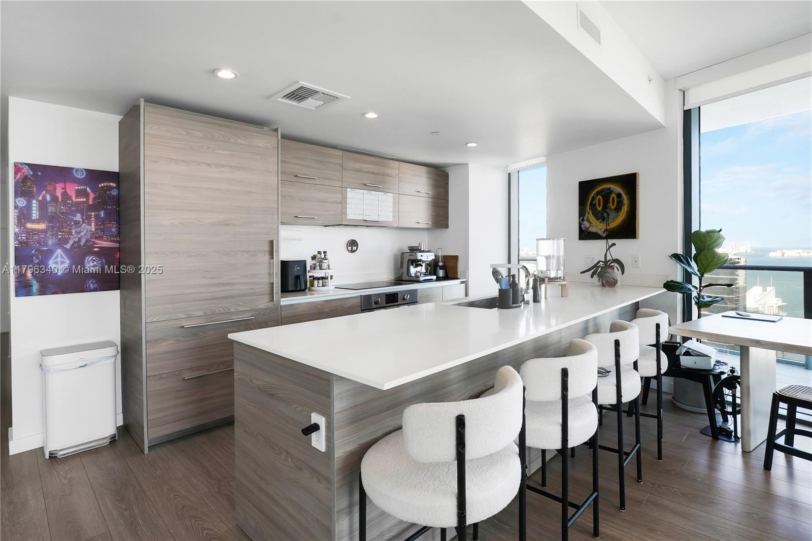 This elegant corner unit offers breathtaking views of the Miami skyline and Intracoastal Bay from a wraparound balcony. Designed by Philippe Starck, the interior exudes luxury, complemented by premium Bosch appliances in the kitchen. Residents enjoy top-tier amenities, including a rooftop pool, spa, fitness center, and five-star dining on the ground level. Located steps from Mary Brickell Village and Brickell City Centre, with easy access to Brickell Avenue and I-95, this home offers unparalleled convenience for both work and leisure.