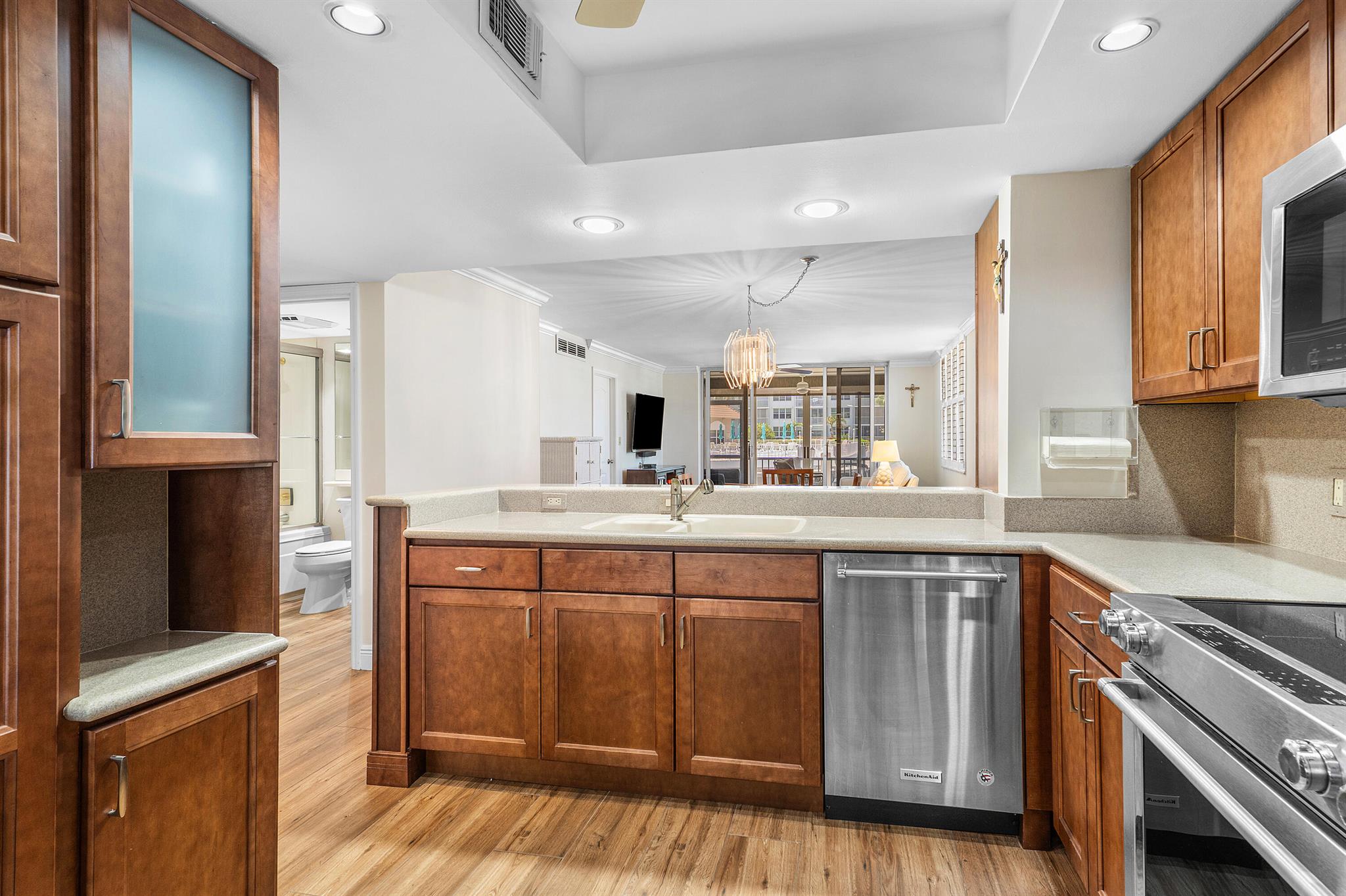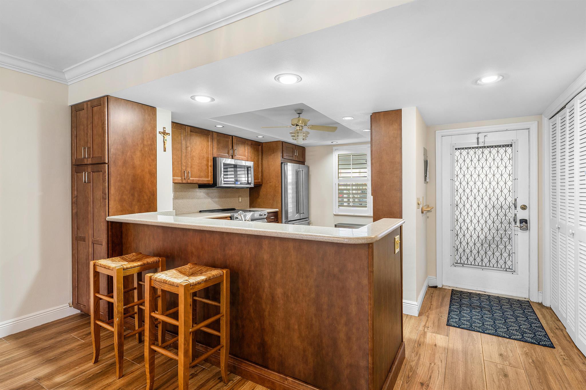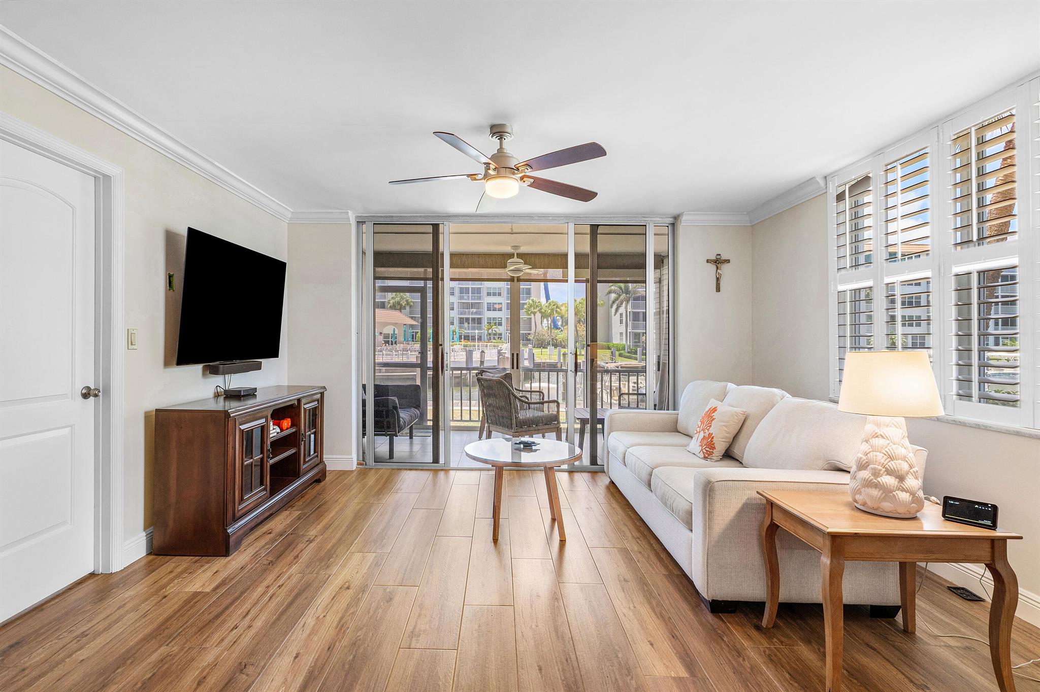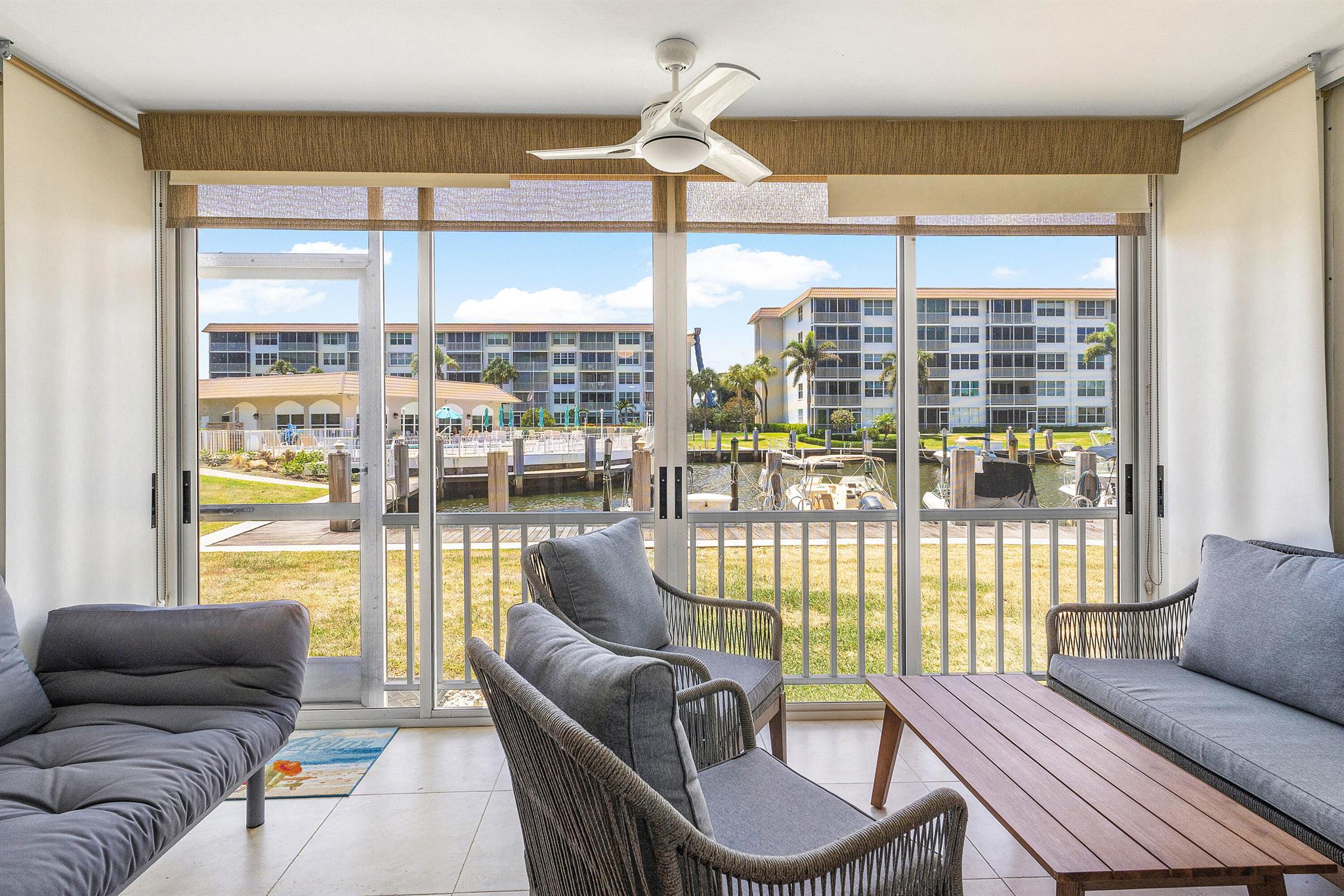 Enjoy stunning sunsets from this beautifully renovated and fully furnished 2-bedroom, 2-bath corner unit, a true turnkey coastal retreat. Thoughtfully updated and designed with a modern, contemporary flair, this first-floor residence boasts an open-concept kitchen with stainless steel appliances, custom cabinetry, a coffee bar, and an oversized island perfect for entertaining. The primary bedroom offers serene marina views, a walk-in closet, and a private full bath, while the versatile second bedroom features a excellent office or guest room. Step onto your private balcony with new impact windows and electric shutters, and take in sweeping views of the pool and marina. Located in a sought-after 55+ intracoastal-front community just 5 minutes from vibrant Atlantic Avenue Over 1,200 Sqft!