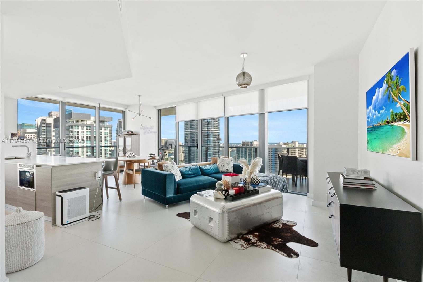 This bright and spacious 2/2 + Den corner unit boasts 1,279 square feet of elegantly designed living space, featuring a versatile den perfect for a home office or guest room. Enjoy panoramic skyline and ocean views from abundant windows which fill the space with natural light. The unit features high-end finishes, a contemporary kitchen with top-of-the line appliances and modern bathrooms. The spacious layout is perfect for entertaining, with a seamless flow between the living, dining, and kitchen areas. Situated in the vibrant Brickell neighborhood just steps away from world-class dining, shopping, and nightlife. Building amenities include: lap pool, rooftop pool, state-of-the-art gym, business center, clubroom & more. Unit comes with 1 assigned parking spot: #650; 2 pets allowed per unit