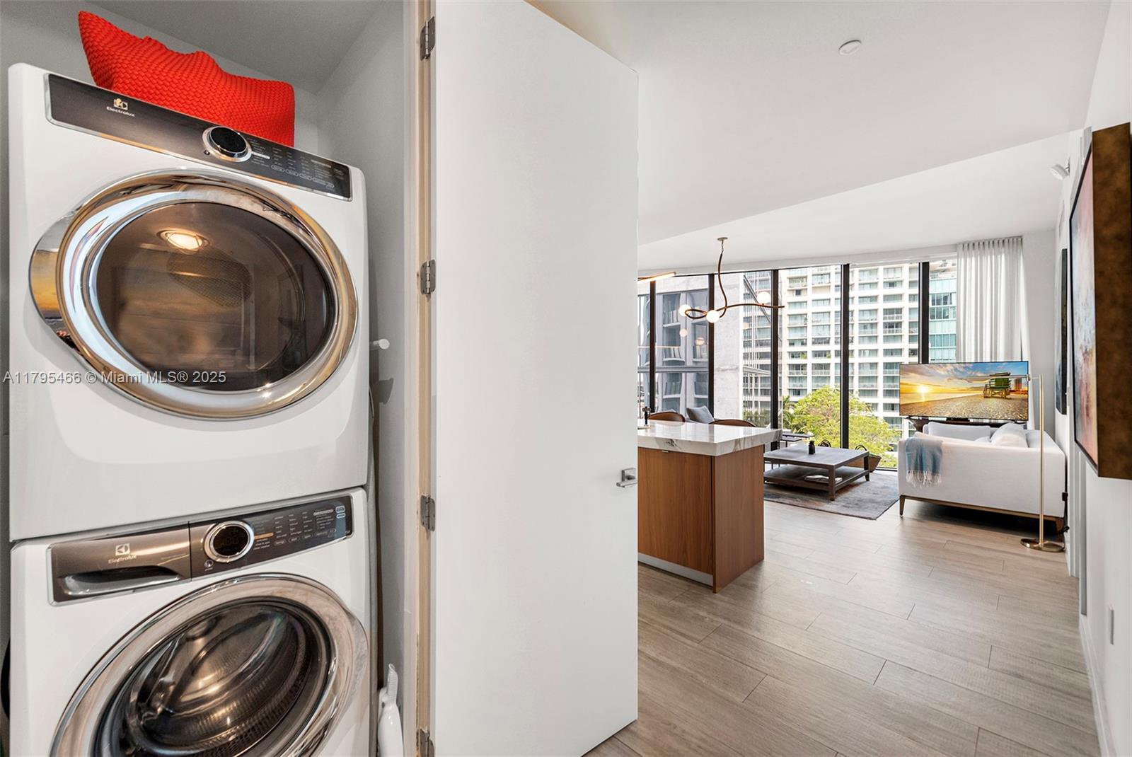 Discover luxury living at Park Grove's Club Residences, crafted by renowned architect Rem Koolhaas in the heart of Coconut Grove. The elegant unit features 10' ceilings, sleek porcelain flooring, premium Wolf+Sub Zero appliances, and a versatile split layout with a private den. Impeccable high-end finishes elevate every detail. Spanning 5 acres, Park Grove boasts lush gardens and top-tier amenities, including a private screening room, a wine tasting room with storage options, full-service signature spa, a state-of-the-art fitness center, multiple pools w/ cabanas & BBQ area, poolside restaurant (w/ in unit delivery) and a rooftop pool with breathtaking views. Unit comes w/ valet parking. Located just steps from CocoWalk’s vibrant shops, restaurants, cafés and bars, your dream home awaits!