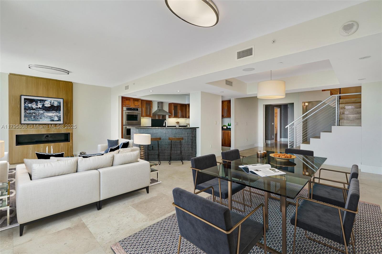 This stunning two-story condo in the vibrant Peninsula II community exemplifies the luxury resort lifestyle of South Florida, offering exceptional waterfront living. Enjoy breathtaking views of the Intracoastal Waterway, the ocean, and the Sunny Isles skyline. The thoughtfully designed floor plan and refined finishes throughout the unit exude elegance. Italian marble floors flow through each room, leading to a chef-ready kitchen with premium Sub-Zero and Thermador appliances. Residents can access a wealth of amenities, including two swimming pools, a full-service spa, three tennis courts, a children’s play area, a BBQ pavilion, and a nearby park. With 24-hour valet service, every detail of upscale living is meticulously attended to.