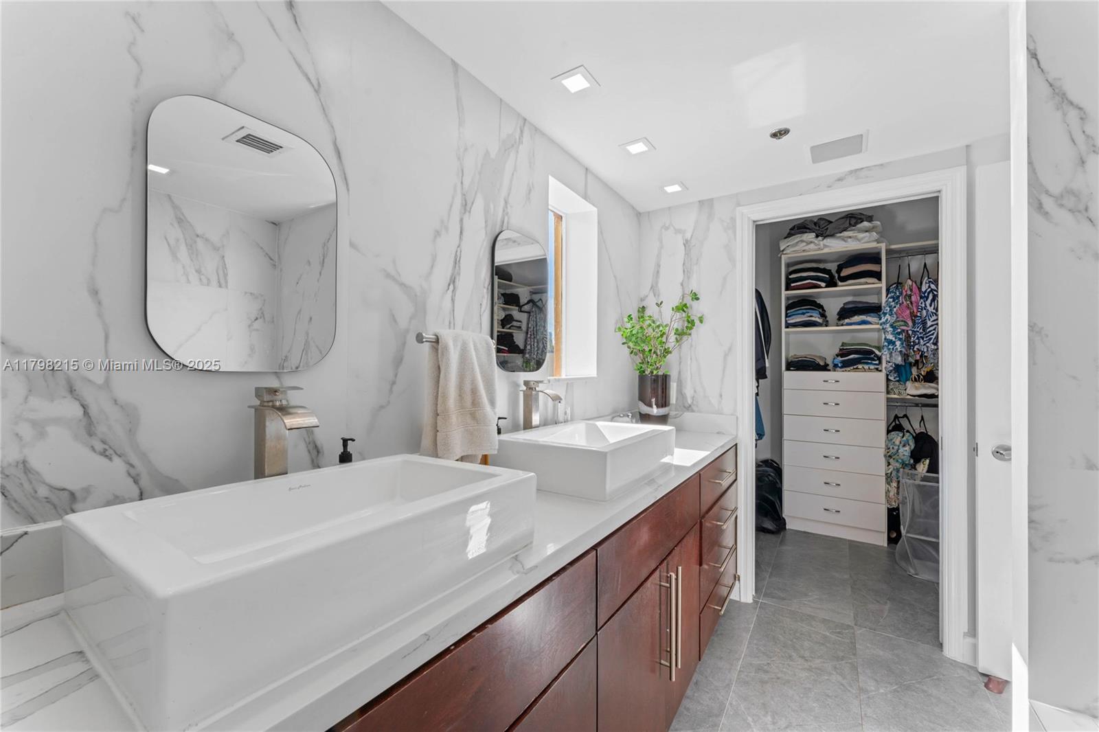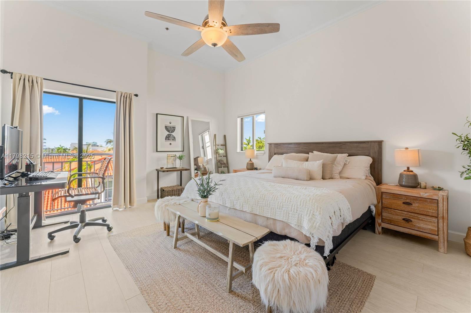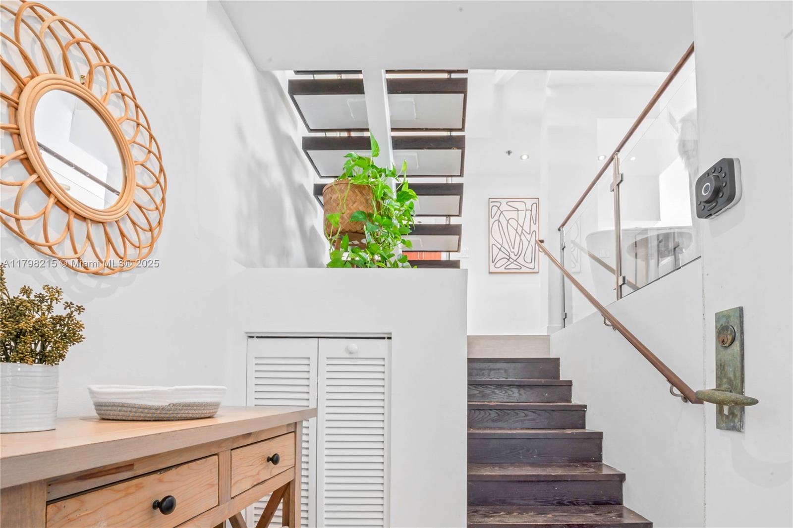 Come visit this gated community in the heart of Miami Beach’s SOFI district. This quiet, serene complex is just steps from running and bike trails on Miami Bch boardwalk, South Pointe Park, Marina, and the city's trendiest restaurants and cafes. This modern condo features approx. 750 sq ft of private, multi-level outdoor space. One bedroom and a full bath are on the main level. Upstairs, the primary and guest bedrooms have en-suite full baths and extra high ceilings. The unit was beautifully remodeled, including bathrooms, new Porcelain floors, a Quartz kitchen countertop, a new AC, appliances, and washer/dryer. Residents enjoy two pools surrounded by lush gardens, a gym, hot tub, and courtyards. One pkg spot is included with free guest pkg & a Storage. Lowest price/sq ft in The Courts!