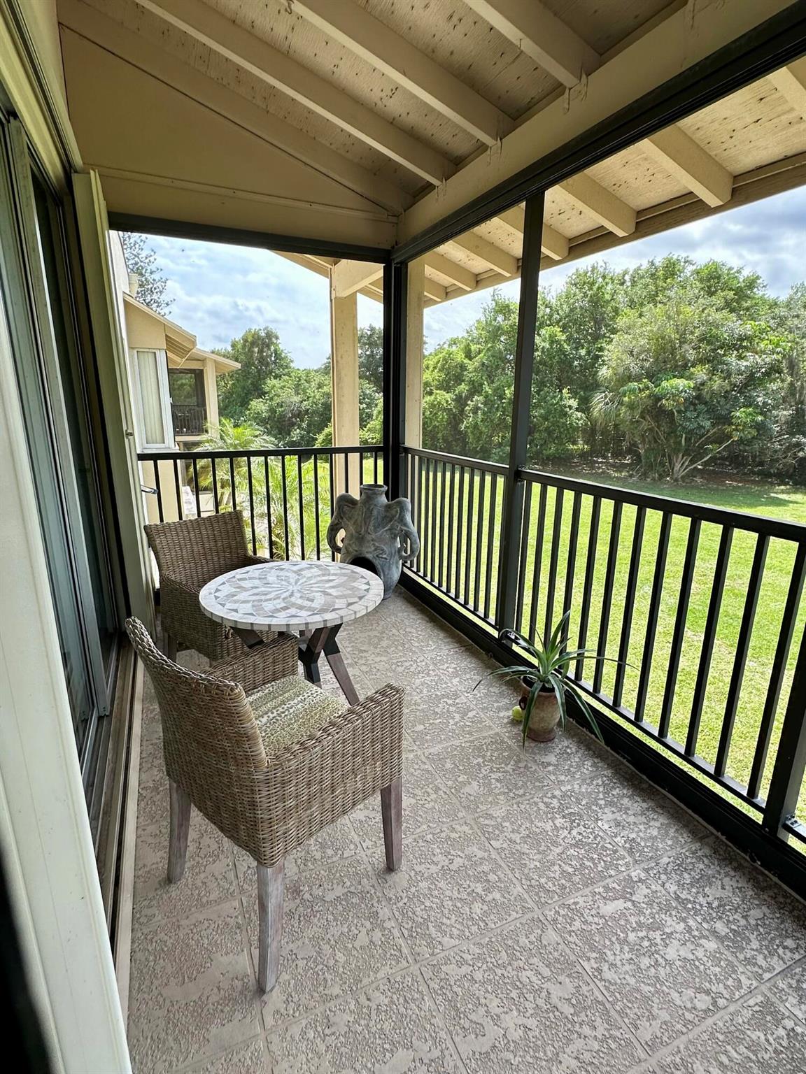 Welcome to The Longwood, a beautifully maintained condominium community offering resort-style living in a serene, tropical setting. This bright and spacious corner unit is nestled within a peaceful, over 55+ complex featuring lush landscape, ample green space with shaded area and a sparkling pool with cabana, perfect for relaxing or socializing under the Florida sun! This spacious unit features elegantly remodeled tile baths, open floor plan with generously sized LR with sliders to the screened wrap-around balcony. The views are superb of the flora and fauna around you! The kitchen is modern and bright with high ceiling and all white appliances. The dining area opens to the main living space which is a perfect place for entertaining! The master bedroom and guest rooms are
