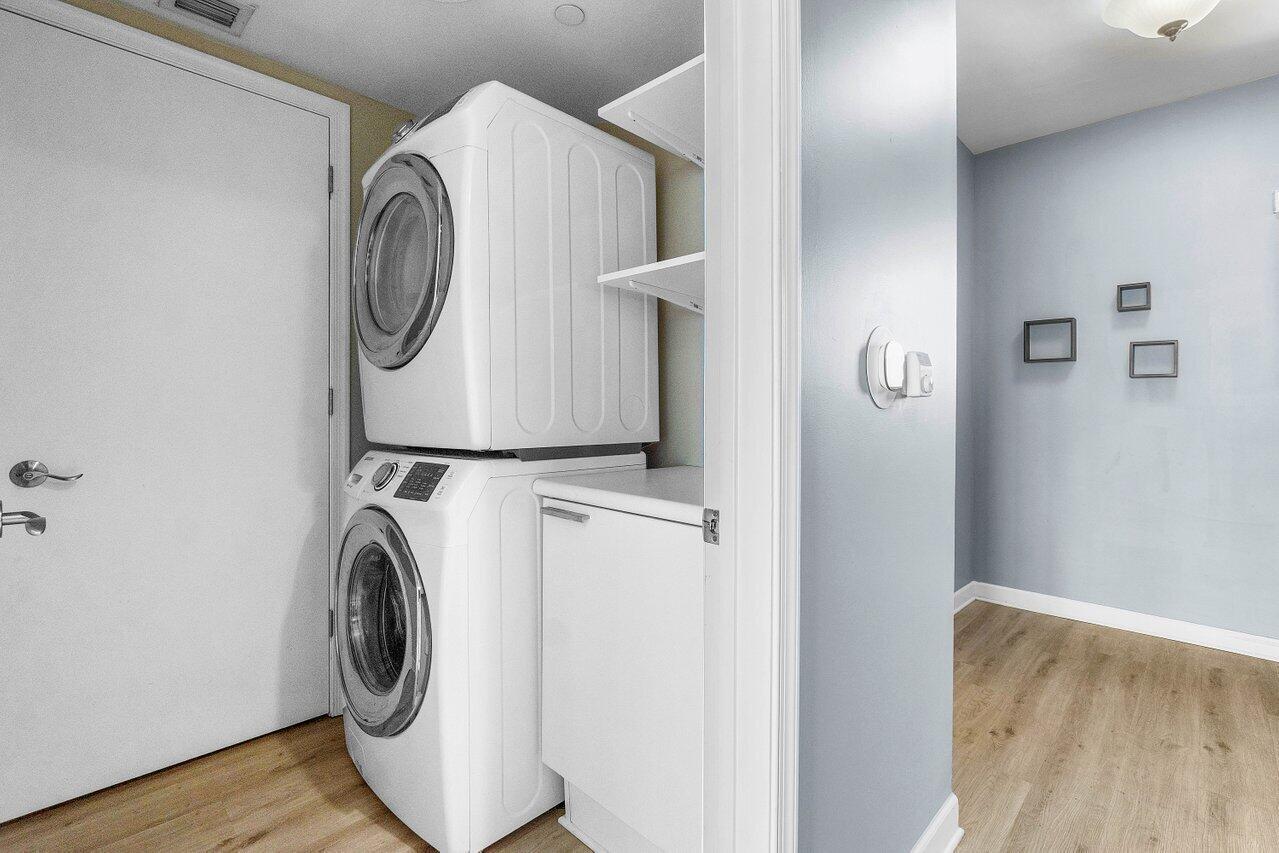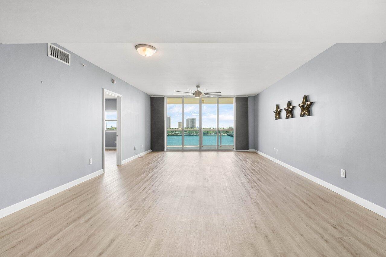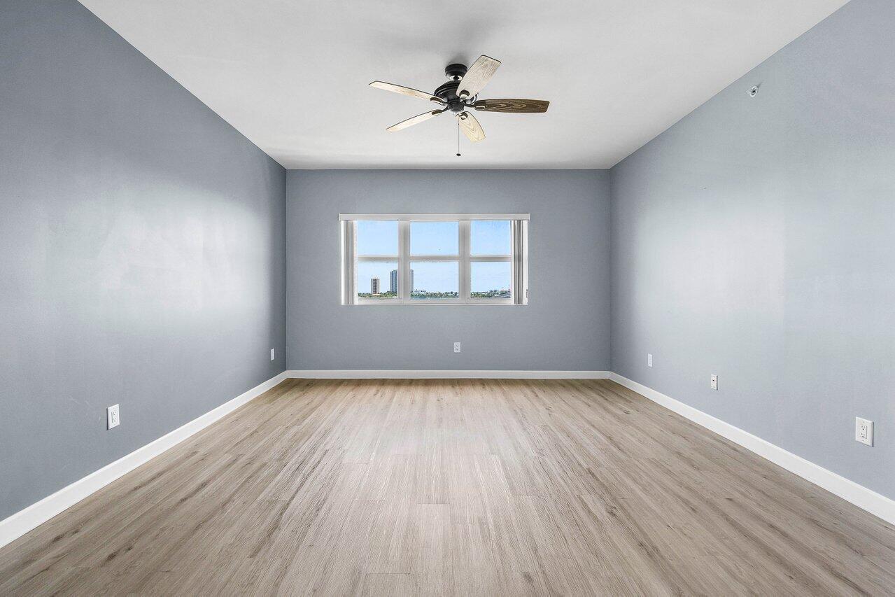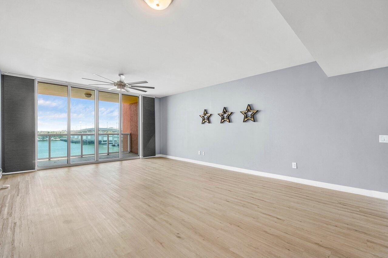 6th floor 2BR + bonus room/den, 2BA condo with east/sunrise views overlooking the Intracoastal. LVT floors throughout (except primary bath), glass enclosed primary shower, a/c under 2 years old, built-ins in all closets. Impact glass, semi-private elevator access. Open concept, neutral colors, split floor plan. Spacious owners suite w/his & her walk-in closets. Primary bath w/double vanity, jetted bath, water closet. Assigned garage parking (close to elevator!) & climate-controlled storage unit. 24/7 manned gate, valet, NEWLY renovated rooftop oasis w/pool, spa, BBQ areas, tennis, pickelball, & bocce. Clubhouse, billiard room & fitness center, walking path w/gazebo, Adjacent marina w/dry docks, minutes to the ocean, no fixed bridges. Pet friendly.