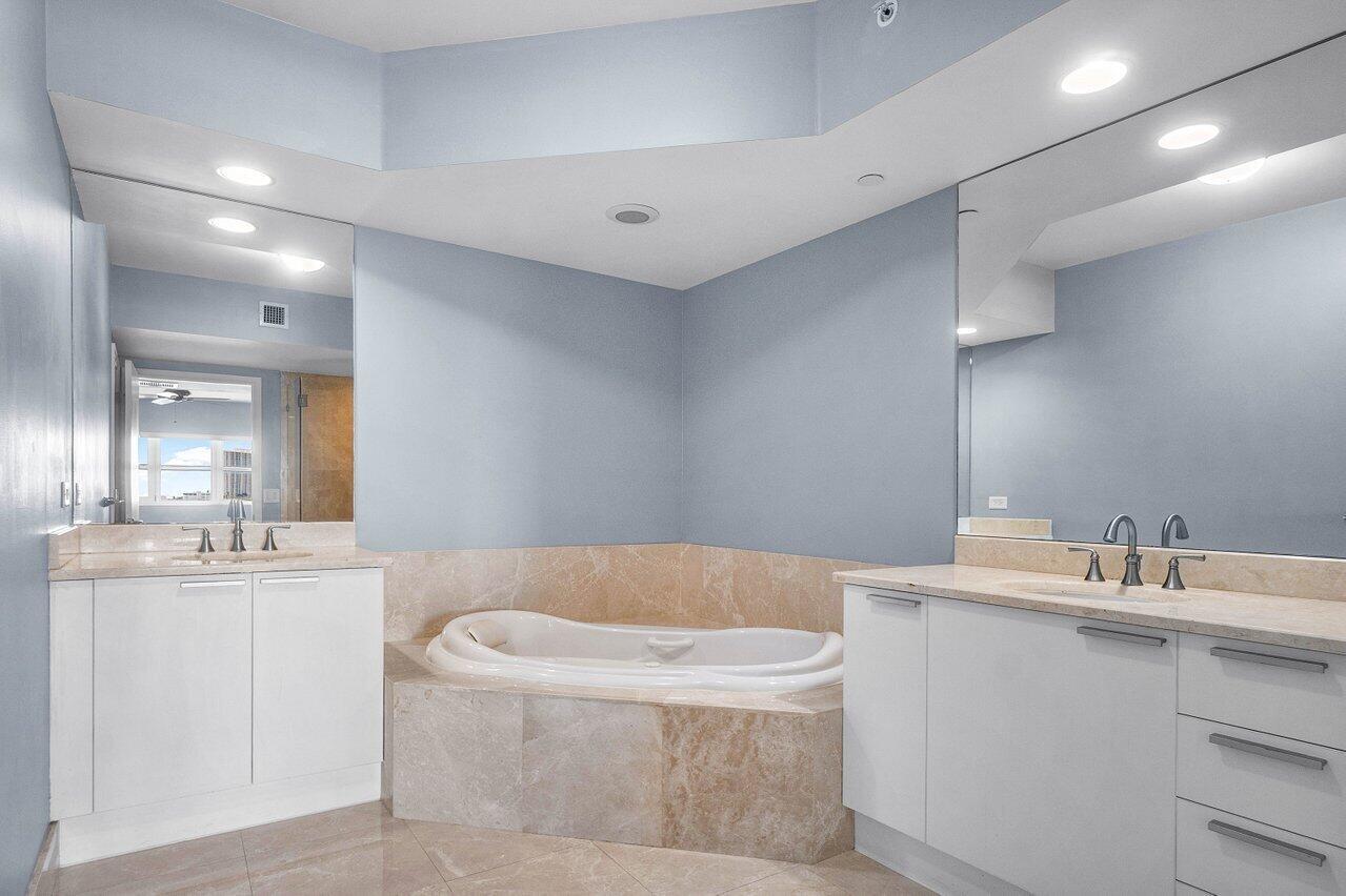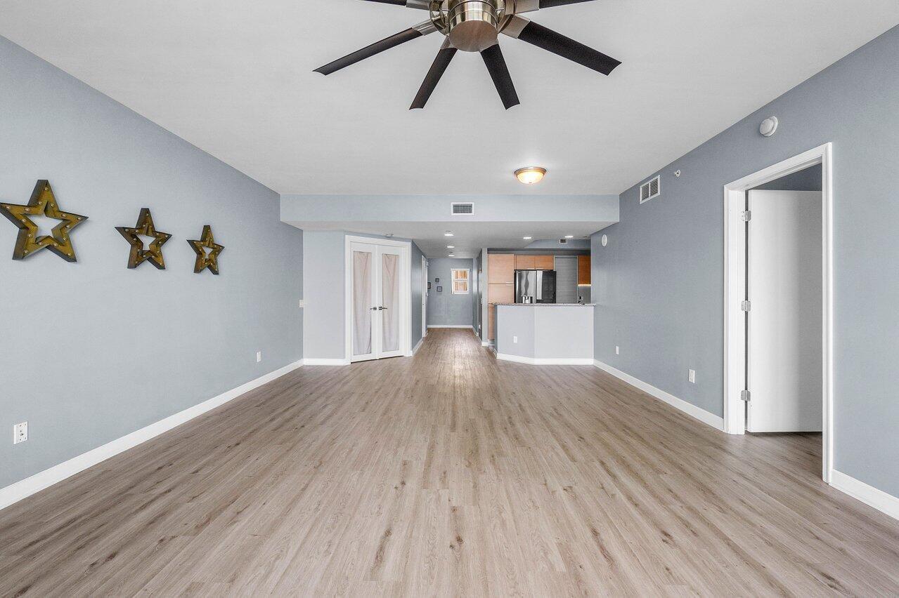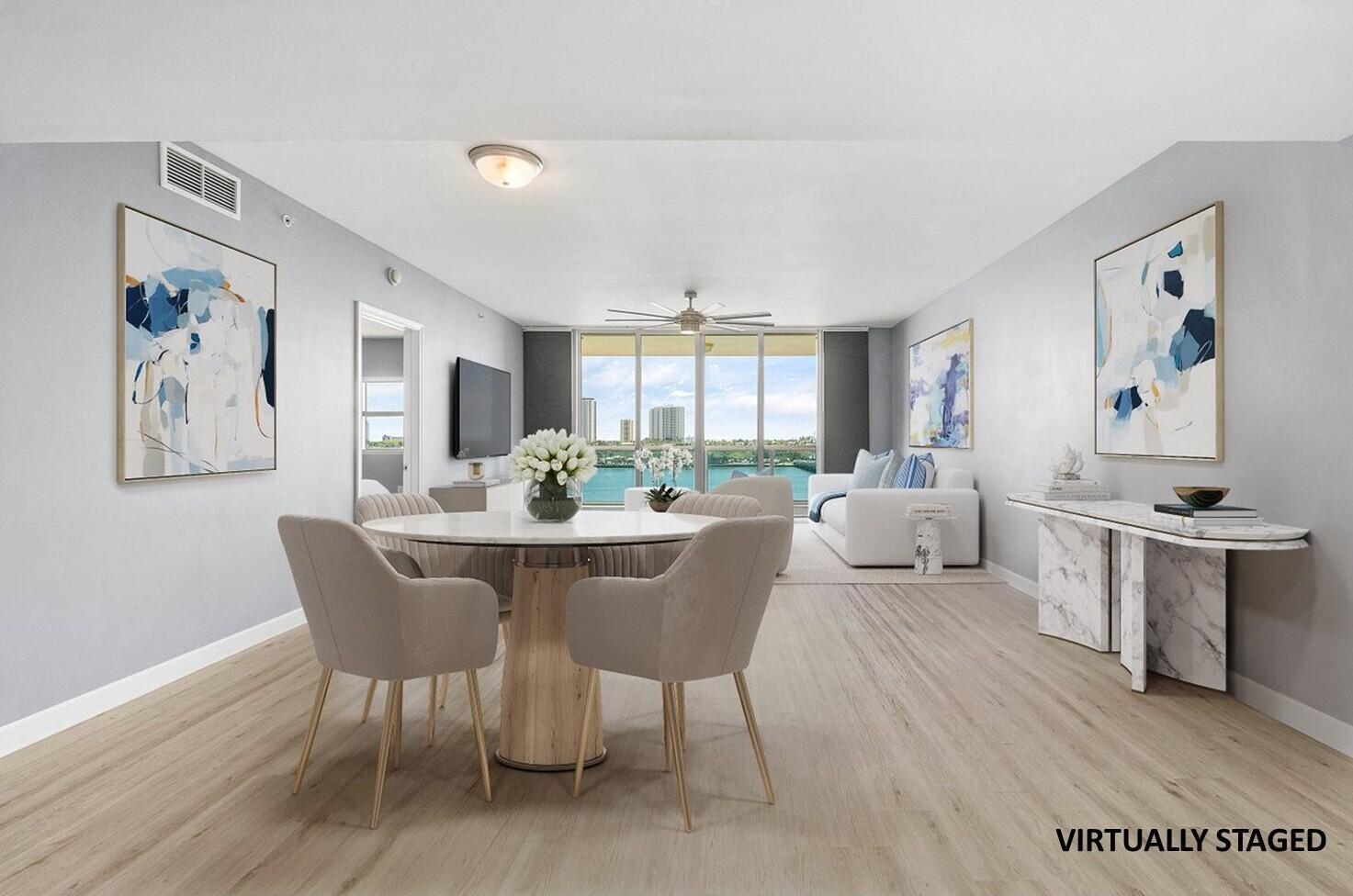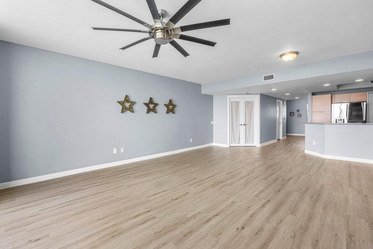 6th floor 2BR + bonus room/den, 2BA condo with east/sunrise views overlooking the Intracoastal. LVT floors throughout (except primary bath), glass enclosed primary shower, a/c under 2 years old, built-ins in all closets. Impact glass, semi-private elevator access. Open concept, neutral colors, split floor plan. Spacious owners suite w/his & her walk-in closets. Primary bath w/double vanity, jetted bath, water closet. Assigned garage parking (close to elevator!) & climate-controlled storage unit. 24/7 manned gate, valet, NEWLY renovated rooftop oasis w/pool, spa, BBQ areas, tennis, pickelball, & bocce. Clubhouse, billiard room & fitness center, walking path w/gazebo, Adjacent marina w/dry docks, minutes to the ocean, no fixed bridges. Pet friendly.