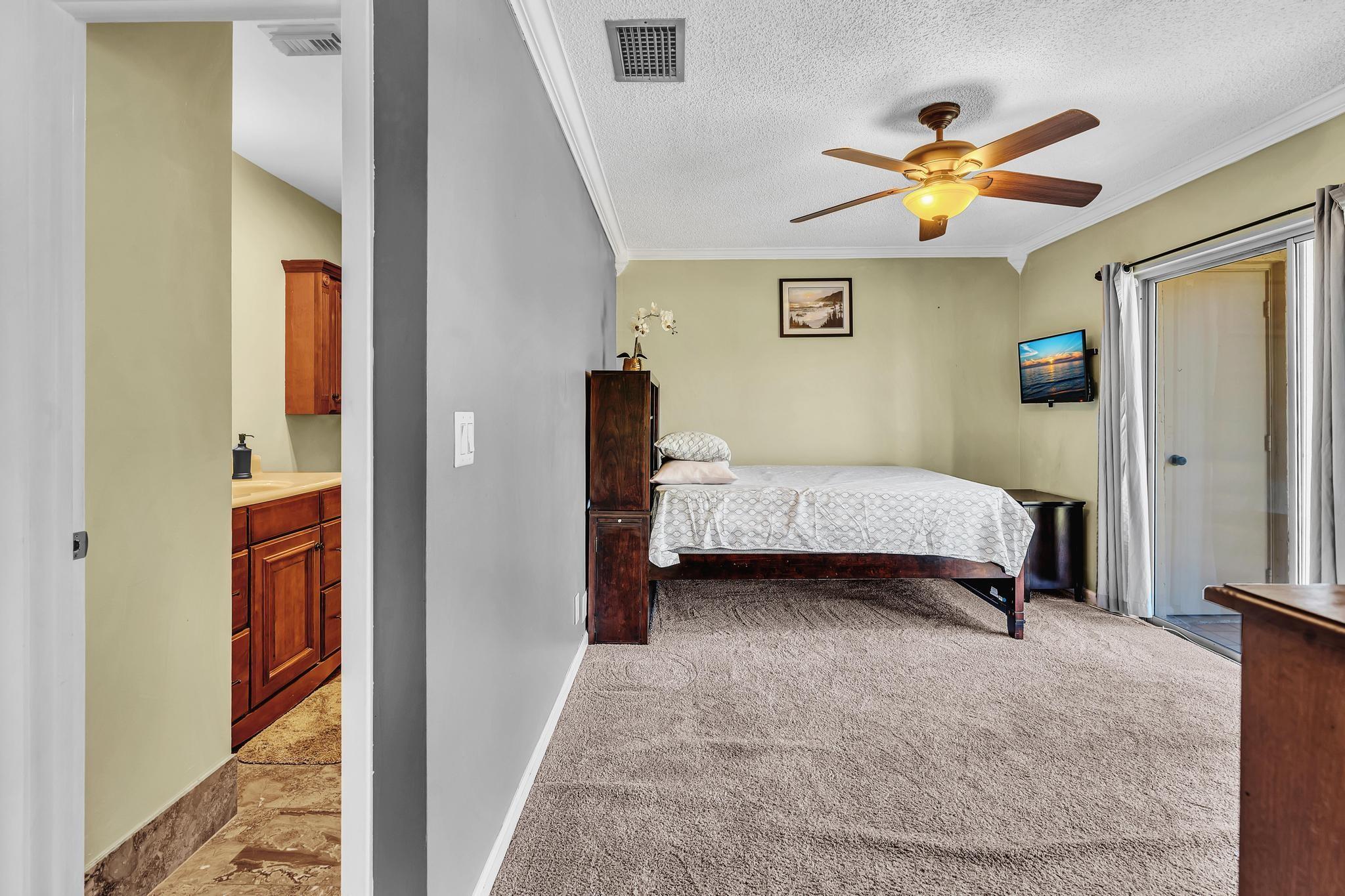 Beautifully remodeled second-floor unit with stunning golf course and lake views! This spacious residence features two ensuite bedrooms, each with its own private bathroom—perfect for privacy and comfort. Enjoy indoor-outdoor living on the tiled, screened-in wraparound balcony, ideal for relaxing or entertaining. The updated kitchen boasts wood cabinetry, granite countertops, and stainless steel appliances. Both suites offer a large walk-in closet, and the convenience of an in-unit washer and dryer adds to the home's functionality. Complete with hurricane shutters for peace of mind, this unit combines style, comfort, and practicality.