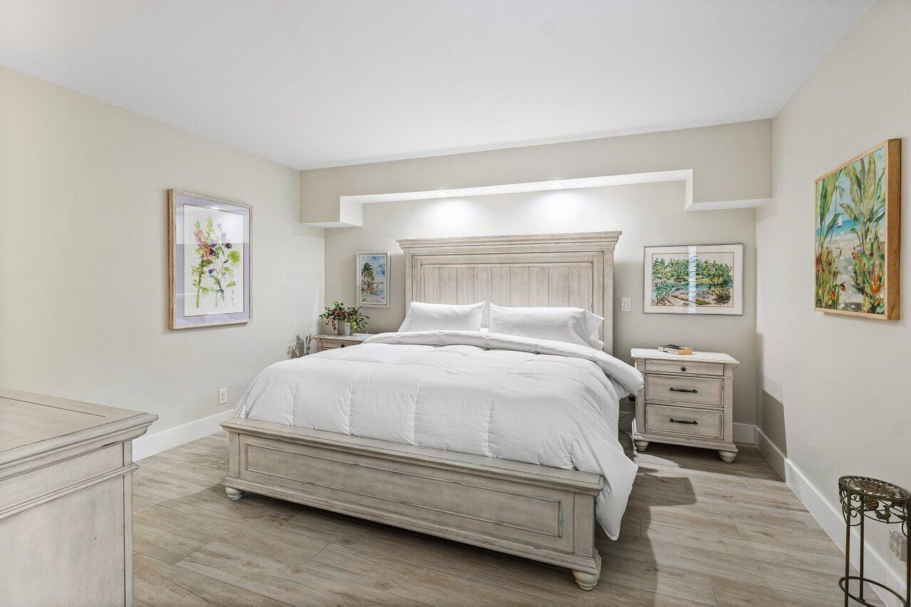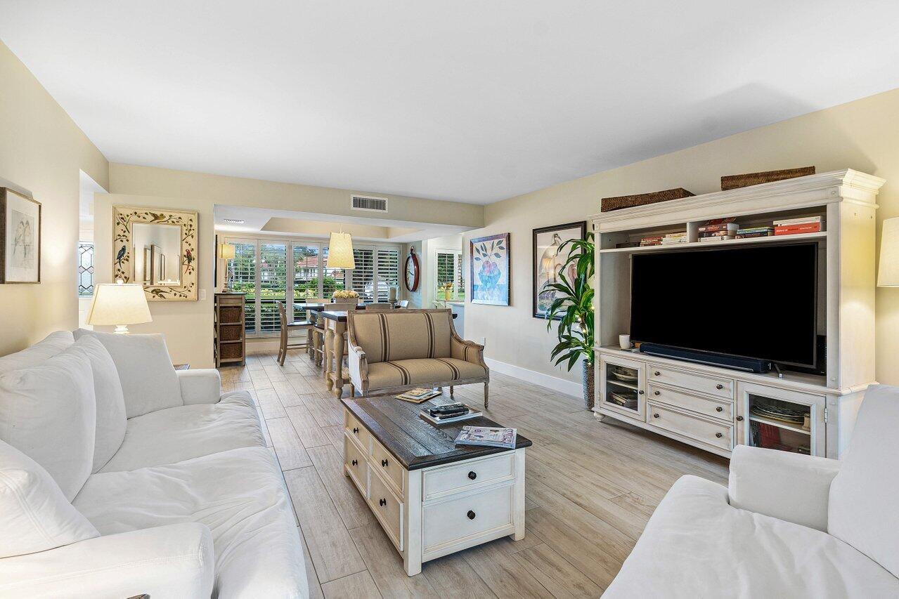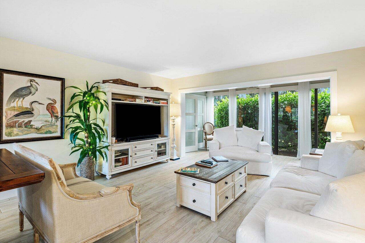 Nestled in a serene private club community, this updated first-floor residence offers effortless charm and functionality. The home boasts two spacious bedrooms, each with French doors that invite abundant natural light and a seamless indoor-outdoor flow. The open-concept kitchen is perfect for entertaining, featuring modern finishes and ample counter space. Relax in the generously sized living area, complemented by a garden view that enhances the tranquil ambiance. Both bedrooms are paired with large walk-in closets, providing ample storage for a luxurious lifestyle. Most windows are impact glass. Set amidst lush landscaping and resort-style amenities. Ideal for those seeking comfort and sophistication in a picturesque setting just steps from all club amenities.