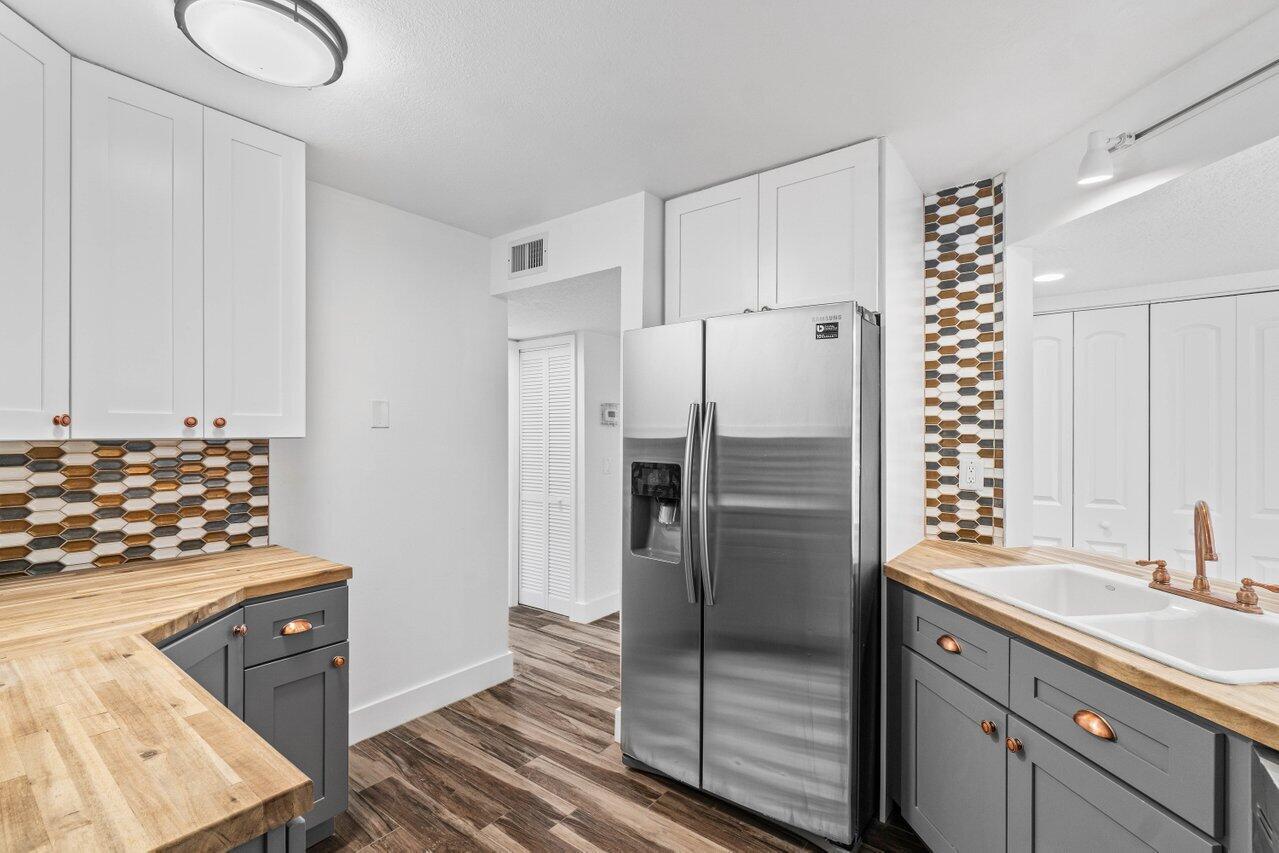PRICE REDUCTION Beautifully updated 2 bed, 2 bath home with a 1-car garage. Features an upgraded kitchen with sleek gray cabinets, stainless steel appliances, and luxury flooring throughout. Both bathrooms offer new vanities, tile, and modern fixtures. Enjoy the screened patio for relaxing outdoors. AC replaced in 2022. Move-in ready with stylish finishes!
