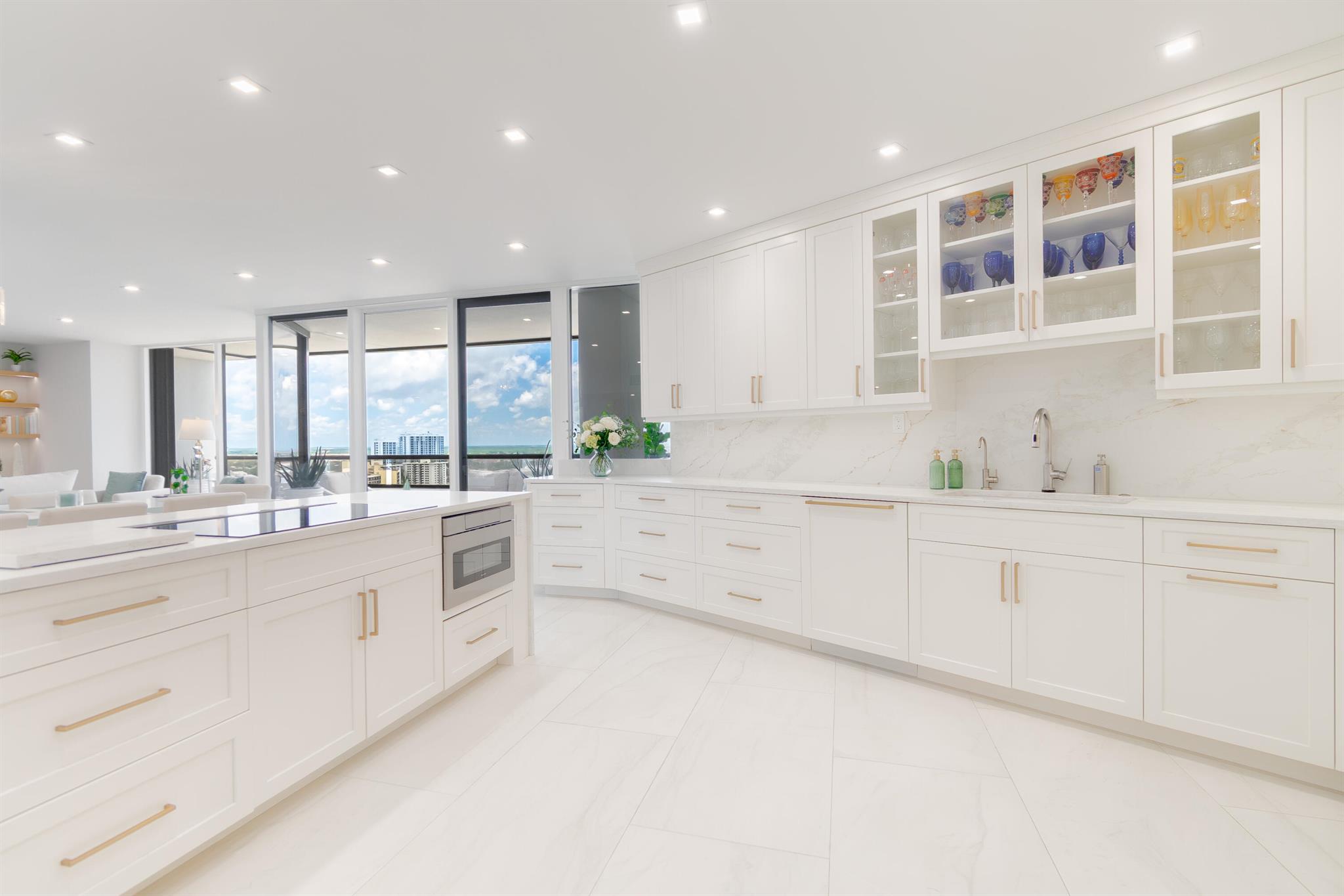 THE MOST UNIQUE & COMPLETE RENOVATION IN LAKE POINT TOWER! Walk into this stunning luxury high-rise home in OLD PORT COVE, and you will see marina, intracoastal, ocean views. All new furnishings, spa-like elegance with contemporary & timeless touches. Large porcelain flooring, 2 master bedrooms, walk-in closets, elegant bathrooms. Ornate powder room, open living, dining & kitchen.Wet bar ice-maker 120-bottle wine center. Kitchen walls removed new custom cabinetry, high-end appliances, quartz countertops, coffee nook, range with hidden vent. The entertainment area includes a 75-inch TV, FP and lighted bookshelves. Covered balcony extends entire length of home.