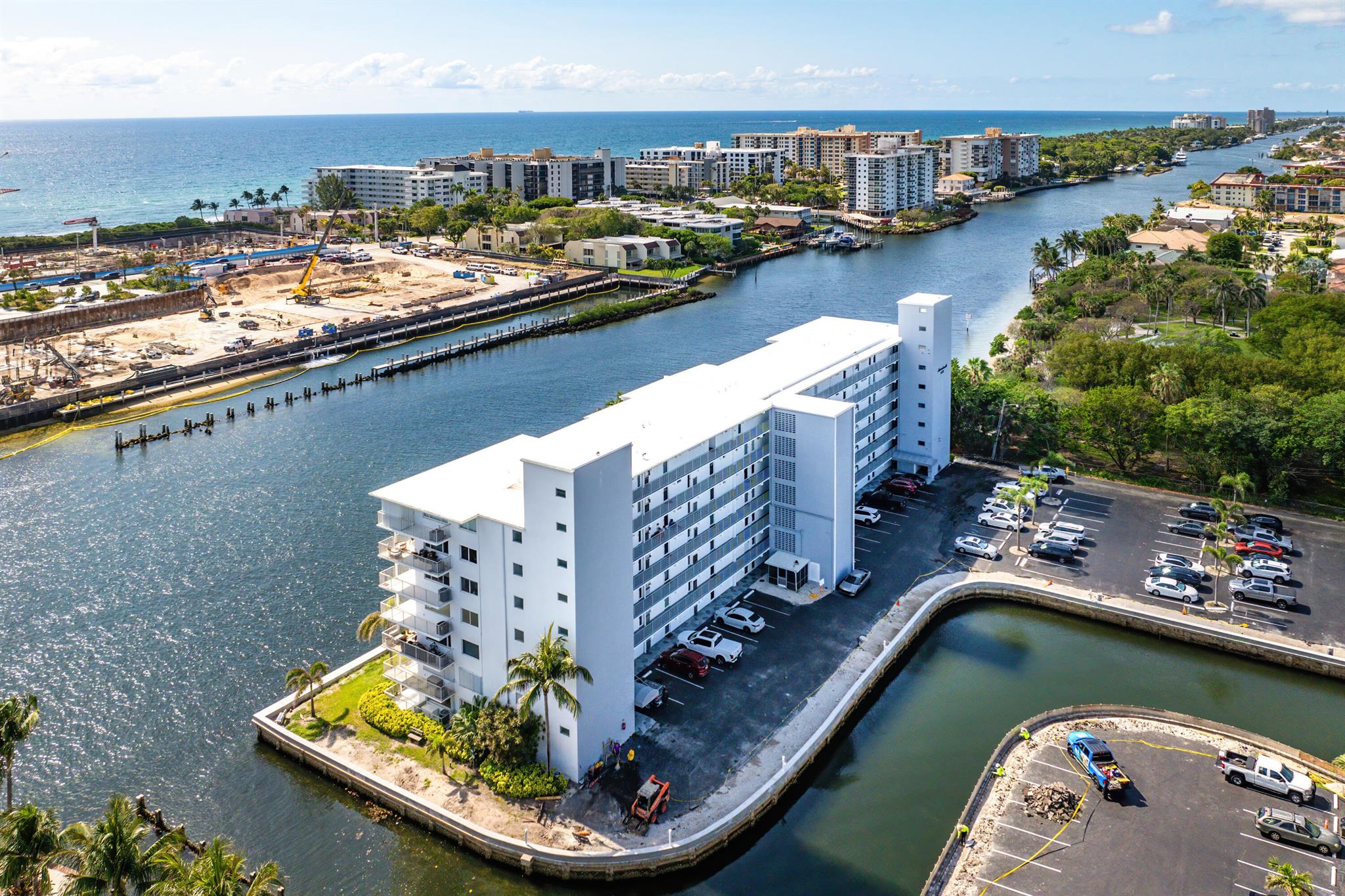 Perfect time to get into this building! You'll benefit from a new roof, new seawall, concrete restoration complete, whole building painted, new plumbing - all things pertaining to the building through the association that needed attention have been taken care of!Stepping inside, this condo has been beautifully renovated and located on the first floor, right on the intracoastal, where your back patio faces the beautiful sunrises with option to keep your boat at the boat dock (with a reasonable waiting period).The layout of this condo perfectly optimizes the use of the space. The kitchen and bathrooms are newly renovated, with a high degree of detail, featuring upgraded lighting over the dinette that you can change the color of depending on your mood. Tile flooring spans the unit.