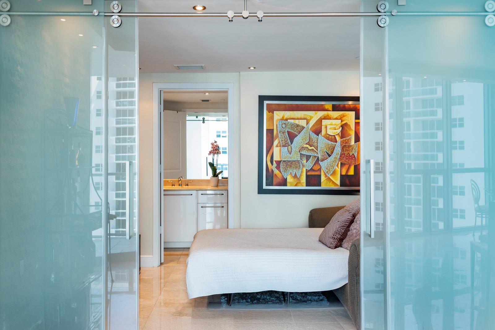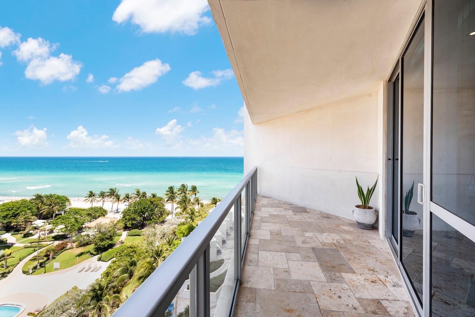 WOW! TAKE YOUR PRIVATE ELEVATOR TO THE 9TH FLOOR, WHERE WELCOMING OCEAN VIEWS LET THE VIBES OF THE ATLANTIC OCEAN SURROUND YOU! THIS IMPECCABLY CLEAN CONDO HAS AN OPEN FLOOR PLAN. BOASTING MARBLE FLOORS W/ FLOOR TO CEILING IMPACT GLASS WINDOWS AND DOORS. THE KITCHEN HAS SNAIDERO CABINETRY .THE DEN (3rd bed) OFF THE DINING ROOM, HAS CONTEMPORARY GLASS BARN DOORS WITH AN ARCHITECTURAL CURVE IN THE CEILING ABOVE. ENJOY THE PHOTOS WITH THE COUCH OPENED & CLOSED. BRAZILIAN HARDWOOD FLOORS ARE IN THE PRIMARY AND 2ND BEDROOM. BED 2 HAS ENSUITE BATHROOM. AMENITIES INCLUDE 2 STORY EXERCISE ROOM, TENNIS COURT, CLUB ROOM -WHERE YOU CAN ENJOY COFFEE EVERY MORNING. THE INFINITY POOL OVERLOOKING THE OCEAN IS TRULY THE PRIZE IN THIS BUILDING, CHAIR & TOWEL SERVICE PROVIDED.