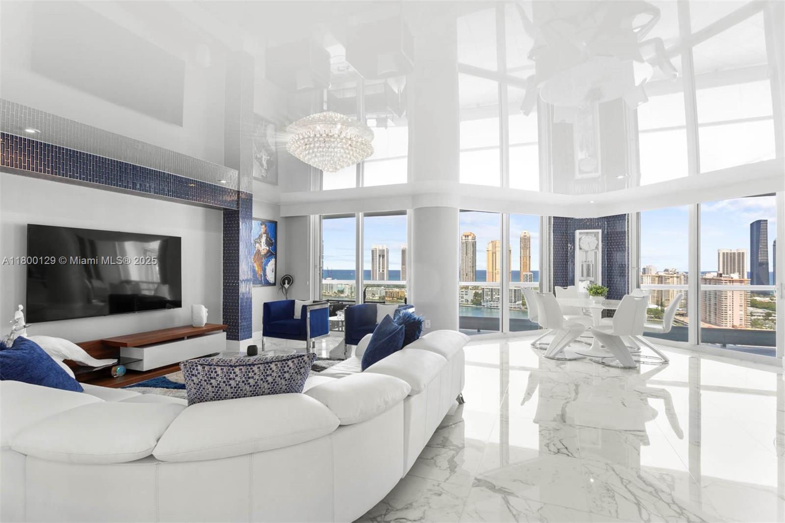 Experience elevated living at Residence Du Cap, Williams Island. This spacious 3 Bedroom; the 2nd bedroom was split into two, 3.5-bath, there are no bathtubs sky home offers 2,800 SF of refined interiors, private elevator entry, and stunning ocean and Intracoastal views from every room. Reflective ceilings in the living areas beautifully mirror the water and light, adding elegance and depth. The split floor plan includes a luxurious primary suite with walk-in closet, en suite baths in all bedrooms, top-tier appliances, guest bath, and a full laundry room. All set within the exclusive community of Williams Island, known for its world-class amenities—spa, fitness center, marina, tennis, pickleball, restaurants, and a vibrant, resort-style lifestyle.