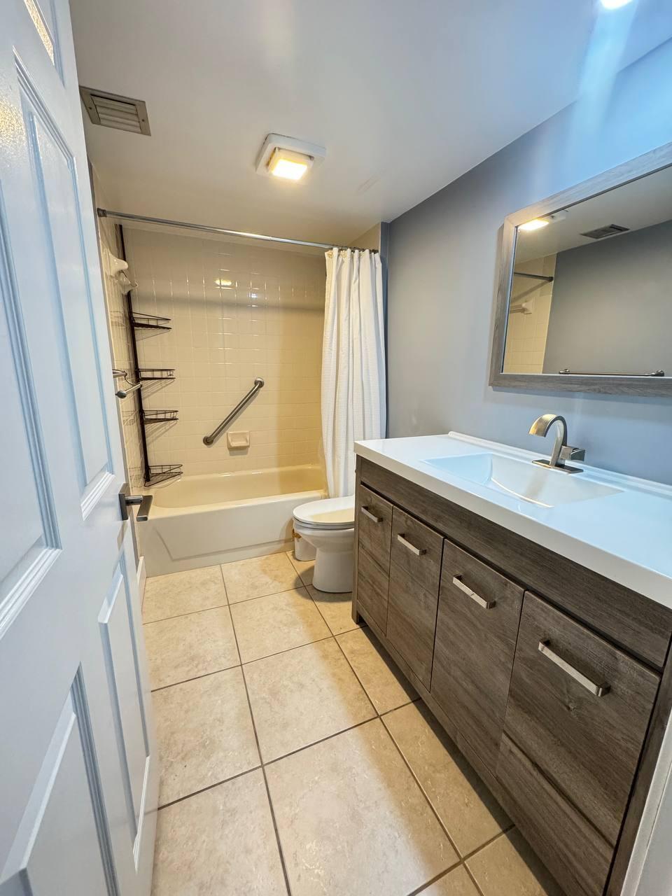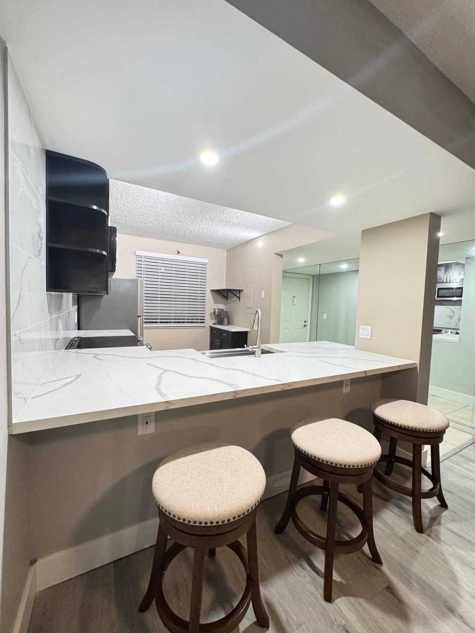 Beautifully renovated 2BR/2BA condo in desirable Whitehall with views of the clubhouse, gardens & pool. Features include an open kitchen with quartz countertops, stainless steel appliances, luxury vinyl plank flooring, spacious living/dining area, and large bonus/laundry room perfect for office or gym. Master suite offers a walk-in closet & upgraded bath. Enjoy a private balcony, 4 saltwater pools, clubhouse, and prime location near airport, shopping, dining & I-95. Rent immediately!(The large mirror found in the master bedroom, plus the gray cabinet, washer, and dryer, will not be sold with the home)