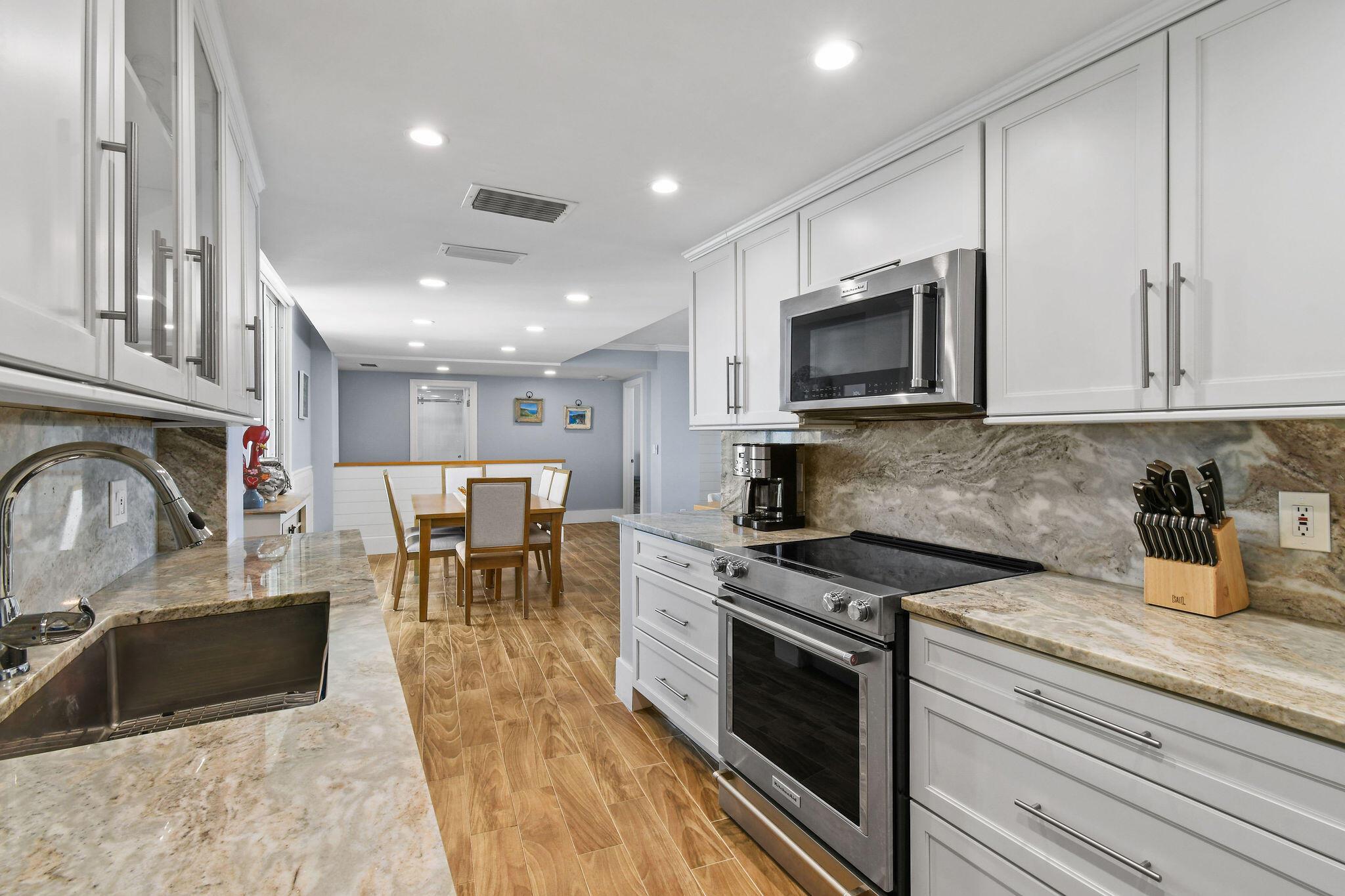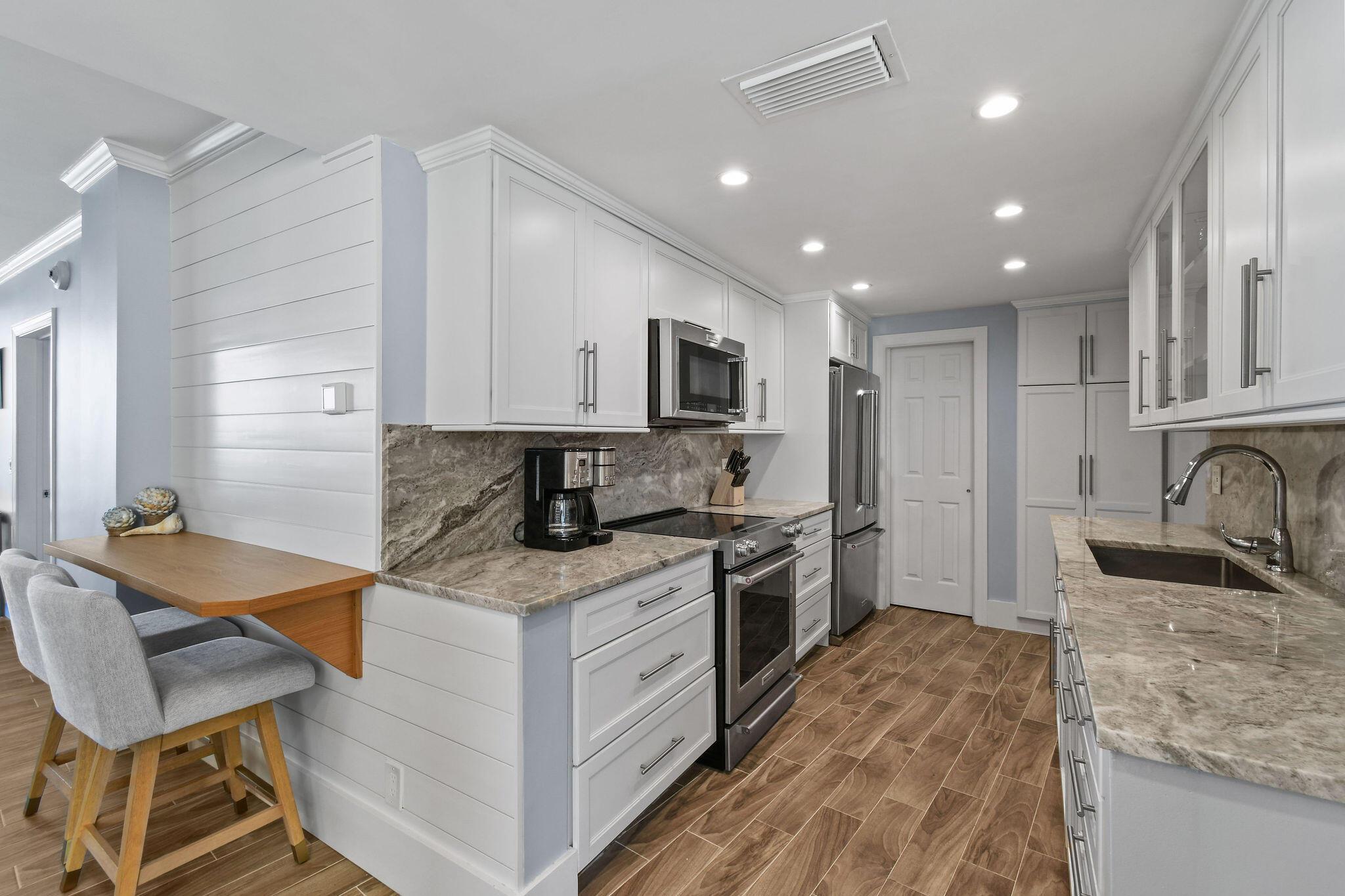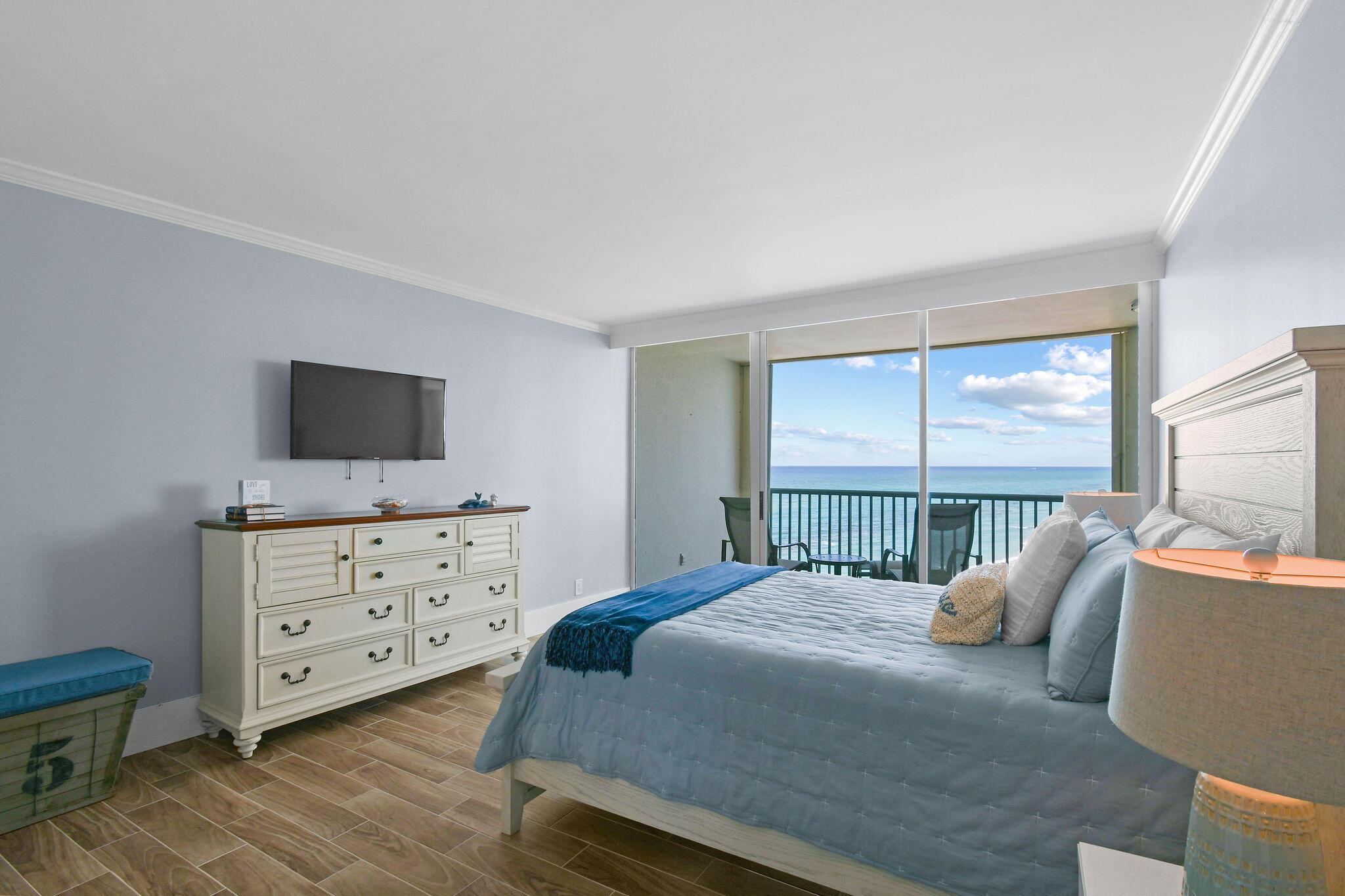 Beautifully updated 2-bedroom, 2-bath condo with a stylish and effortless coastal lifestyle offering direct southern ocean views from many rooms. Thoughtfully renovated from top to bottom, the interior features a modern open-concept layout, sleek porcelain tile flooring, and a bright, contemporary kitchen with quartz countertops, stainless steel appliances, and custom cabinetry.Both bathrooms are fully renovated with clean, modern finishes, including frameless glass showers, updated vanities, and lighting that gives a fresh, airy feel. The spacious bedrooms offer comfort and functionality, with ample closet space and large windows/sliders that capture the natural light and soothing coastal breezes. Offered fully furnished, this turnkey residence is ideal for those seeking a