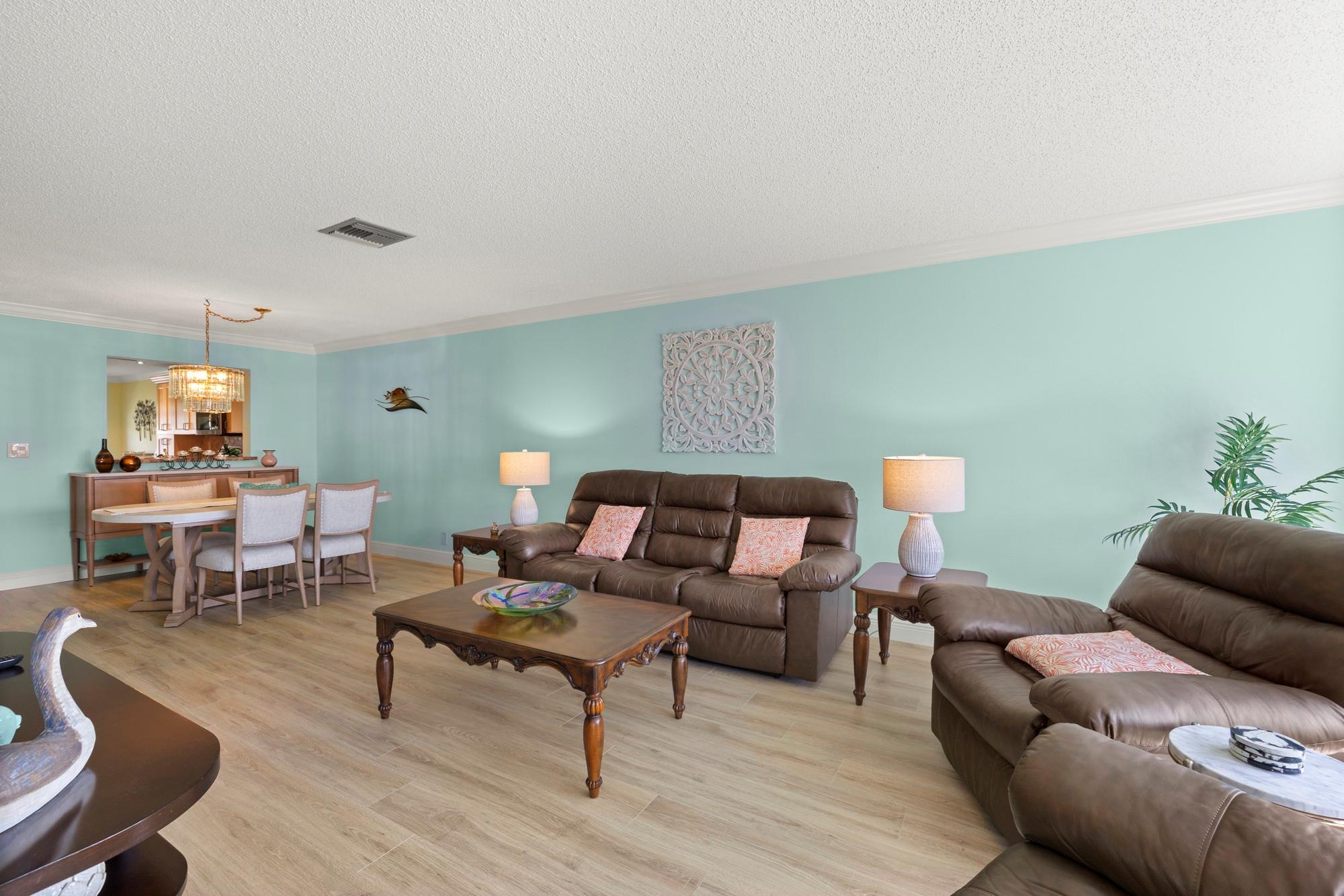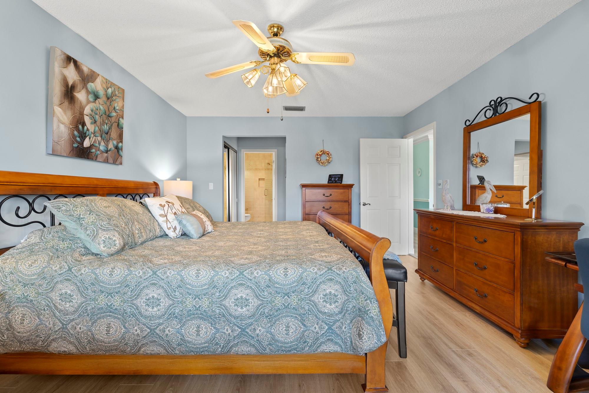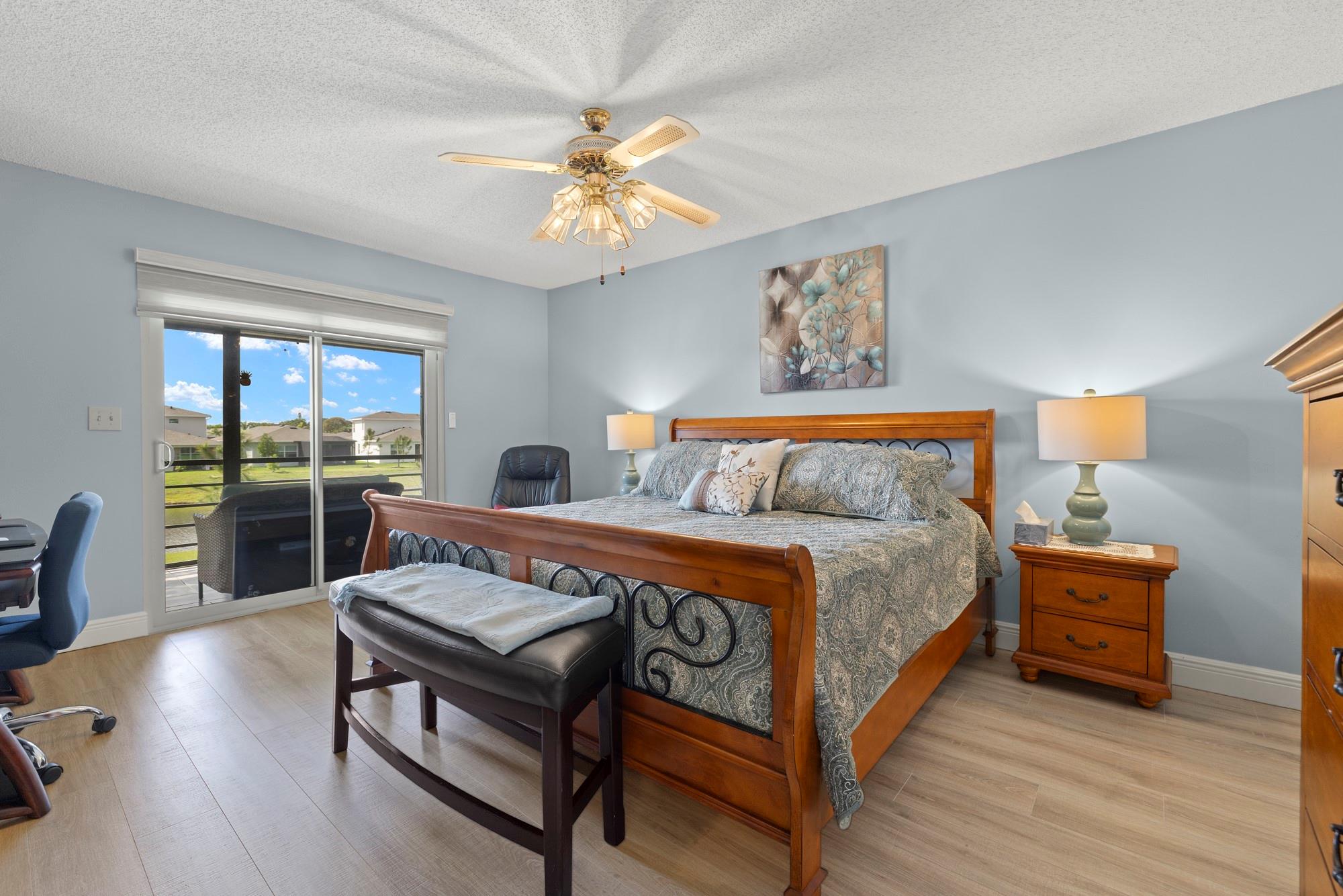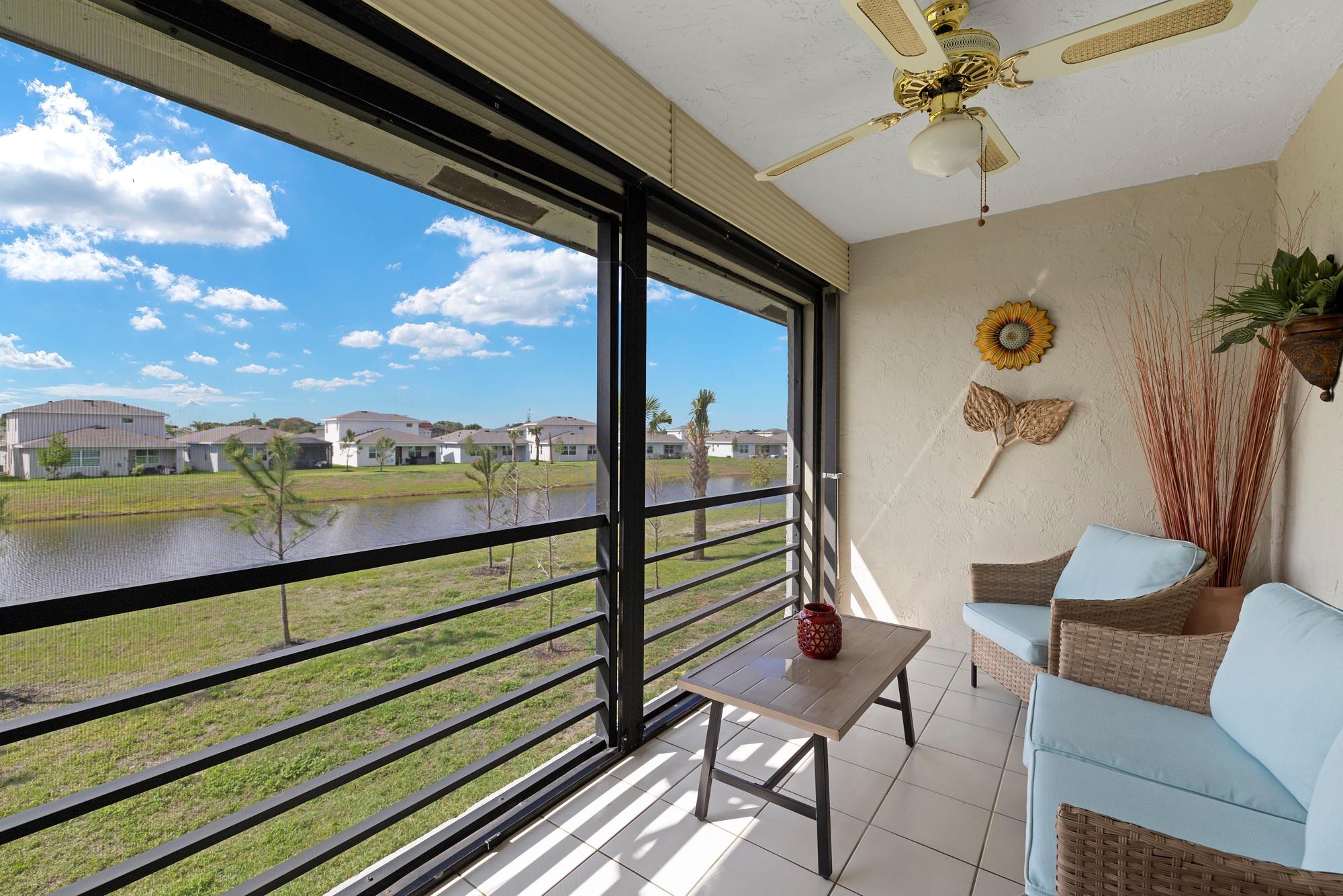 Beautifully Remodeled and Move In Ready 2nd floor unit in Palm Greens II. This unit has it all including: Impact Windows and sliding doors (2023), New kitchen & appliances (2024), new flooring (2025), master bathroom remodel, electronic roller shades (2024), A/C unit (2022), fresh paint. Inside you'll discover some nice features such as an open and spacious floor plan with large room sizes, walk in closet in the master bedroom, both bedrooms have balconies, larger handicap friendly door openings, and the whole layout lends itself to entertaining allowing calming lake views from the second you walk in, and in unit washer and dryer make for added convenience. Palm Greens is an active 55+ community, with 2 pools, clubhouse, tennis, shuffleboard, etc. **Seller will owner finance w/$100k down
