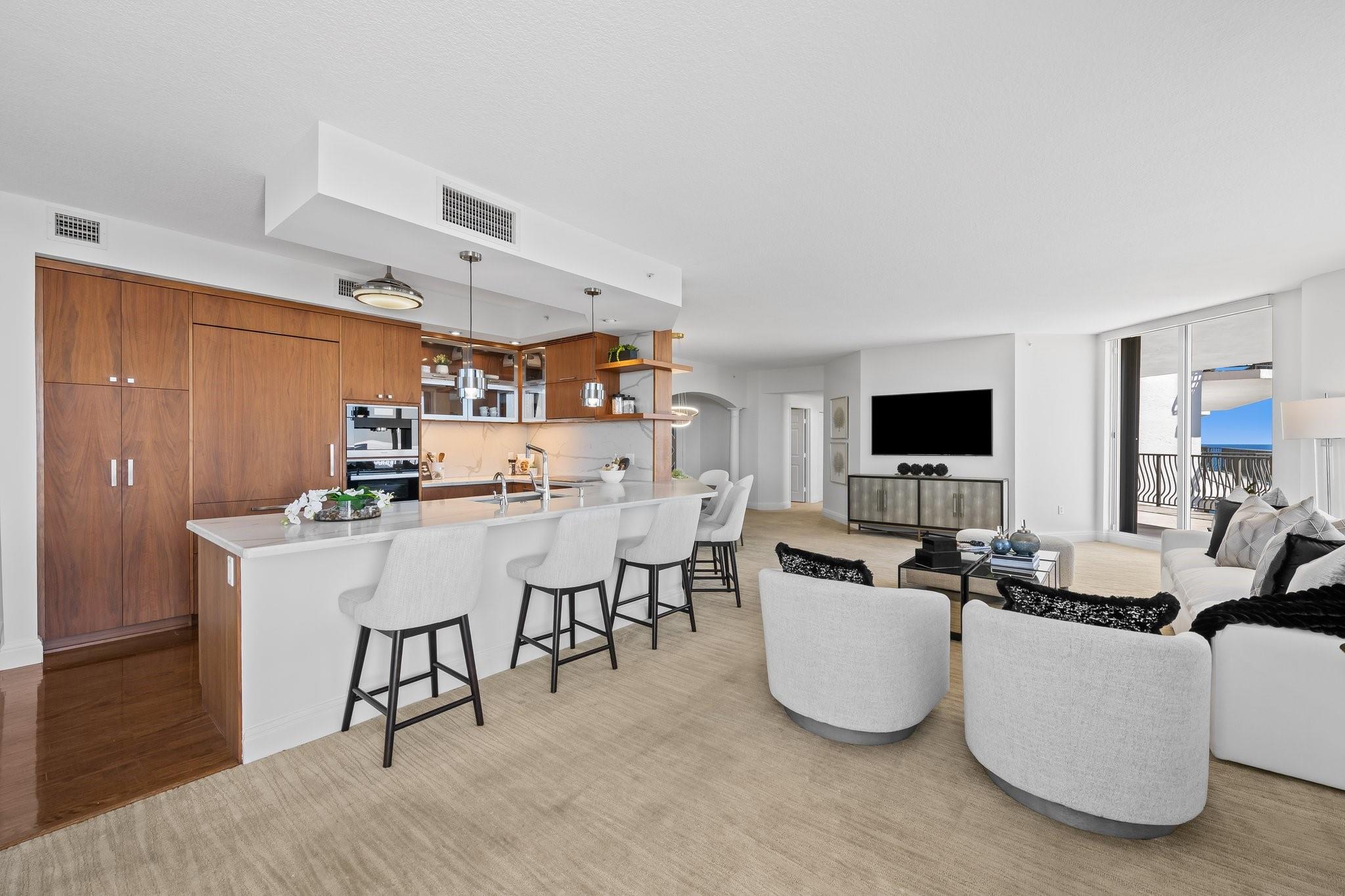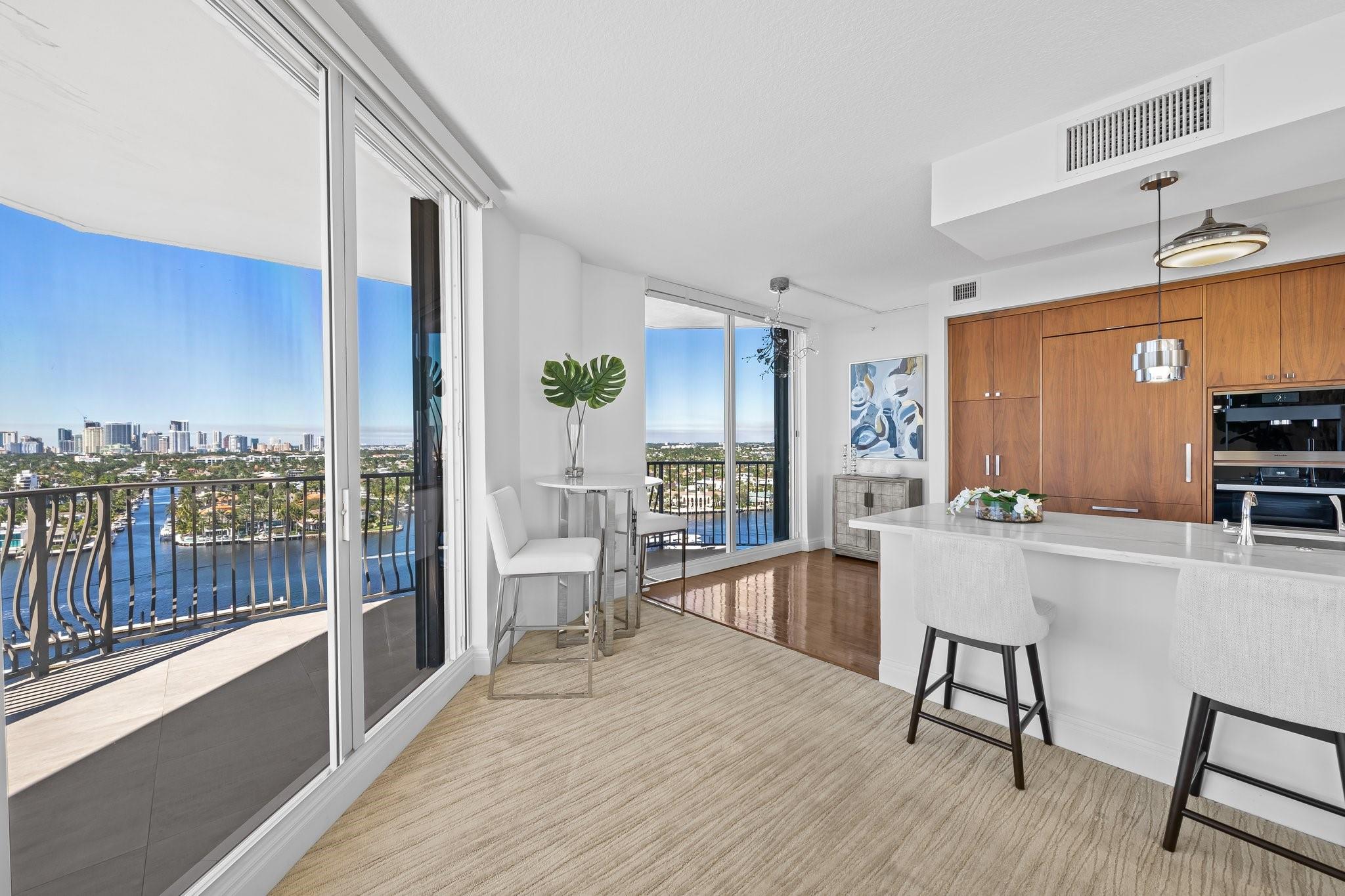 Incrrdible opportunity to own this rarely available SW corner true 3 BR, 2.5 BA residence with breathtaking views of the Intracoastal, ocean, and city and overlooking the new Las Olas Marina-the home to Mega Yachts. The newly renovated kitchen features premium Miele appliances, and the new primary bathroom ensures modern comfort. Floor-to-ceiling sliding glass doors connect indoor and outdoor spaces, creating an open, airy ambiance. Incredible oversized 715 SF wraparound terrace is great for sunset watching, relaxing and entertaining. A direct elevator access from the garage into a private foyer, provides both privacy & ease of access. The pet-friendly building offers amenities like a doorman, gym, heated pool, valet parking, and more, with additional parking space available for purchase.
