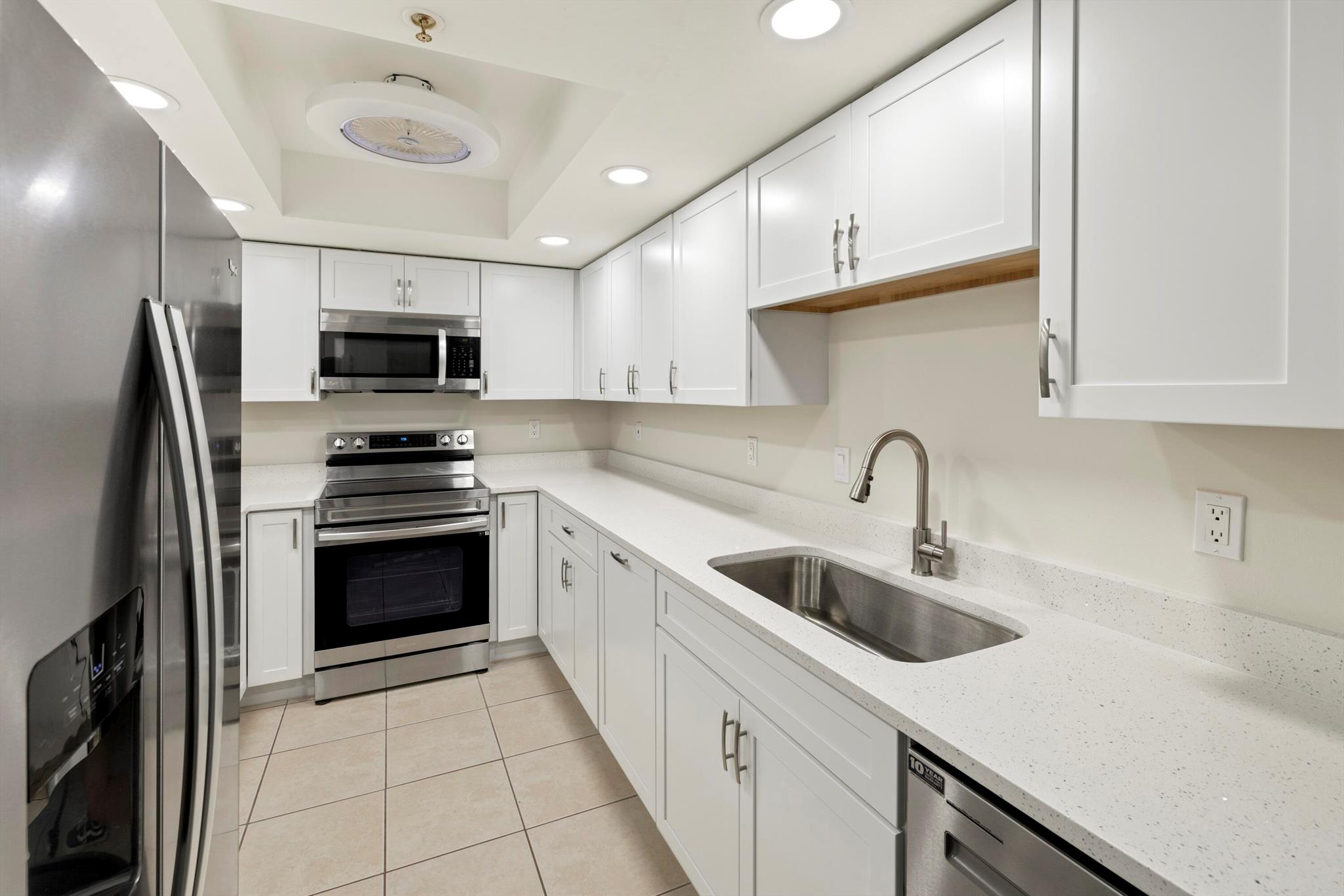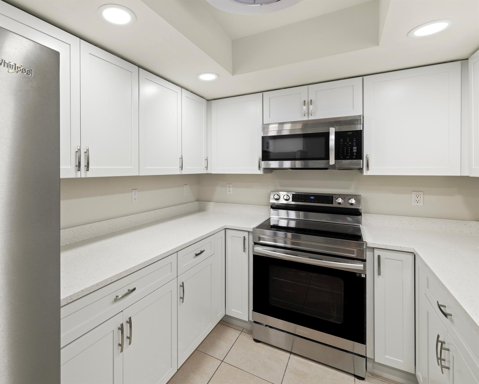 First Floor 4Bed/2Bath with attached GARAGE! 2024 Updated, Modern Kitchen with New Quartz Countertops, New Cabinets, New Sink, New Faucet, New Range, New Dishwasher, and New Disposal! Newer Refrigerator, Guest Shower, and Washer & Dryer! Newer Bathroom Vanities & Light Fixtures! New Water Heater! Tiled Flooring throughout and Porcelain Floor Tiles in Guest Bedrooms! Remote-controlled Light Fixtures/Fans! Walk-in Closets with Built-in Shelving & Drawers! Corner-unit with Tons of Natural Light! Painted Garage with additional exterior Parking Space! Gated Community! Clubhouse w/Fitness Center! Playgrounds, Tennis Courts, and Two Pools! Walking Distance to the new Restaurant Plaza and just 25 minutes to the Beach!