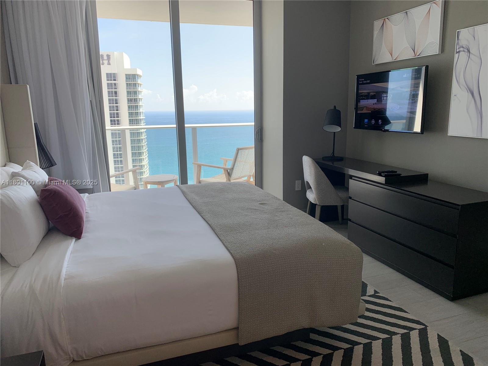Gorgeous, residential condo hotel investment opportunity. Incredible panoramic ocean and skyline views. 5 Star resort style condo with many amenities to enjoy such as 3 pools, one exclusive for unit residential owners on the roof, outdoor movie theater, tennis courts, marina, spa, restaurants, bar and a luxury gym room. Unit sells furnished. No restrictions, you can use the hotel program or rent it out yourself via Airbnb. Showings are limited, unit is generally booked with guests. Must coordinate in advance. Resort with high occupancy and great rentability.