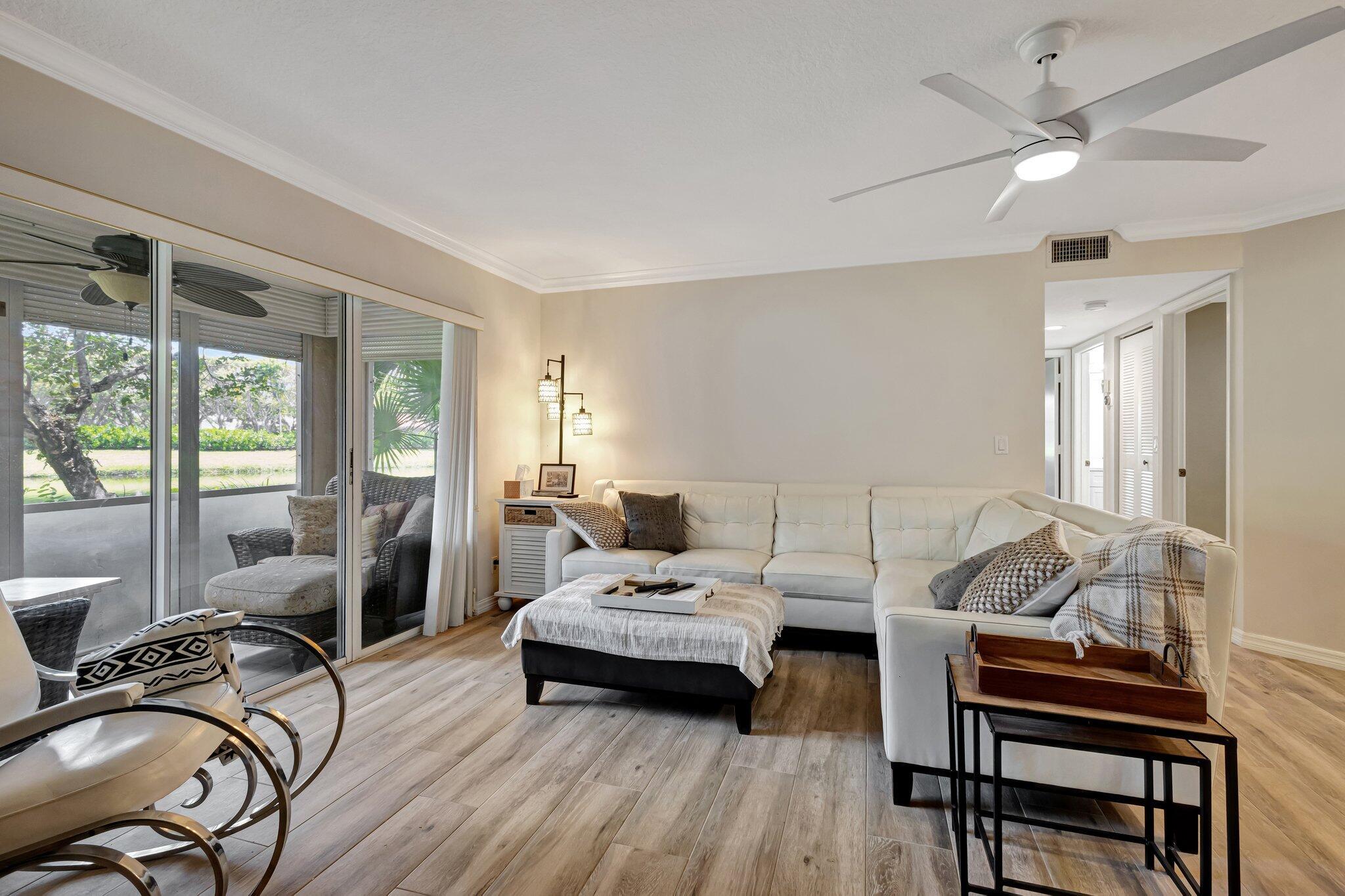 Very Clean freshly painted unit with new modern flooring. Remodeled bathrooms, and remodeled expanded kitchen. BRAND NEW A/C with 10 year transferrable warranty. Lake view. Patio overlooks lake. First floor unit. Ok for pet. Pet friendly community. White cabinets in kitchen. Just minutes to downtown Atlantic Ave. beaches, and Publix Supermarket. Just 5 minutes to Florida Turnpike. Move right in and enjoy Florida sunshine from your patio