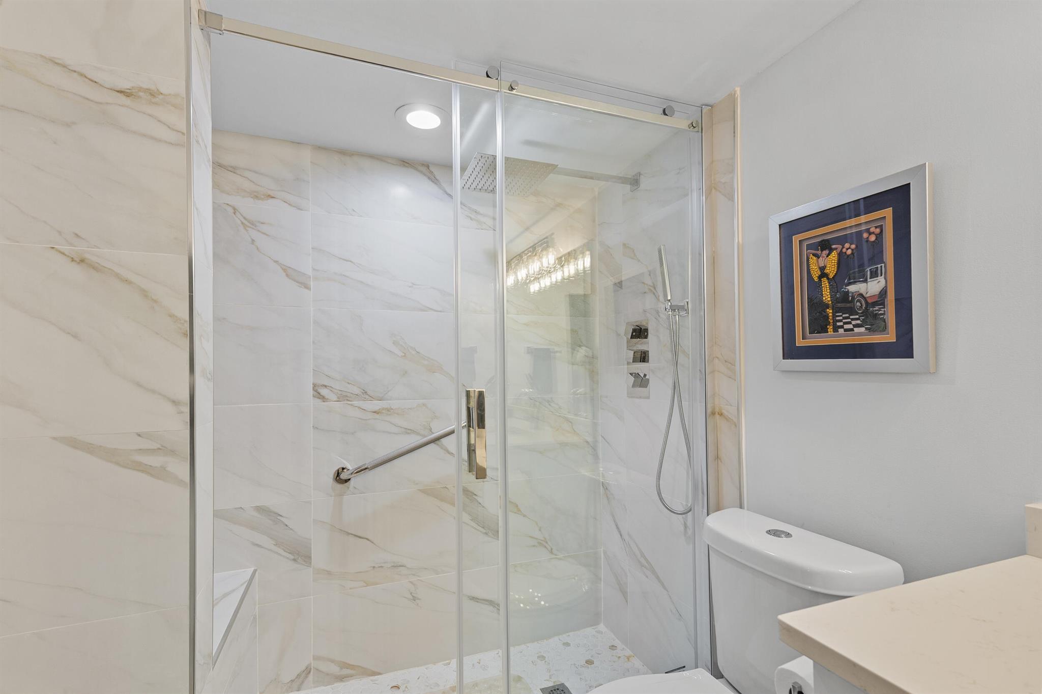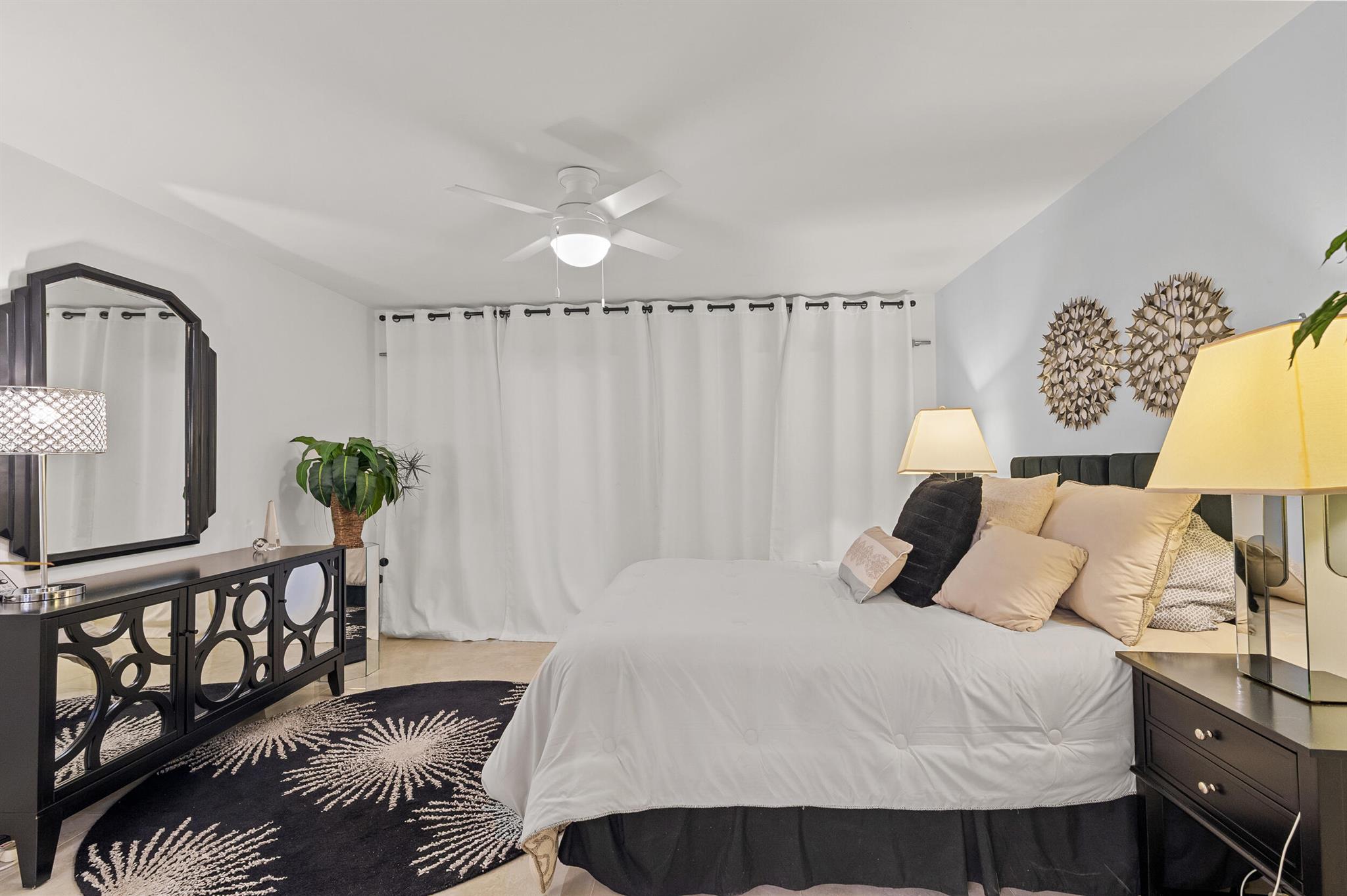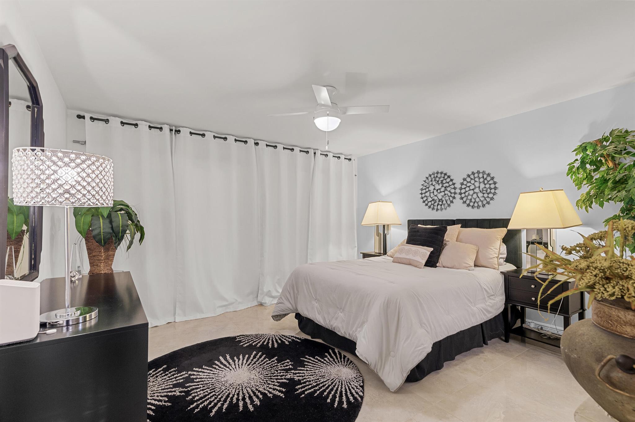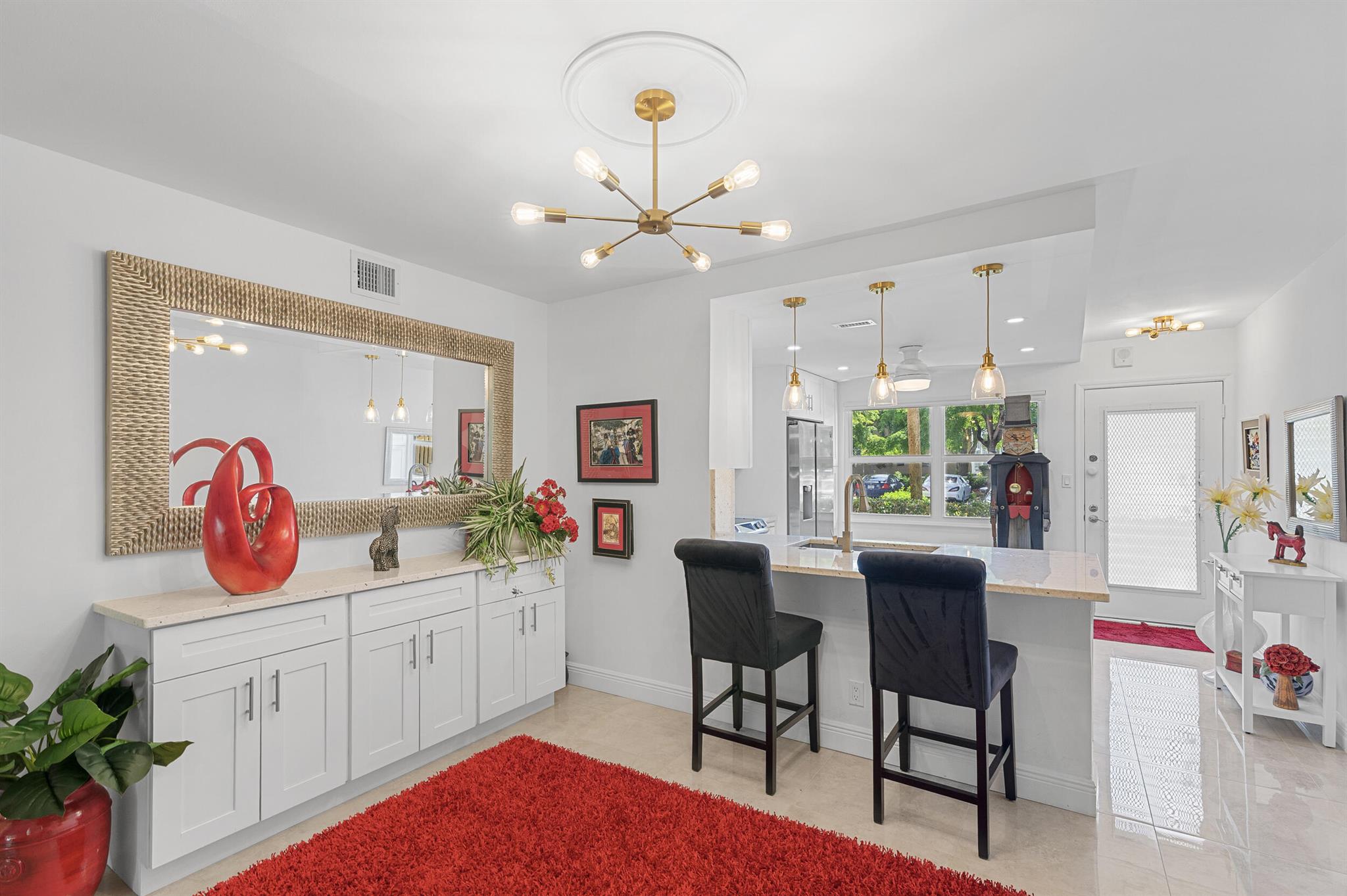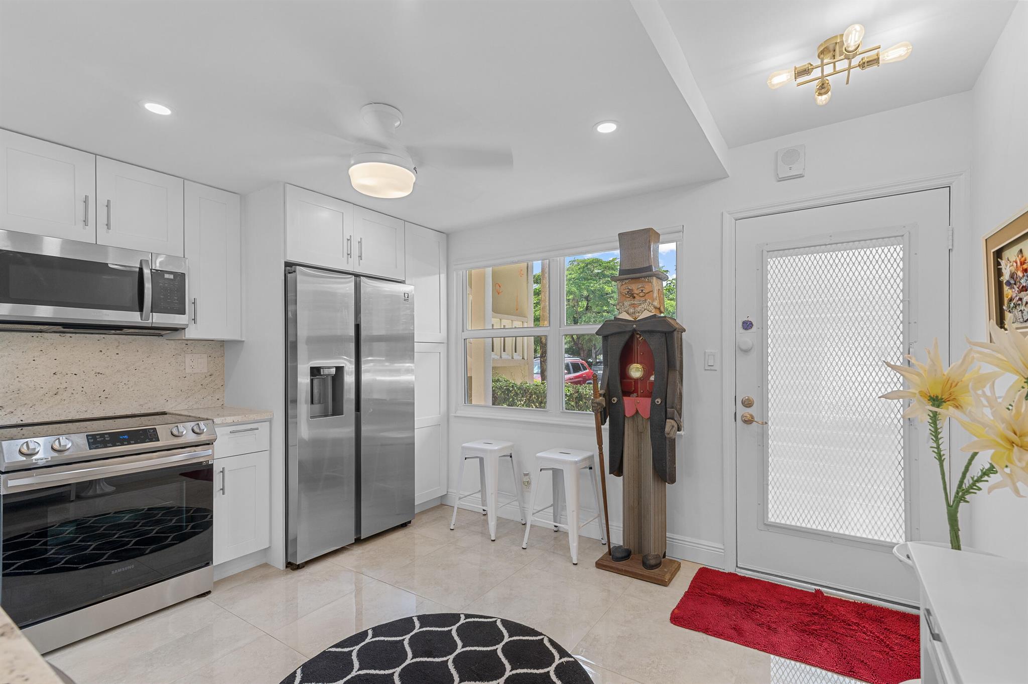 This exquisite 2BD/2BA 1st floor condo has been meticulously renovated with high-end finishes. Porcelain tile flooring and high-impact hurricane windows ensure elegance and safety. The open-concept kitchen boasts thick quartz countertops, shaker-style cabinets, stainless steel appliances, and full-height backsplash. A built-in quartz buffet enhances the dining area, perfect for entertaining. Luxurious bathrooms feature premium vanities, showers, and fixtures. Enjoy custom closets, designer lighting, barn doors, a new AC handler, and panoramic sliding glass doors with motorized window treatments, overlooking lush gardens. Assigned parking and storage with unit. All designer furniture and accessories are negotiable. Wynmoor offers pickle ball, golf, theatre, cafe on the green and MUCH MORE!