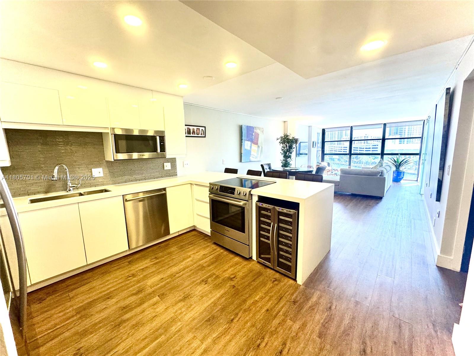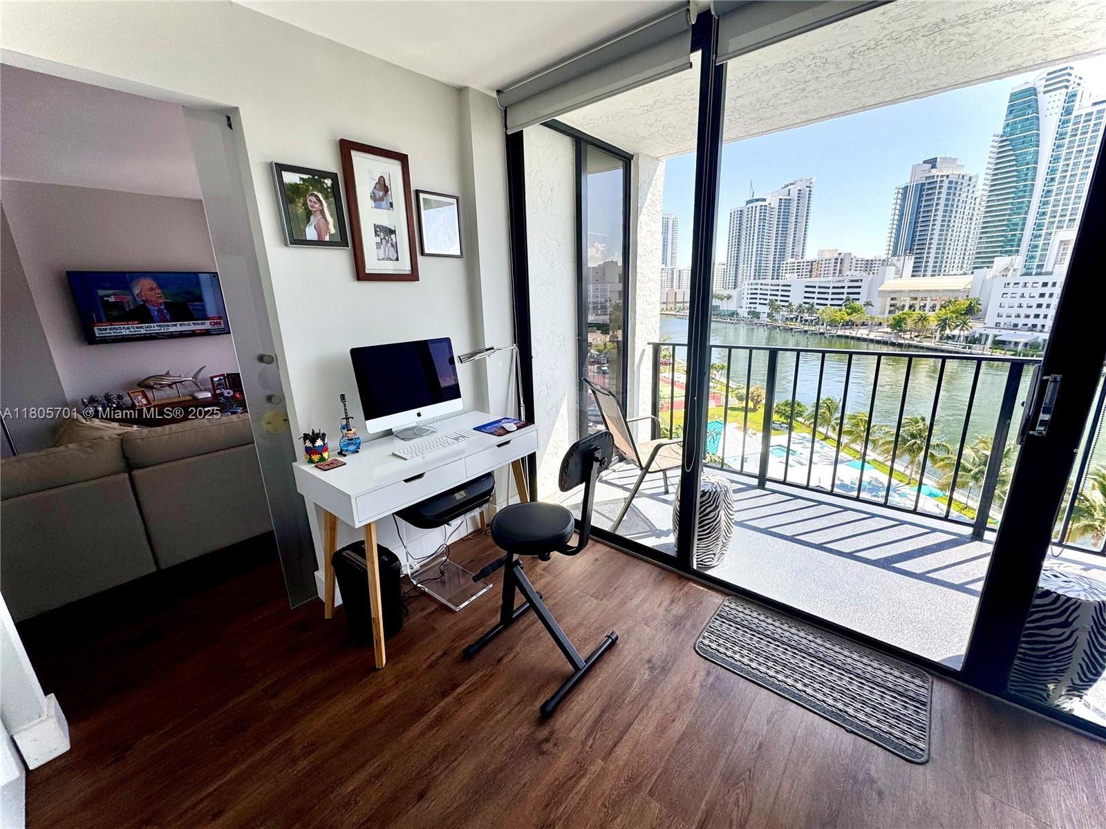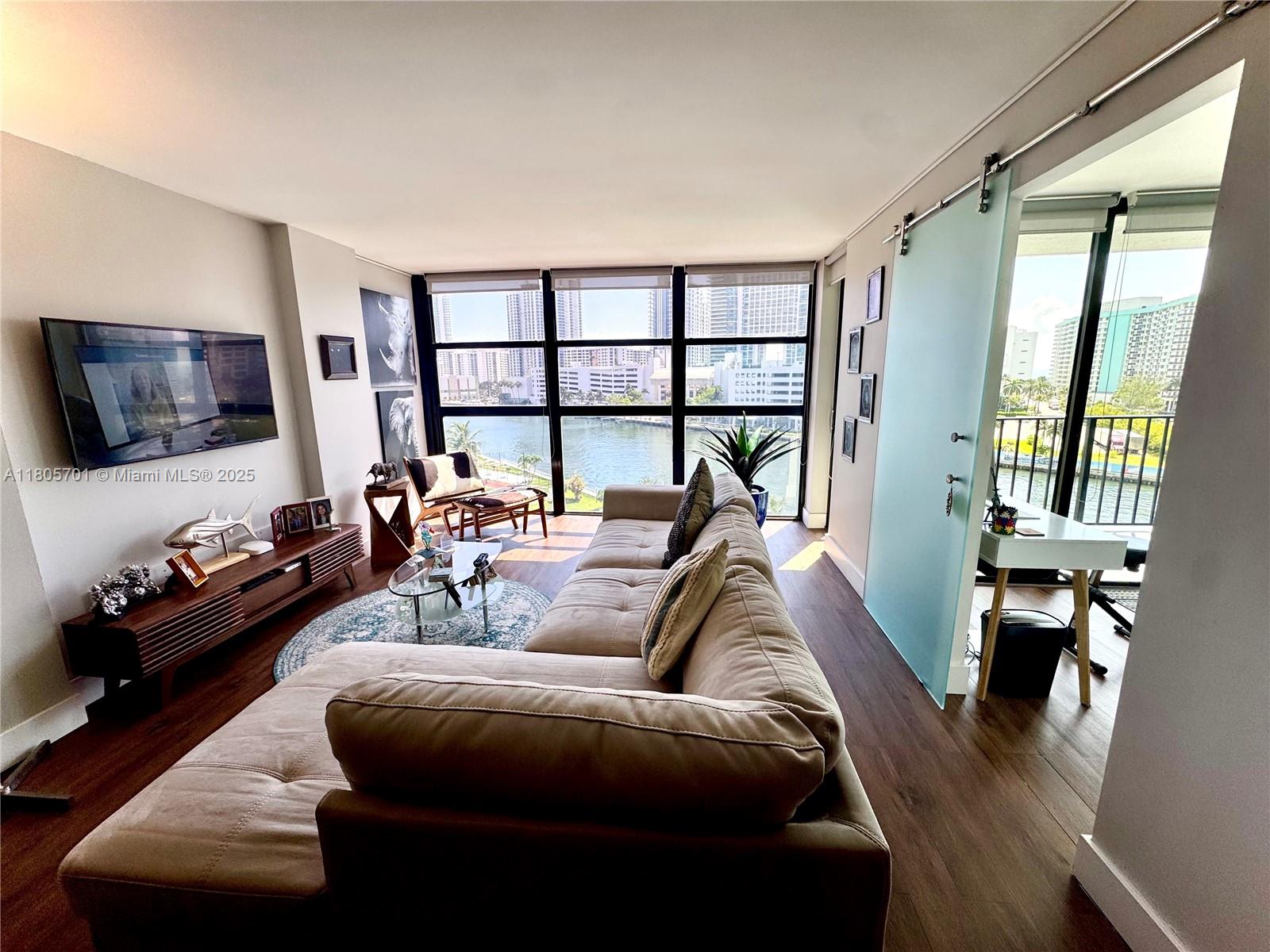 Breathtaking Water Views! Enjoy panoramic views of the Intracoastal, bay, and city skyline from this beautifully updated unit featuring floor-to-ceiling windows in both the bedroom & living area. This spacious floor plan includes 1 bedroom plus a newly added den, 1 full bathroom, & a guest half bath. The unit boasts elegant floors throughout, a fully renovated kitchen with sleek cabinetry, and stainless-steel appliances. Located in a full-service, pet-friendly building with 24-hour security, valet, and resort-style amenities including a heated pool, fitness center, sauna, billiards, ping pong, tennis courts, bike room, & more. Conveniently close to the beach, shopping plazas, restaurants, parks, Aventura Mall, major highways, & airports. A must-see—completely updated and move-in ready!
