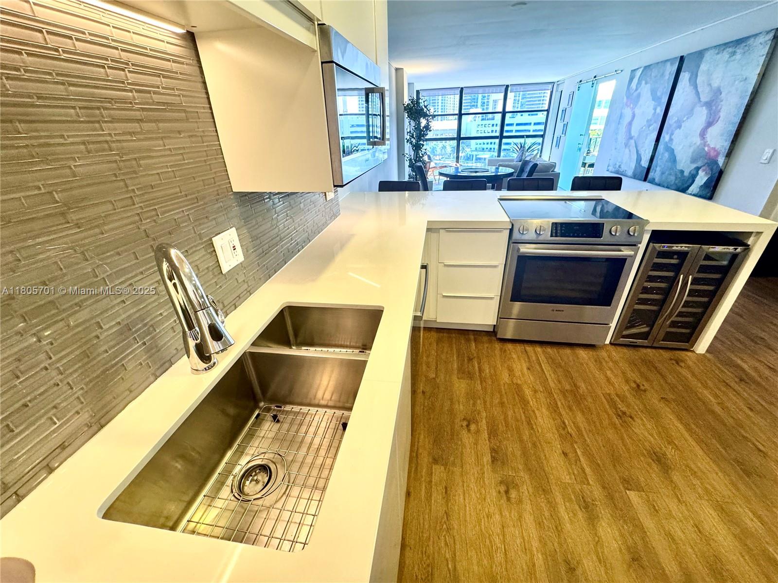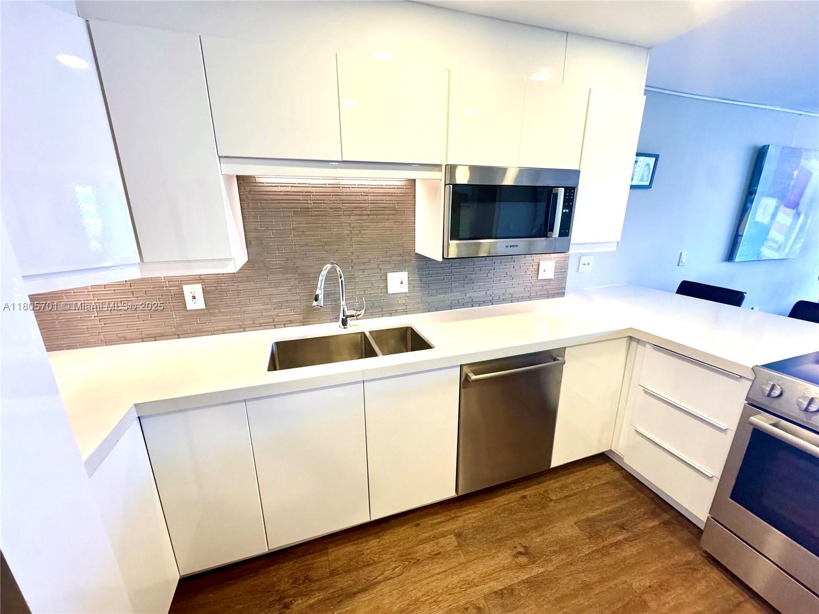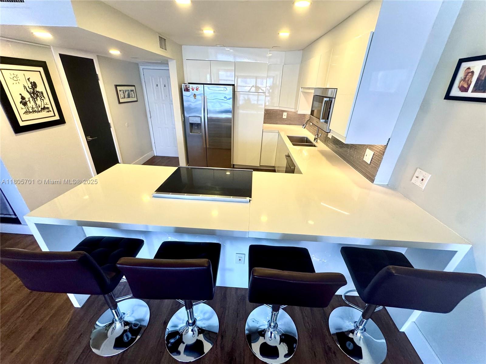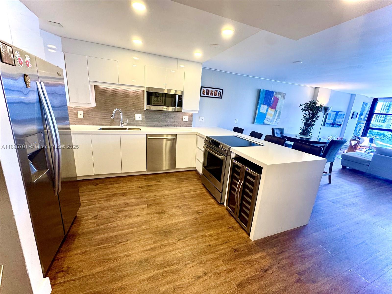 Breathtaking Water Views! Enjoy panoramic views of the Intracoastal, bay, and city skyline from this beautifully updated unit featuring floor-to-ceiling windows in both the bedroom & living area. This spacious floor plan includes 1 bedroom plus a newly added den, 1 full bathroom, & a guest half bath. The unit boasts elegant floors throughout, a fully renovated kitchen with sleek cabinetry, and stainless-steel appliances. Located in a full-service, pet-friendly building with 24-hour security, valet, and resort-style amenities including a heated pool, fitness center, sauna, billiards, ping pong, tennis courts, bike room, & more. Conveniently close to the beach, shopping plazas, restaurants, parks, Aventura Mall, major highways, & airports. A must-see—completely updated and move-in ready!