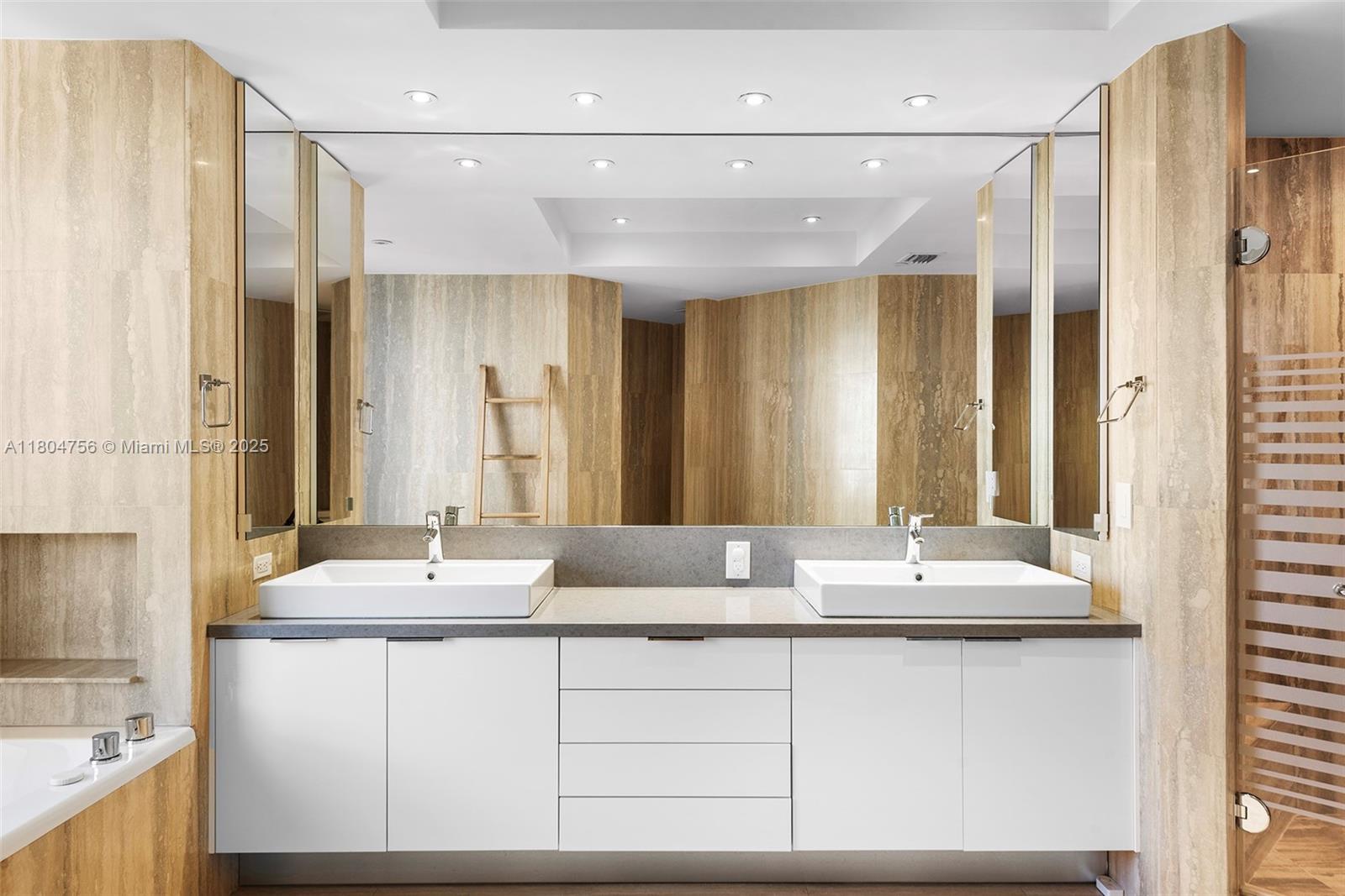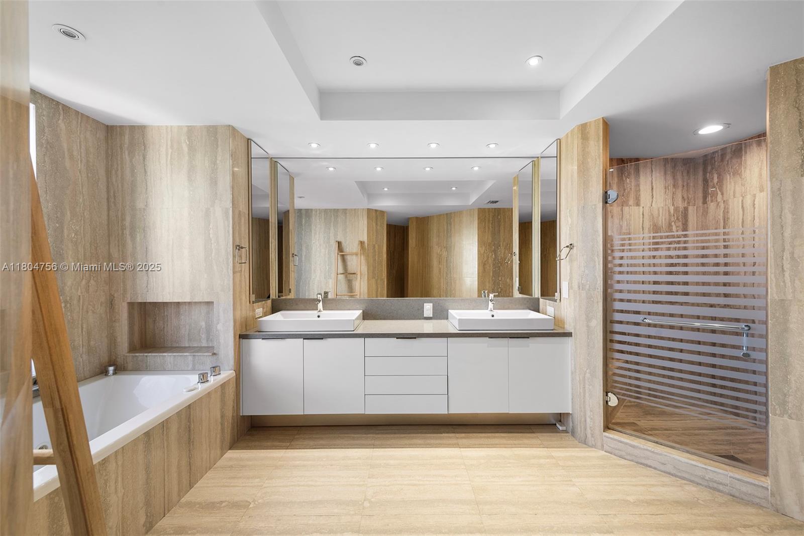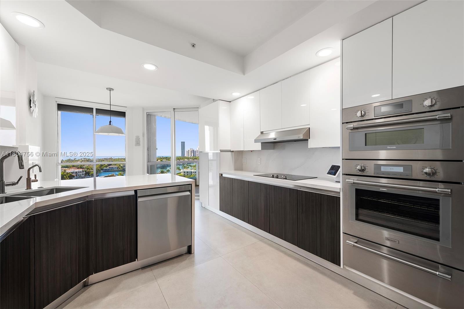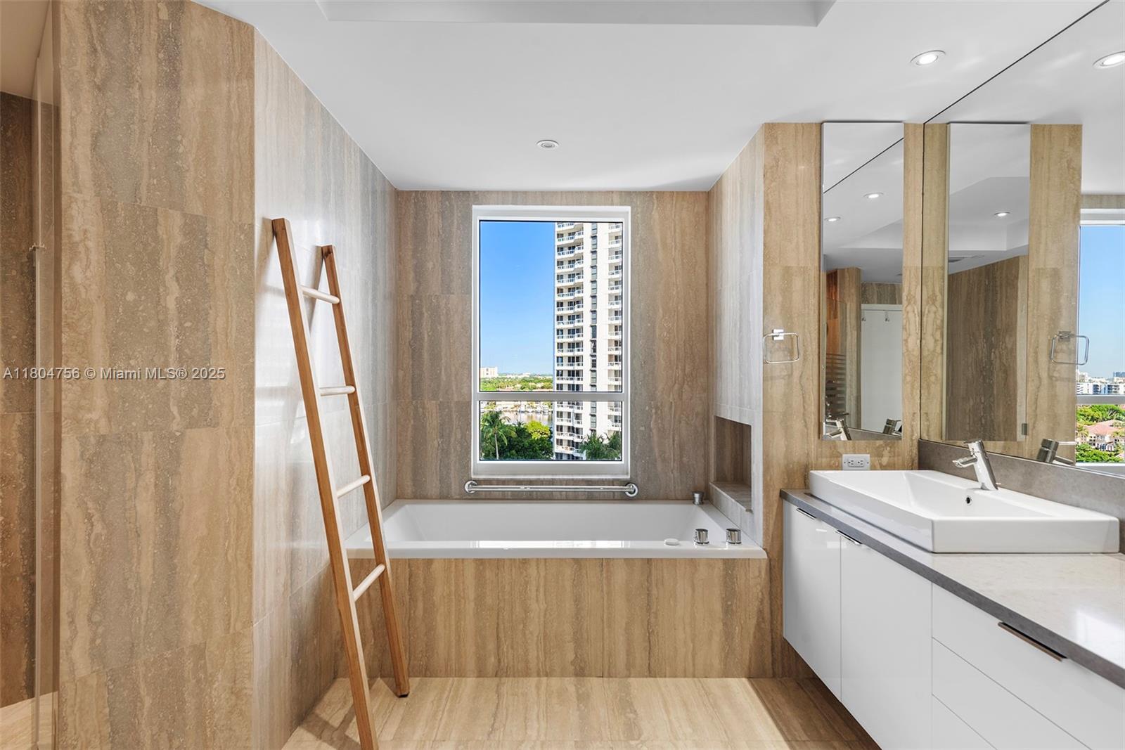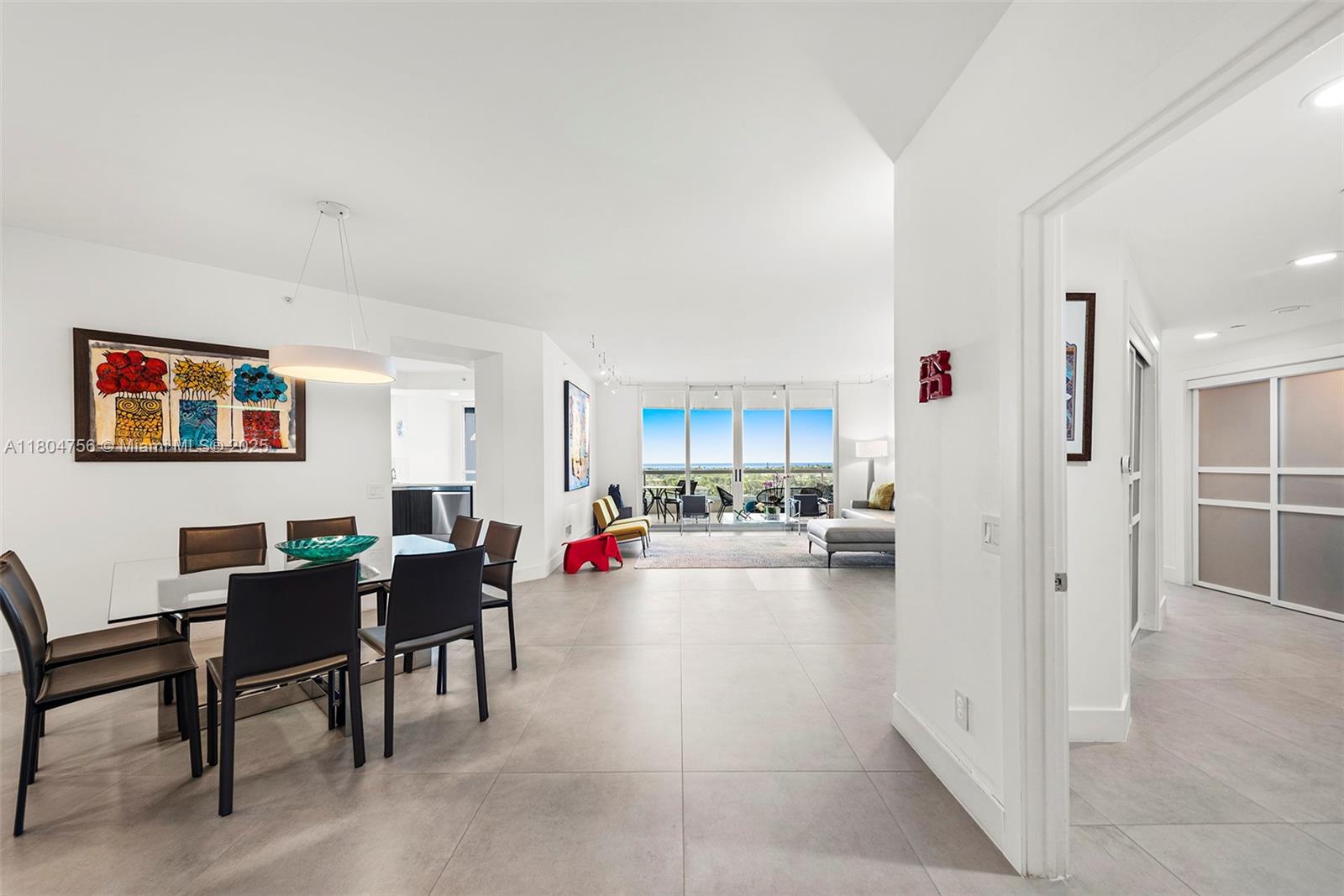 Located in the Atlantic III, this apartment offers breathtaking water views. It features 3 rooms - one currently used as an office, 2 full baths & 1 half bathroom. The master suite a private sanctuary with high-end electronic blinds and walk-in closet, with ample light and beautiful views. Polished porcelain floors run across the living spaces. The master bathroom, crafted from premium travertine, and the mosaic-tiled second bath add sophisticated touches. Residents enjoy world-class amenities such as a billiard room, private aerobics, a movie theater, valet service, 24-hour concierge, security, a library, and a fully equipped gym—perfect for a refined, convenient lifestyle. *Sale does not include the ceiling lamp in the dining room, mirror in powder room & ceiling lamp in breakfast area.