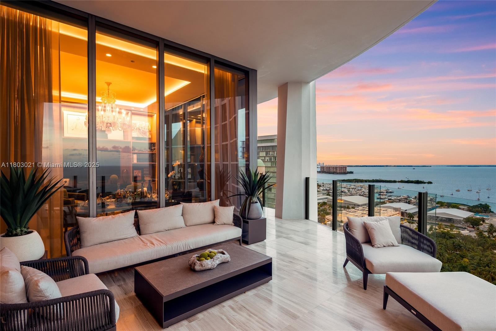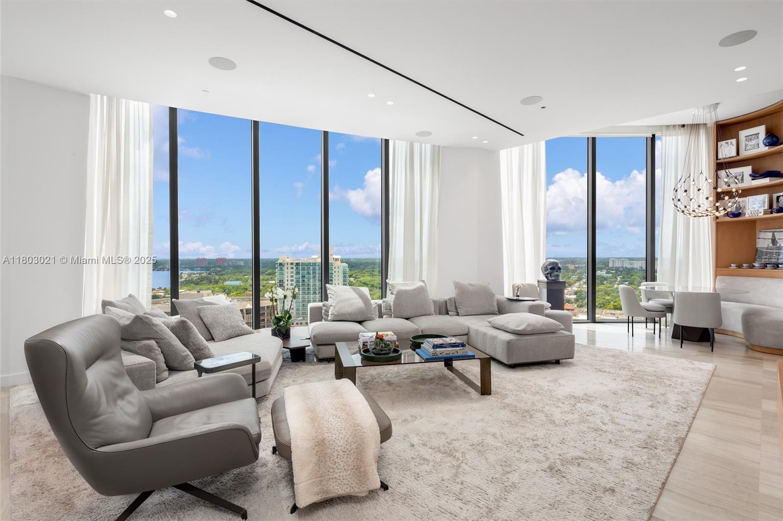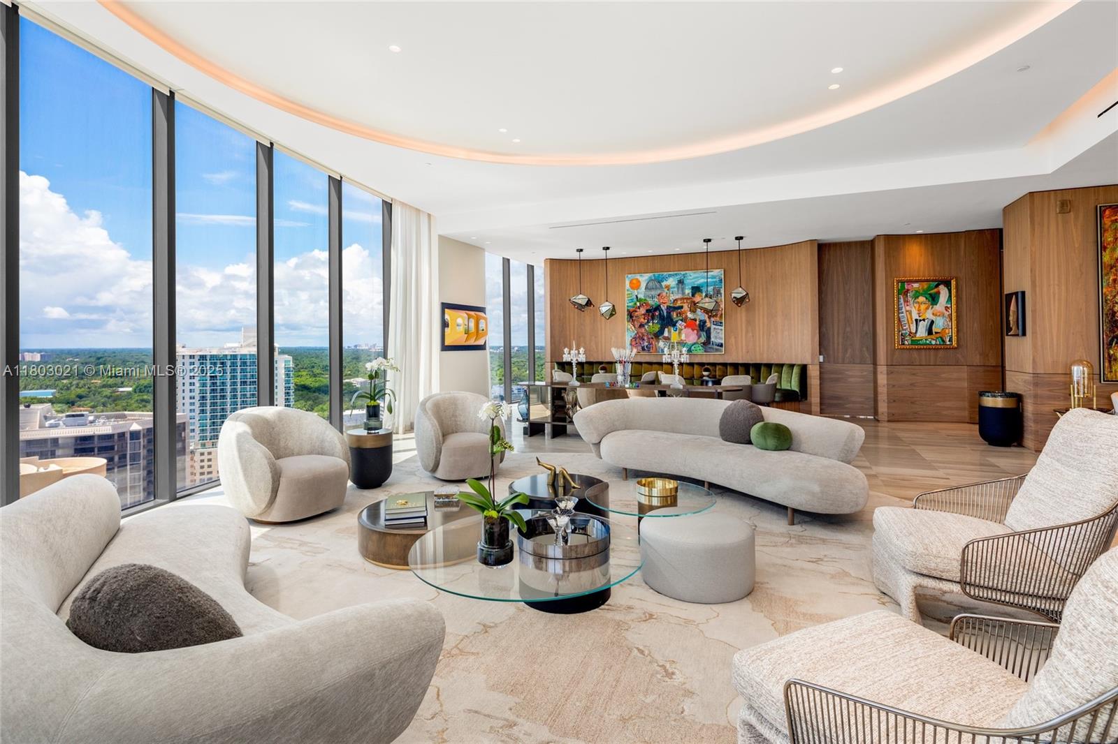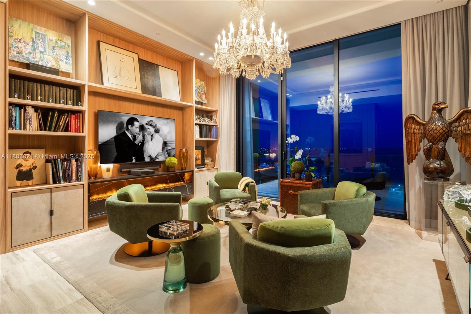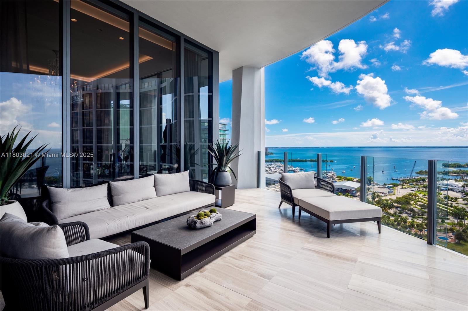 Welcome to luxury living at Park Grove! This nearly 6,500 sqft high-rise rivals penthouses, offering breathtaking 270° ocean and skyline views. Crafted with $3M+ in custom millwork, programmable lighting, and exquisite finishes by Deborah Wecselman. Features include five bedrooms, five bathrooms, two half baths, his and her offices, and extensive built-ins. Enjoy an oversized storage unit and three parking spaces, all right next to the elevator. Expansive 12 foot floor-to-ceiling windows and 835 sq. ft. of outdoor space create an inviting atmosphere. The 750+ bottle wine cellar with temperature and humidity control is a connoisseur’s dream. Amenities include a gym, screening room, billiards room, valet, and more. This unit blends elegance, tech, and design for the ultimate Miami lifestyle.