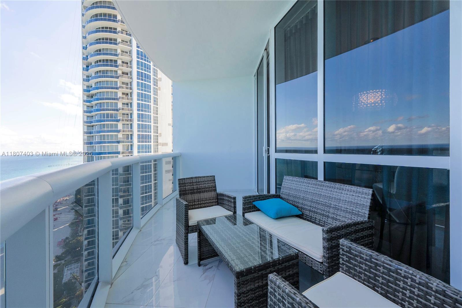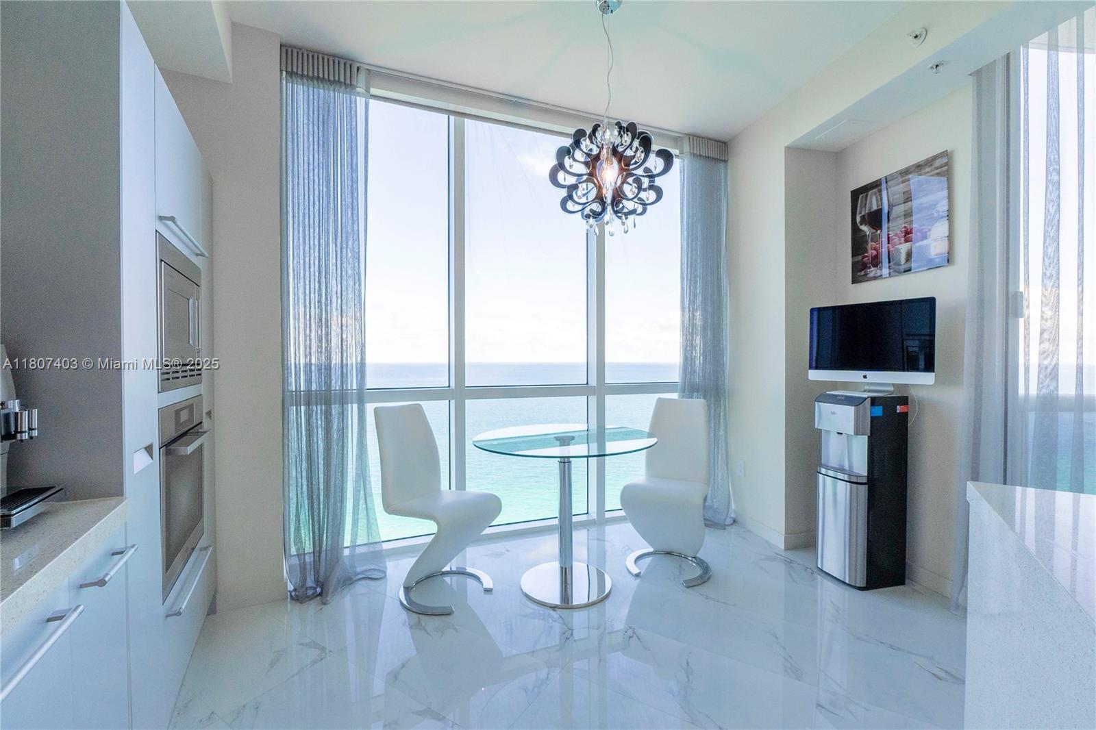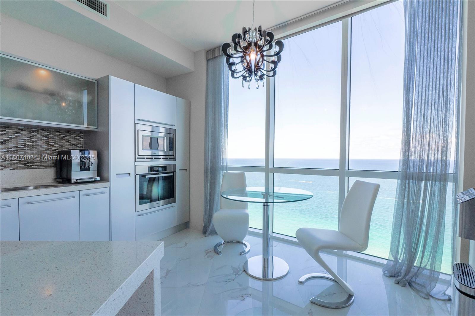 This spectacular 2BR, 2BTH + 1 half-bath/powder room. Direct ocean views from every room. Thoughtfully designed with impeccable attention to detail, the residence features high-end finishes, Roche Bobois furniture, custom closets, decorative lighting, and Italian kitchen with Quartz countertop and Miele appliances. Beautiful wood flooring in bedrooms and marble flooring, extensive wood paneling in the foyer, automated blinds, and brand-new Bosch washer/dryer unit. Private elevator entry. 24-hr concierge, beach access with 1,000 feet of oceanfront, 4 pools, tennis courts, a luxury spa, fitness center, and multiple on-site restaurants. Tropical landscaping,lagoon and lap pools,waterfalls, and a smart building infrastructure. Newer A/C system, new toilets, and updated exhaust fans. Furnished