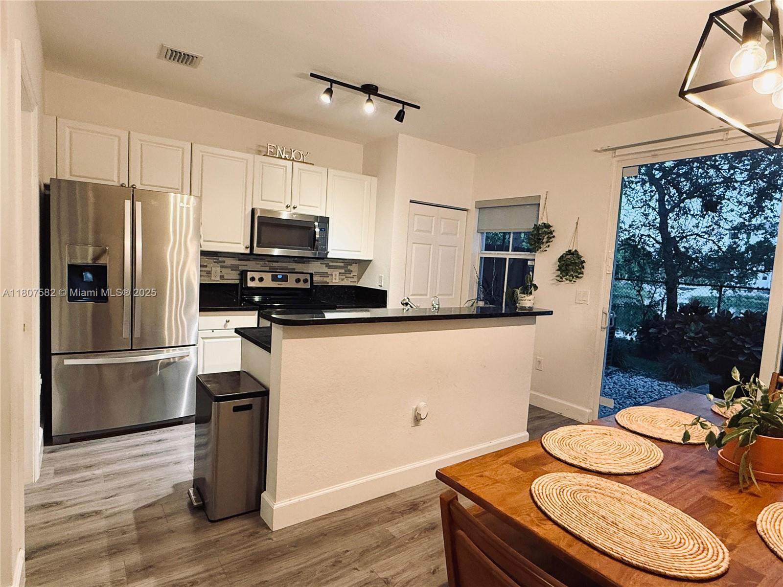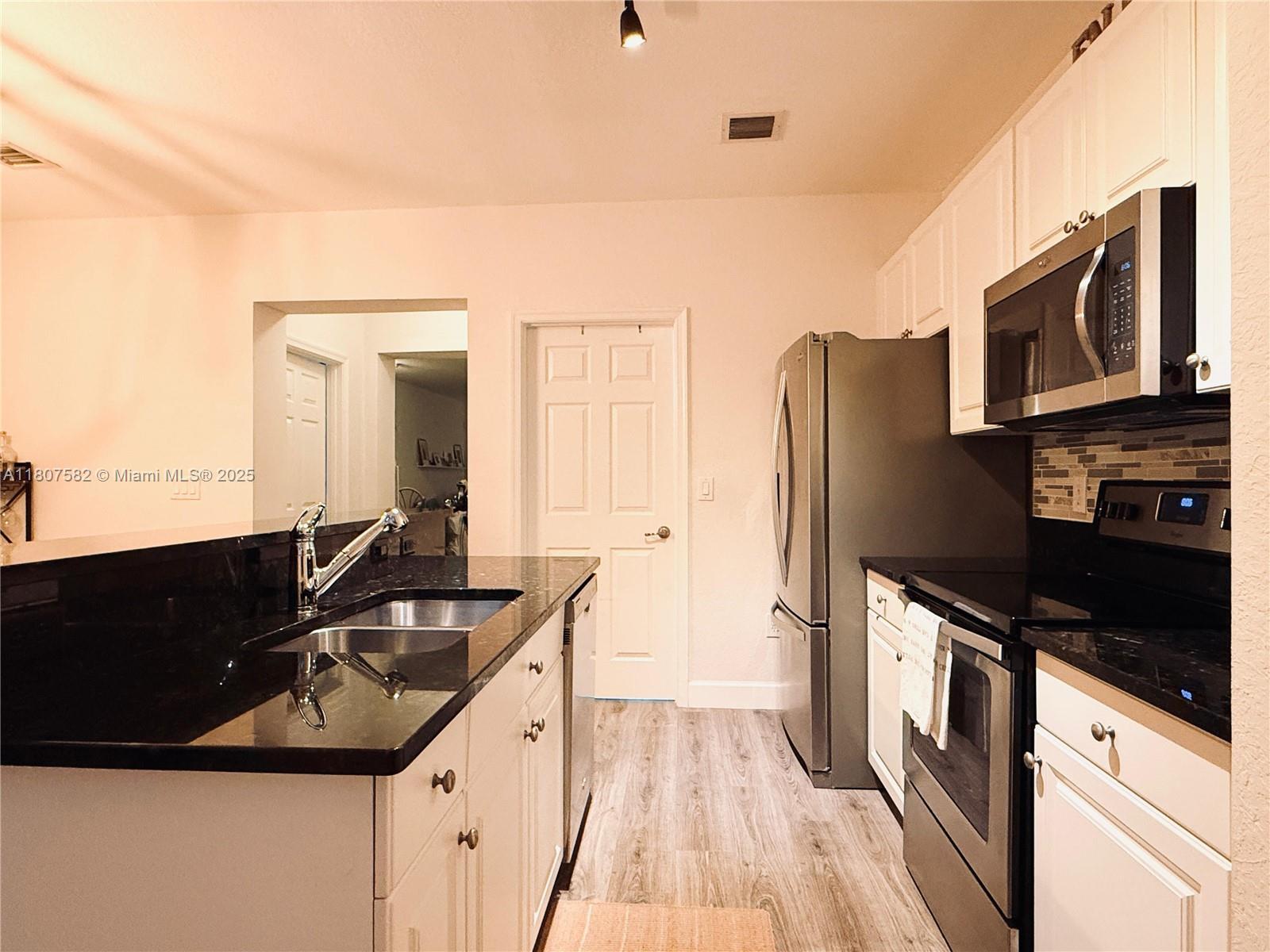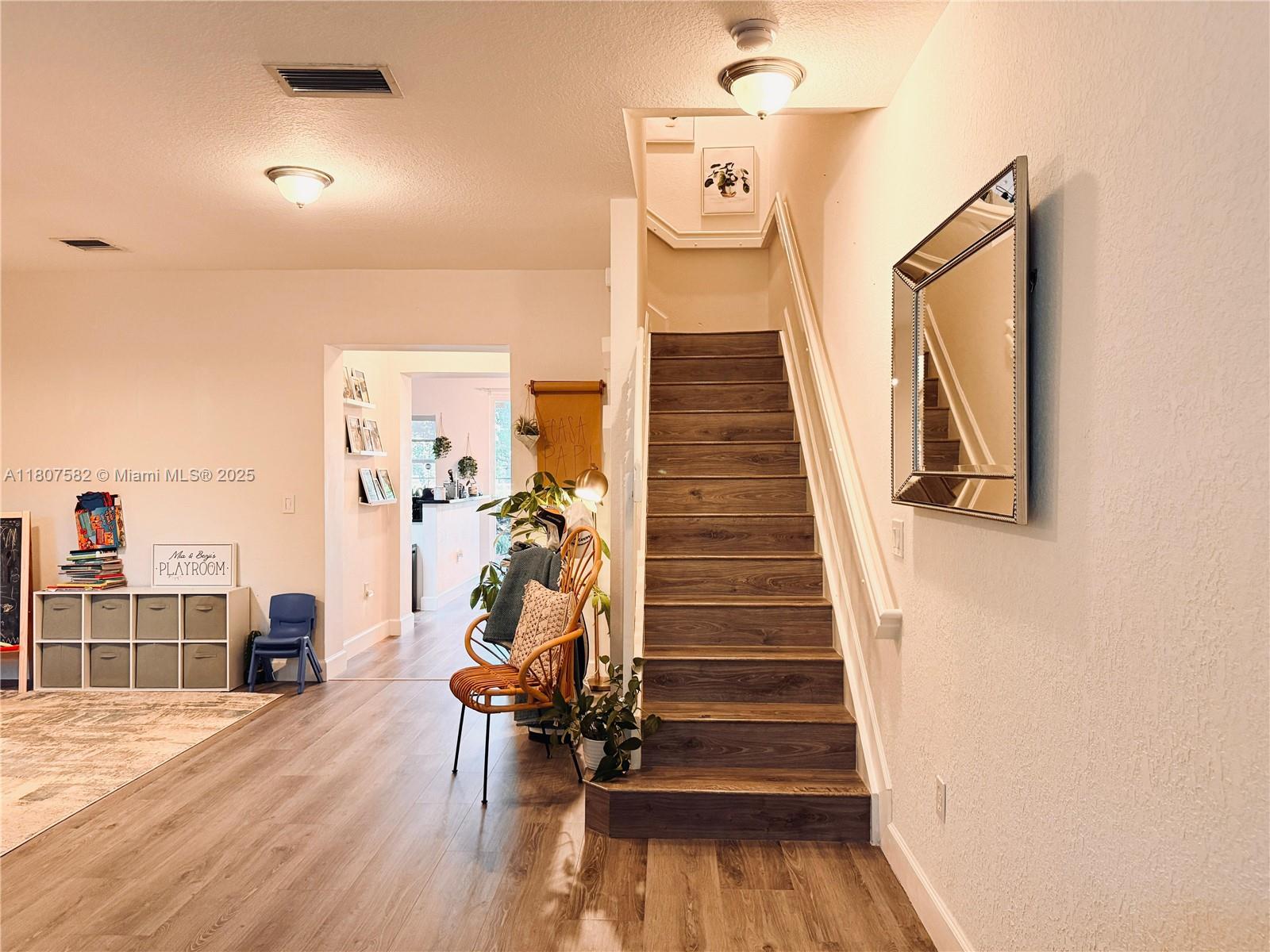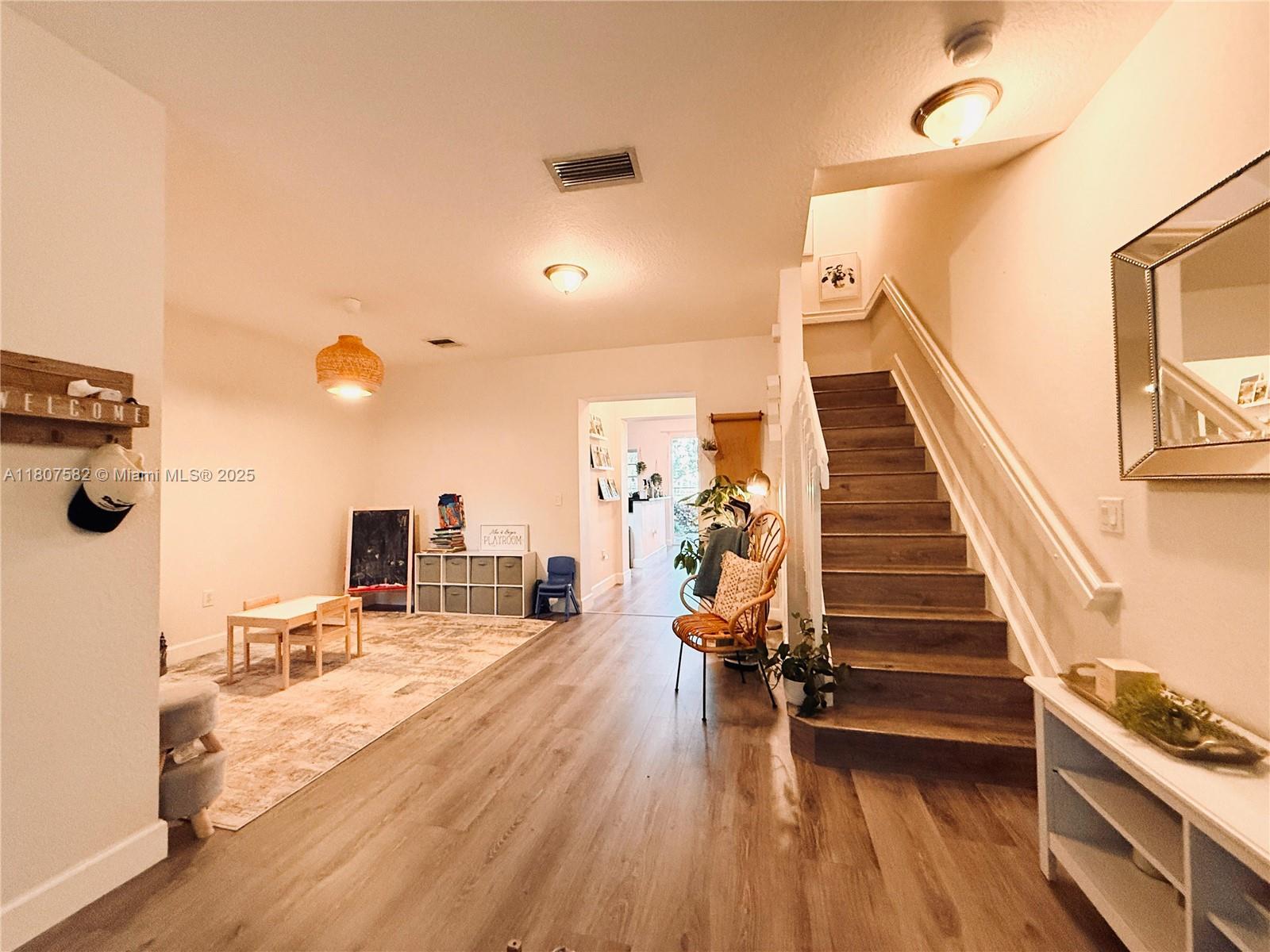 Charming and move-in ready, this 2-bedroom, 2.5-bathroom townhome is nestled in the heart of Miramar’s desirable Martinique community. This spacious two-story home features wood-style flooring throughout, offering a warm and modern touch from top to bottom. The open-concept main level features a comfortable living and dining area that seamlessly flows into a well-appointed kitchen, complete with granite countertops, stainless steel appliances, and ample cabinetry. Upstairs, both bedrooms feature private en-suite bathrooms, with the primary suite offering a walk-in closet and a bathroom with a stand-up shower.
