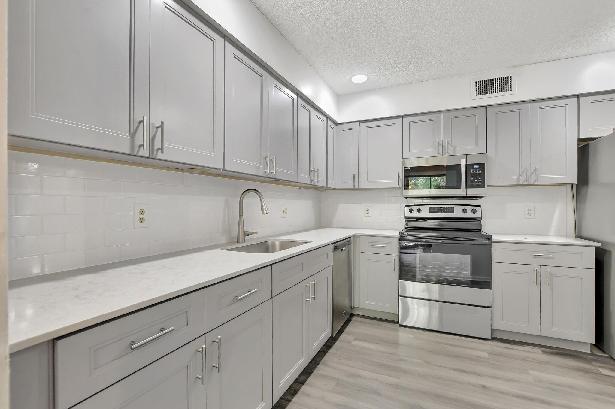 Newly renovated 2 bedroom condo. New Kitchen, flooring and bathroom. Stainless steel appliances. Screened patio looking out on lush garden. It has a one car garage and a long driveway for guests. All this on the ground floor with easy access, no steps. The unit also has accordion storm shutters!CENTRAL BOCA, NEAR EVERYTHING!!!!!