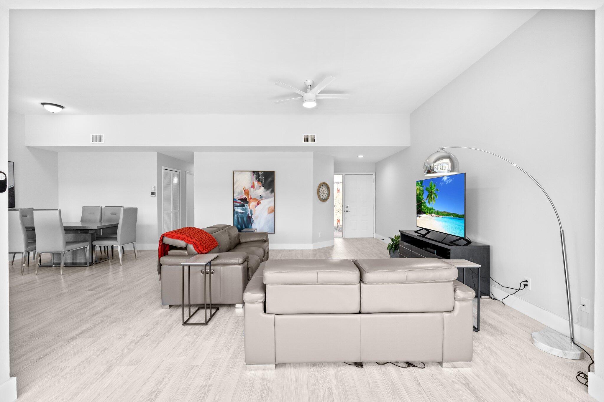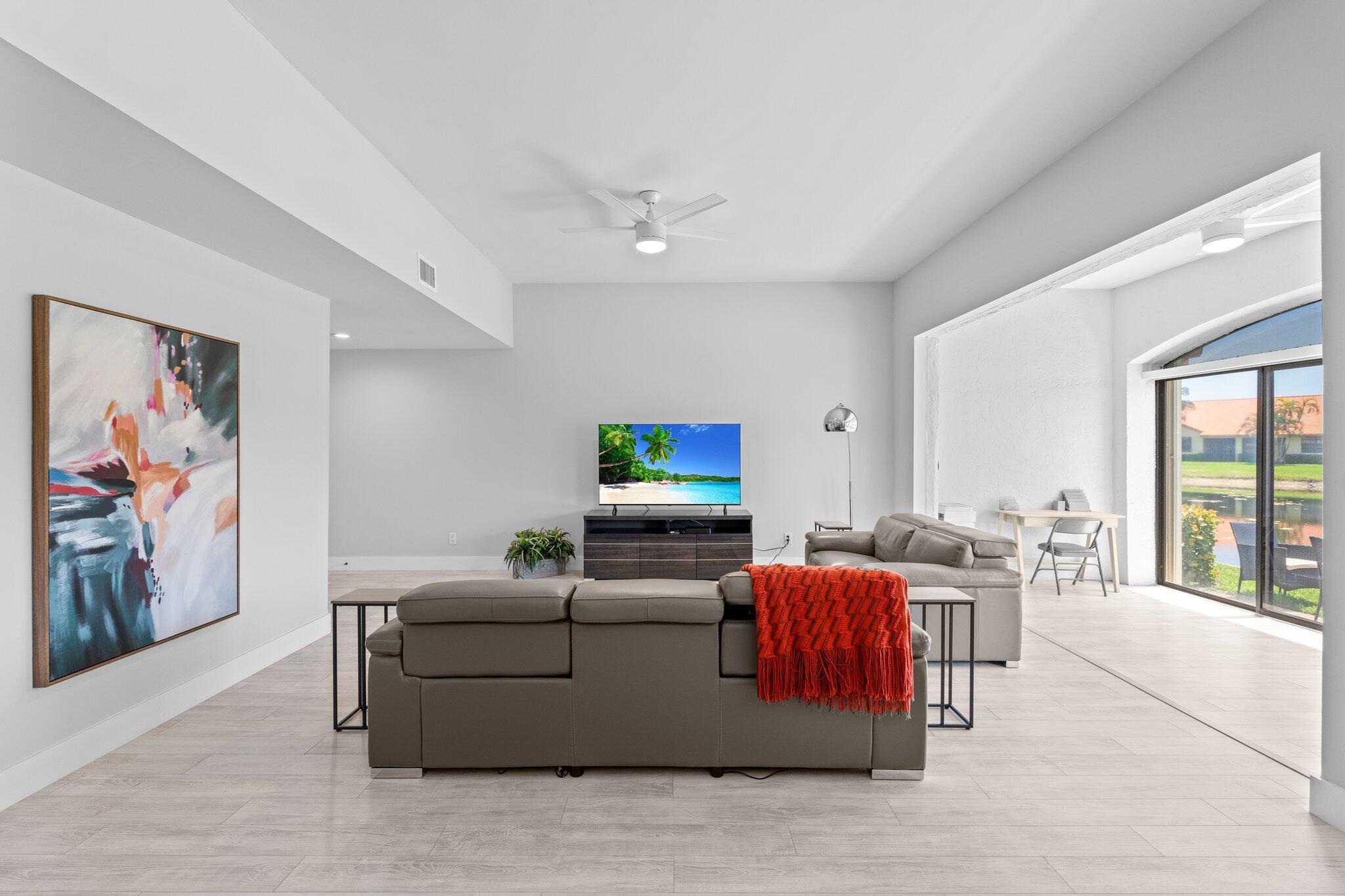 Panoramic lake views steal the show in this beautifully updated 2 bed, 2 bath single story condo with a 1-car garage in The Harbours at Aberdeen, an active 55+ community. The renovated kitchen features new cabinetry, upgraded countertops, and bar seating, all overlooking the water. Vaulted ceilings, natural light, and water-resistant laminate flooring create a warm, open feel. The primary suite offers lake views, a walk-in closet, skylit shower, and dual vanities. Additional updates include a 2023 water heater, 2014 AC, accordion shutters, and interior laundry. HOA covers roof maintenance, exterior insurance, landscaping, cable, water, and more. Enjoy access to pools, tennis, pickleball, clubhouse, and a vibrant calendar of social events.