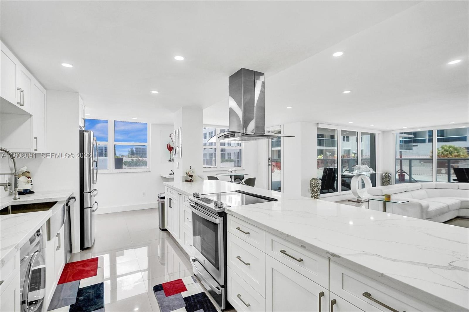 Rare walk-out lanai residence at Aquarius. This fully remodelled Beach-Villa 2-bed, 2-bath corner unit offers 1,768 sq ft of effortless indoor-outdoor living with direct access to the sunset pool deck and gym, no elevators, just step outside barefoot and enjoy the resort lifestyle. Designed for a lock-and-leave second home, the open-concept layout flows seamlessly from the living area to a semi-private lanai, perfect for relaxing or entertaining. Northwest exposure fills the home with afternoon sun and glowing sunsets. Features include a custom kitchen, white porcelain floors throughout, floor-to-ceiling windows with motorized zebra blinds, and a spacious primary suite with two walk-in closets and a spa-style bath featuring a glass shower and freestanding tub. Offered fully furnished with modern furniture. Assessments paid in full. Garage parking included. Aquarius amenities include two pools, an oceanfront BBQ area, an on-site restaurant, a fitness center, valet, and 24/7 security. Vacant and easy to show, this walk-out layout is a rare opportunity. Seller is ready to entertain your offer.