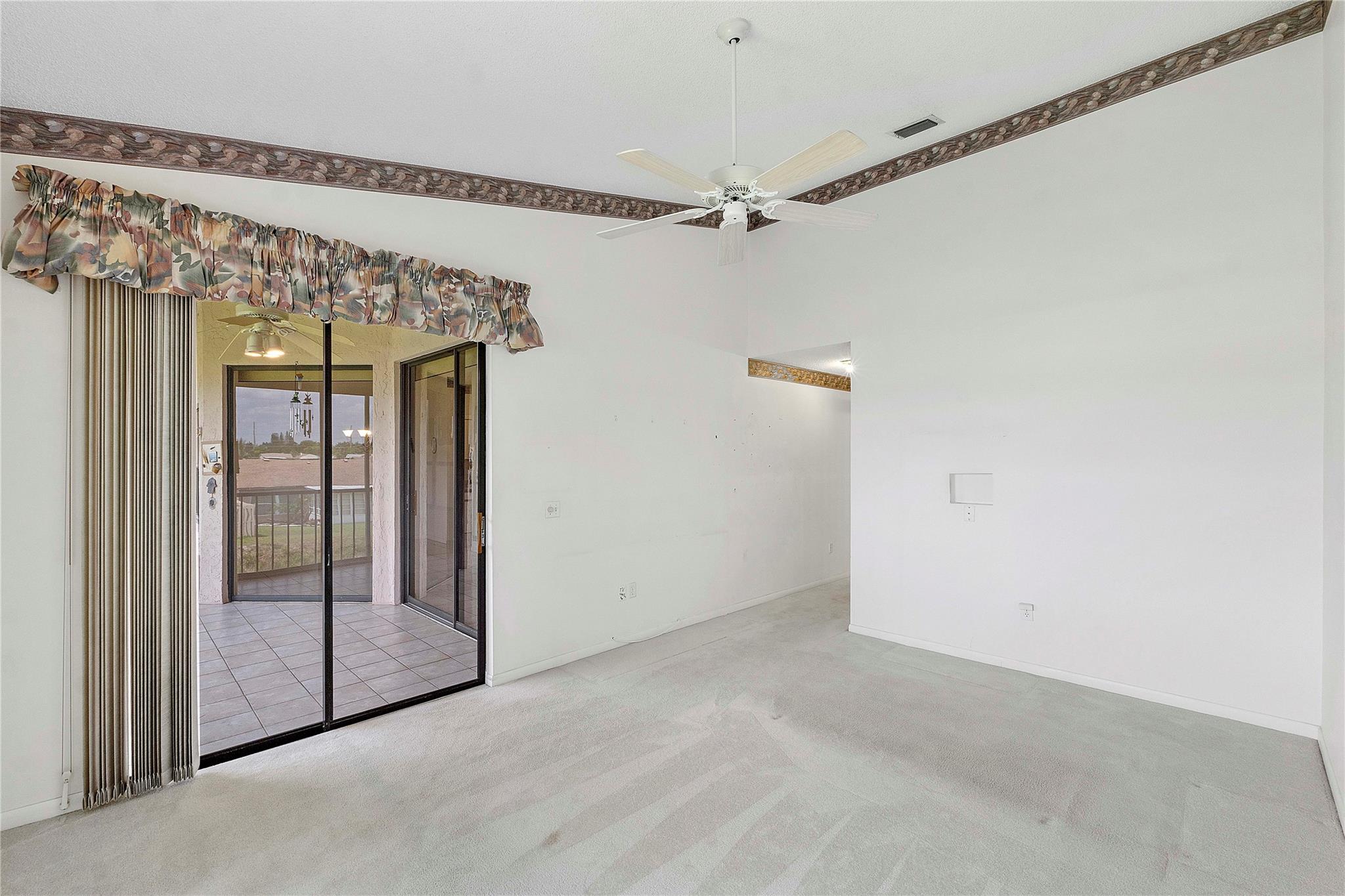 Wow! Great opportunity to acquire a coach home in the Carrara Village of Platina. Enjoy an open and spacious split-floor-plan layout, vaulted ceilings, fully enclosed balcony area, and a 1-car private garage. The galley kitchen, separate breakfast, dining and living areas, and full-size washer and dryer in unit, all lend to the inviting and comfortable living space that the unit has to offer. Gated community with world class amenities including a very active clubhouse with a state-of-the-art gym, performance center, various social clubs, tennis/pickle ball courts, bocce, shuffleboard, 4 swimming pools, and more. Close to shops, entertainment, and minutes from the Turnpike. This is wonderful Florida living.