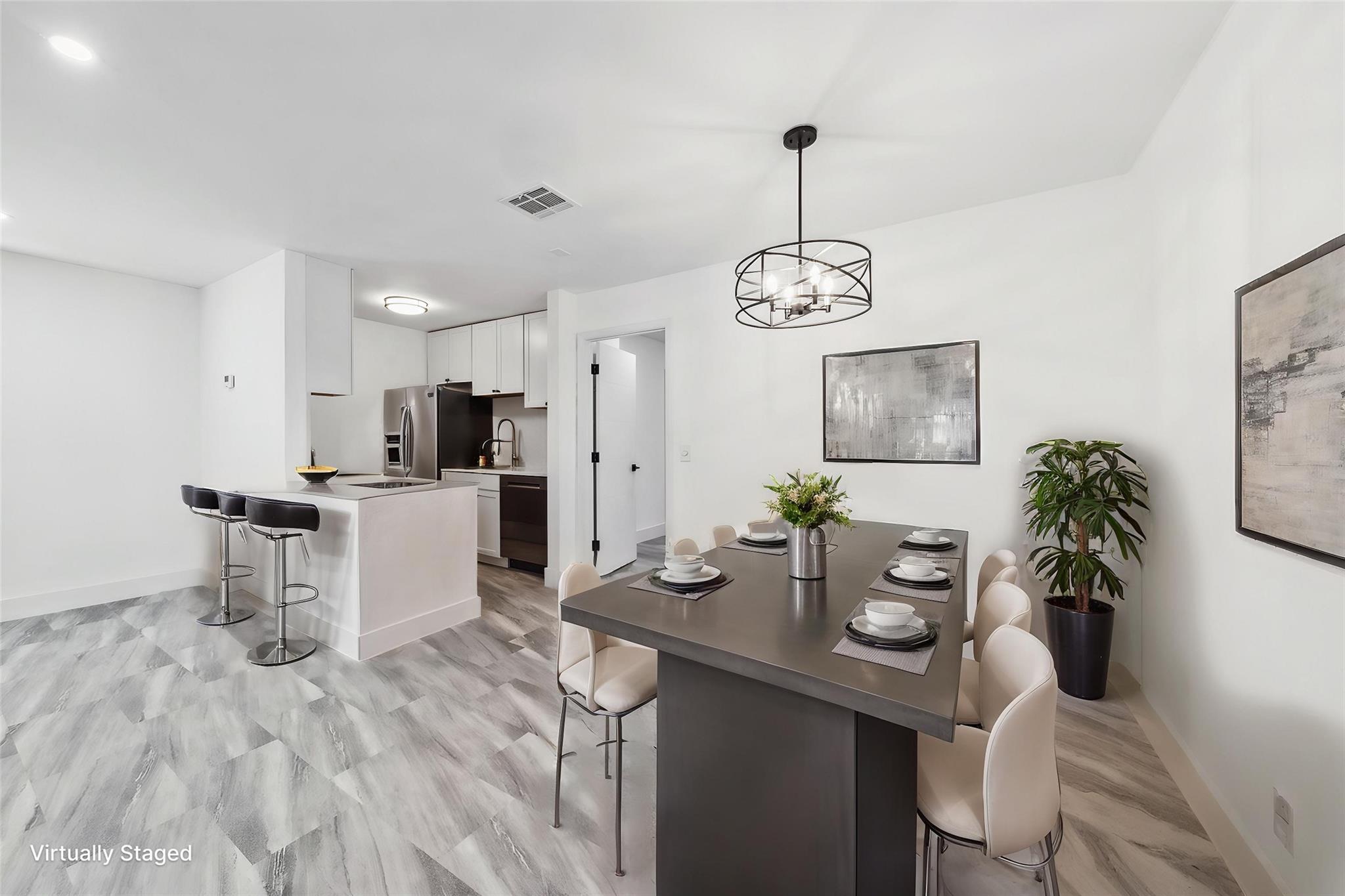 Nestled in the heart of Boynton Beach is this fully renovated 2-bed, 2-bath condo. This unit offers a fresh, modern interior featuring vinyl flooring throughout, updated LED lighting & spacious living area. The kitchen is outfitted with sleek quartz countertops, soft-close white shaker cabinetry & stainless steel appliances. Both bathrooms have been updated with new vanities, tile & fixtures. Step outside to enjoy a private balcony upstairs and a fully fenced-in patio below, ideal for outdoor living & pets. The community includes a pool, tennis courts & scenic lake views. Conveniently located just minutes from I-95, the beach, shopping & dining