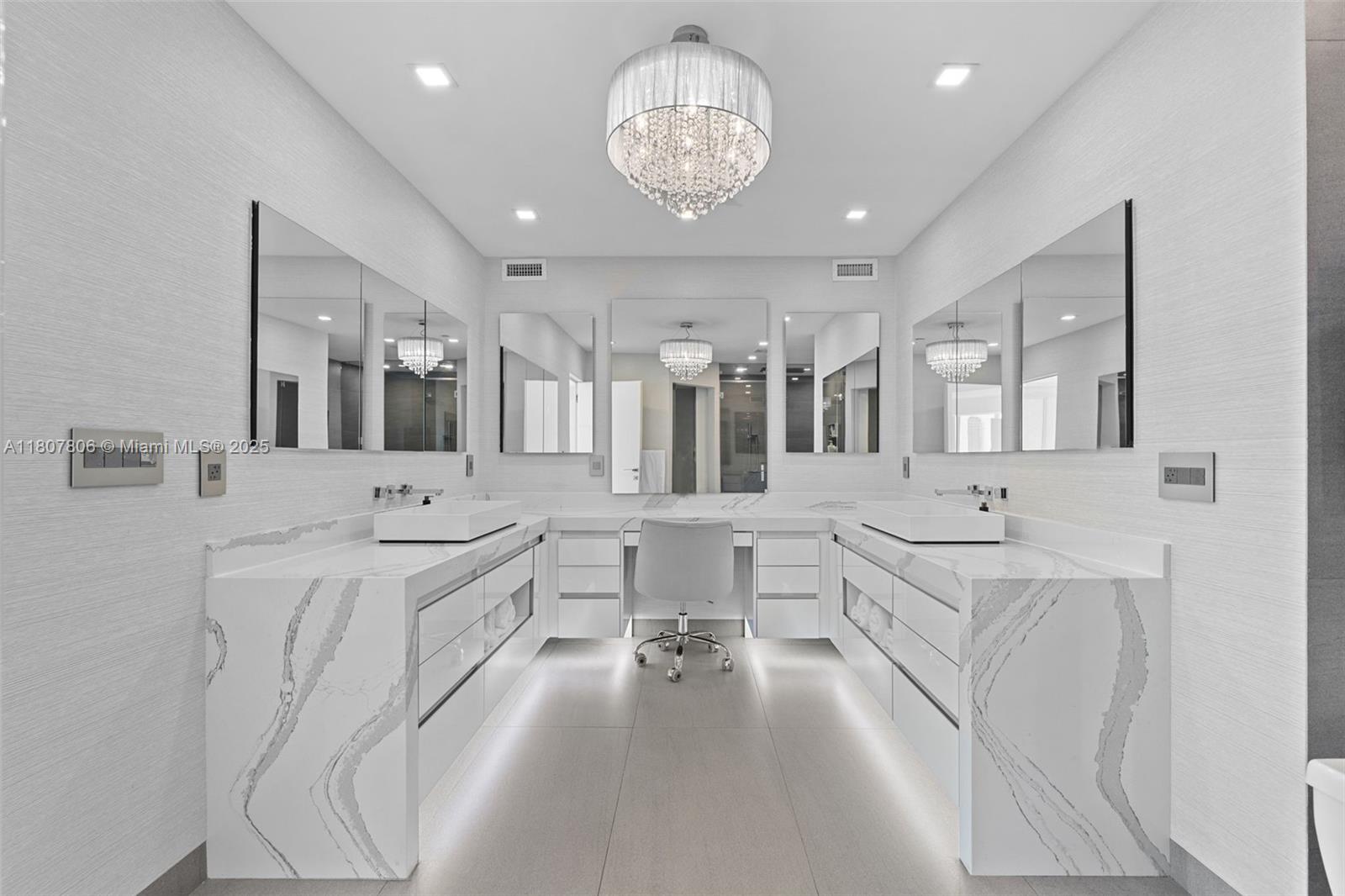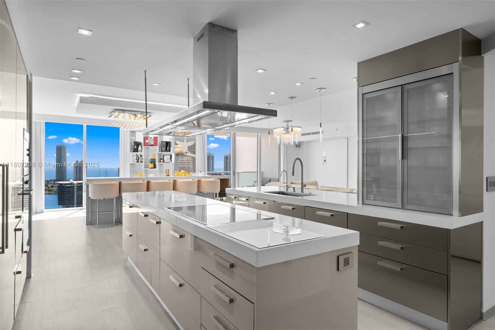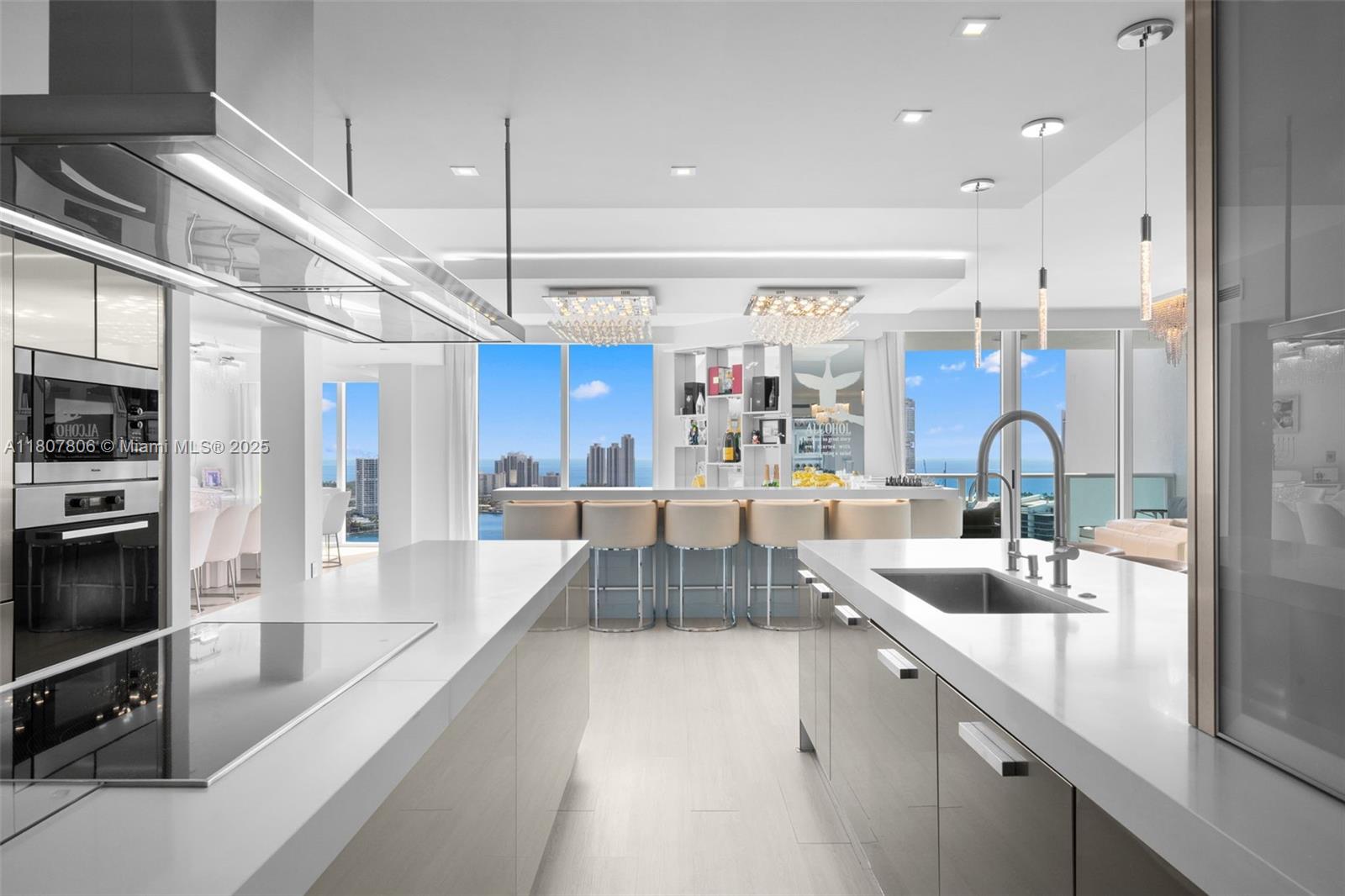 A truly rare offering. This stunning 6-bedroom, 6.5-bath Penthouse has been reimagined with over $1 million in custom renovations, showcasing a seamless fusion of sophistication, comfort, and state-of-the-art design. Spanning more than 5,500 square feet. This residence offers a thoughtfully designed floor plan and breathtaking panoramic views from every room. The gourmet kitchen is a chef’s dream, featuring an oversized island, premium built-in Miele appliances, and sleek, modern finishes. Ideal for entertaining and daily culinary enjoyment. Additional highlights include a stylish bar, custom wine cellar with cigar storage, and extensive built-in closets throughout the home. The oversized primary suite offers unmatched luxury with floor-to-ceiling windows framing spectacular water views.