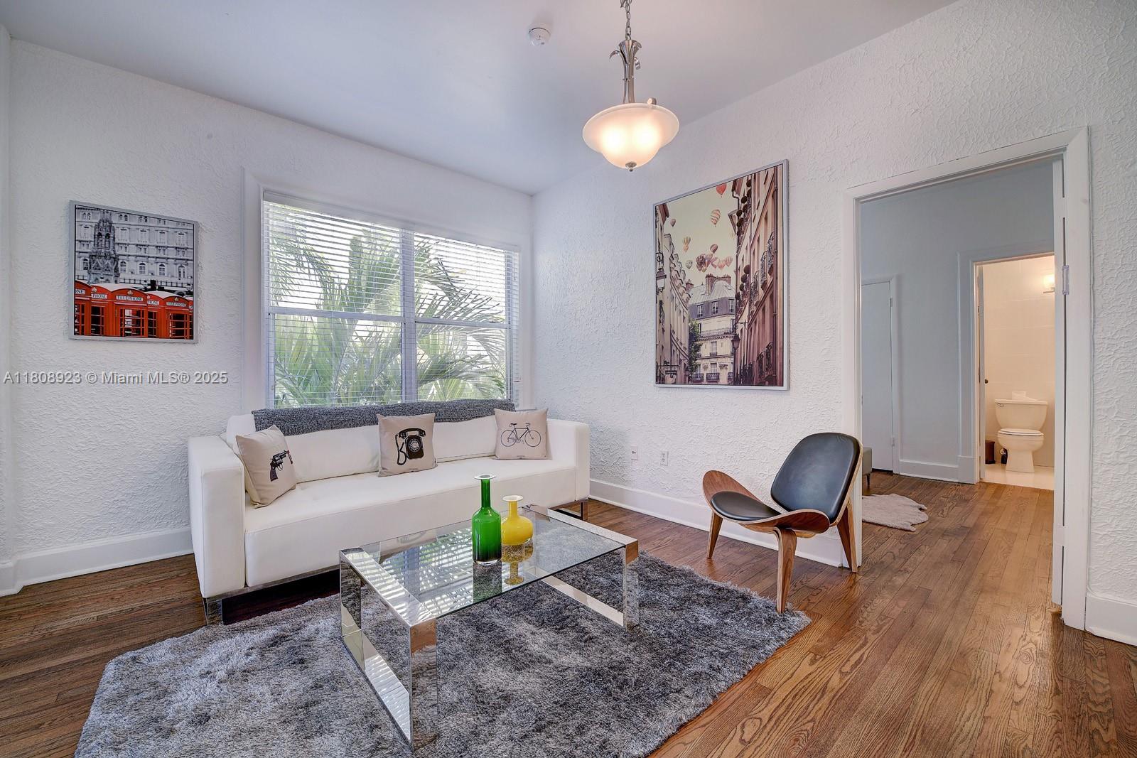 Iconic Art Deco Mediterranean Classic building. Spacious and Bright 1-1 Fully Furnished (some furniture differs from photos). Separate Living and Dining areas . Corner unit, multiple windows full of natural light overlooking internal beautiful courtyard. Updated kitchen with brand new refrigerator, updated bathroom, 2 closets in bedroom, original wood floors , Central AC 4 years old, indoor Bike storage in building. Centrally located next to Lincoln Road and short walk to the amazing Flamingo Park ,the Beach and Bay. Easy street parking with residential permit . NO special Assessments , Inspection Approved. available Now TEXT Listing Agents or use Showing Assist (Sofa different from photos)