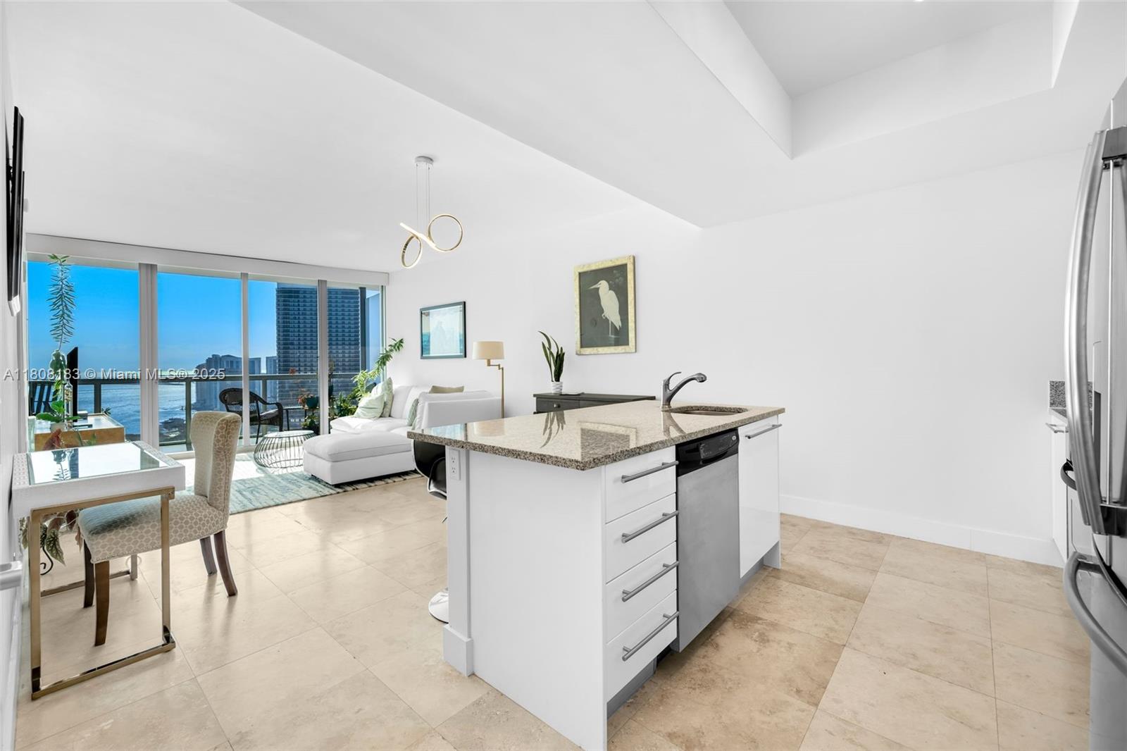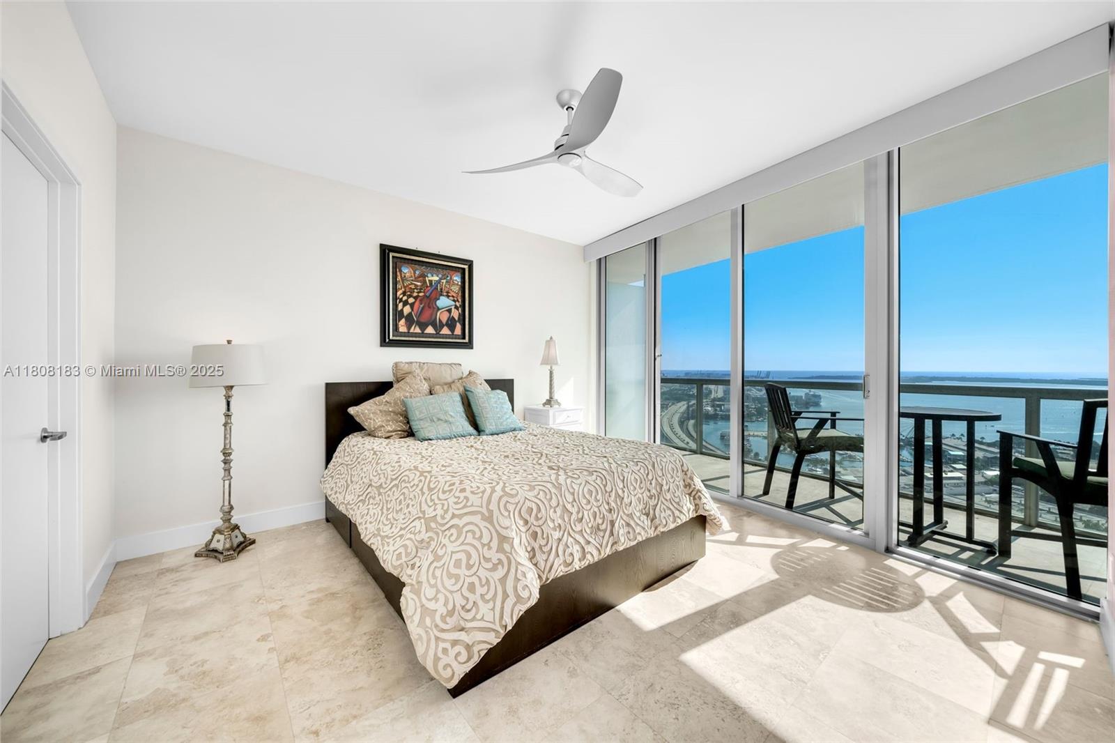 A beautifully appointed 1 Bed/1.5 Bath condo w/ marble flooring throughout, s/s kitchen appliances, a spacious California-style closet in the master bedroom, and 9-ft high ceilings w/ floor-to-ceiling glass windows offering sweeping views of Biscayne Bay & the Downtown Miami skyline from 37th floor. Includes 1 assigned parking space + storage cage. Unit is in impeccable condition. Refrigerator + A/C unit replaced in past 5 yrs. New bathroom faucets + new shower floor. Amenities include 2 pools, hot tub, fitness center, business center, sand volleyball court, BBQ area, and party room. Marina Blue is within walking distance of the Adrienne Arsht Center, Frost Science Museum, Perez Art Museum, Kaseya Center, Bayside Marketplace, and Miami Worldcenter.