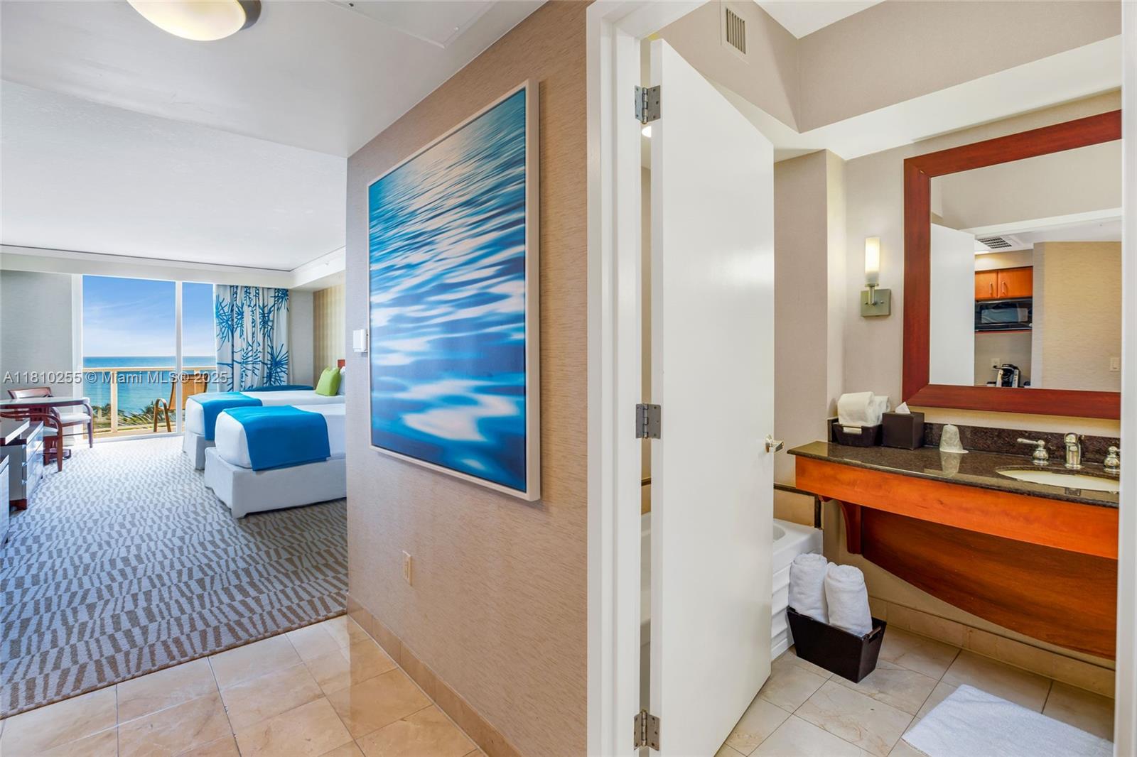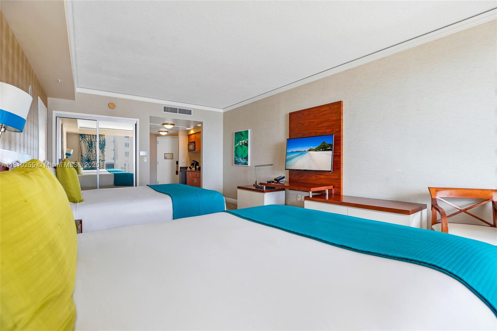Luxurious Resort Living at the Beach! Welcome to your oceanfront escape at Trump International Sunny Isles — the perfect place to stay or rent out for great income! This fully furnished suite features two queen beds, a sleek kitchenette, and stunning ocean views. Enjoy world-class resort amenities: beachfront pool, spa, gym, restaurants, and concierge service — all in one of Miami’s most desirable beachfront locations.