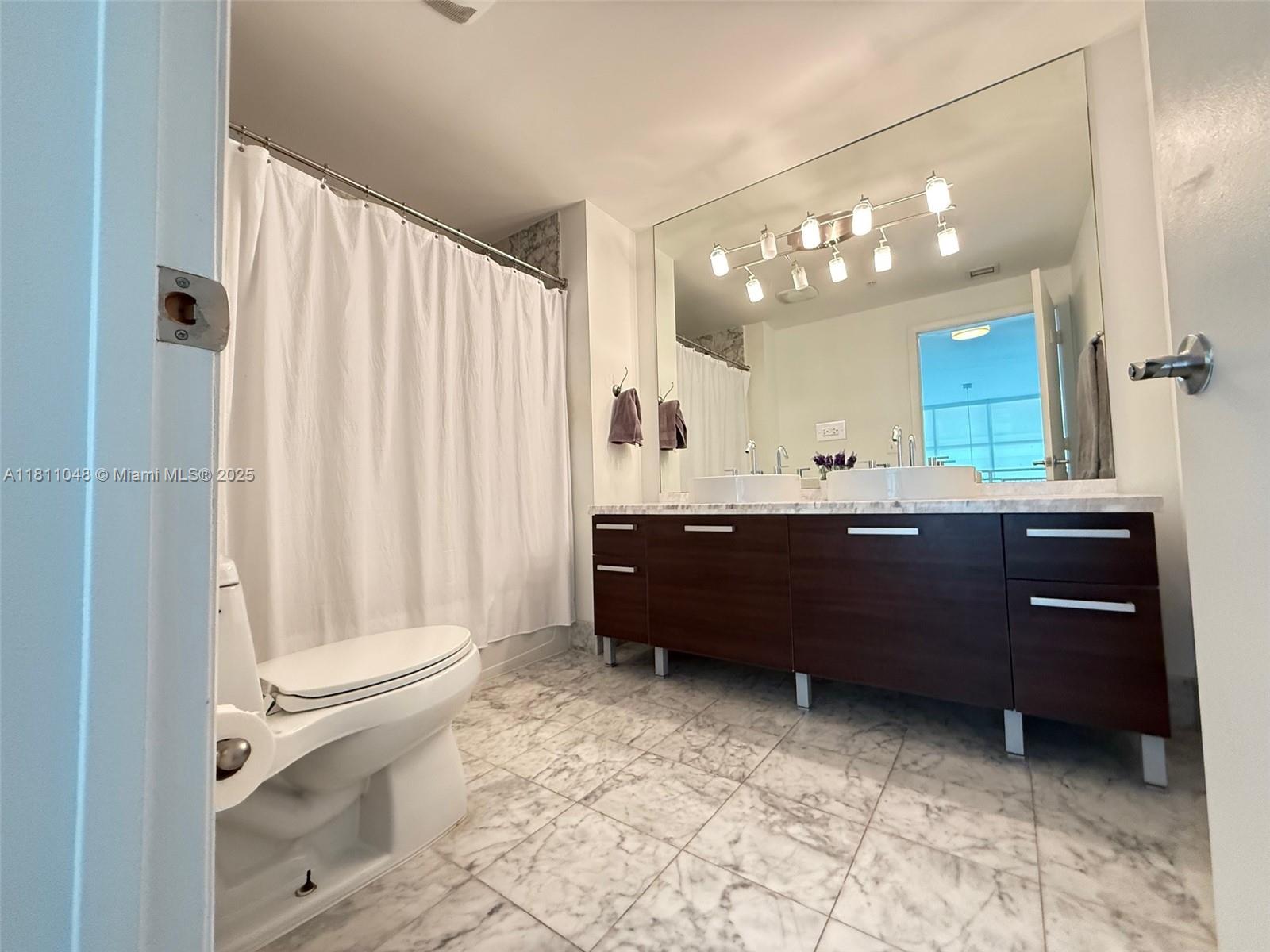 Beautifully furnished 1 bedroom, 1.5 bath condo in Vizcayne South, ideally located in the heart of Downtown Miami. This elegant unit features porcelain floors throughout, an open layout, and a spacious balcony with city views. The modern kitchen boasts stainless steel appliances, granite countertops, and Italian cabinetry. The primary suite includes a large walk-in closet and a luxurious bathroom. A stylish powder room and in-unit washer/dryer add convenience. The building offers unmatched resort-style amenities, as four swimming pools and lush sundeck with bay views, full spa with sauna, steam room, and cold plunge, large fitness center with yoga and aerobics studios, clubhouse, movie theater, business center, and game room. Fast Internet and 500+ channels included! Thats a MUST SEE!!