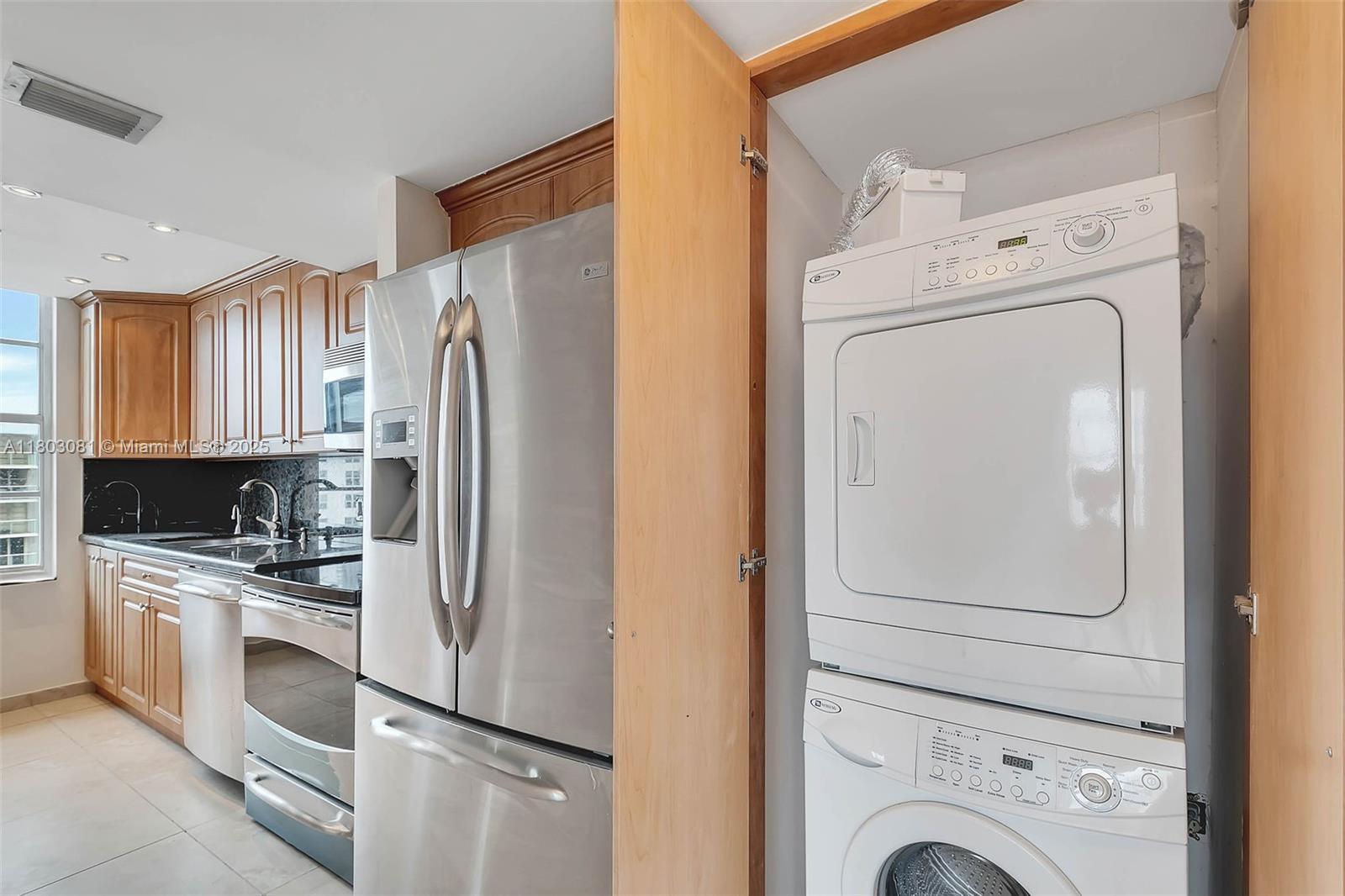 Perched on the 23rd floor of a 24-story building, this light-filled corner unit offers ocean & intracoastal water views. Featuring tile flooring throughout, the residence has a spacious layout with two large bedrooms & custom closets for optimal storage. The kitchen is equipped with granite countertops & stainless steel appliances, plus an in-unit washer & dryer for added convenience. The building offers a doorman/security attendant & is currently undergoing it's 50 Year Recertification that involves interior & exterior renovations, including a refreshed pool deck & lobby No rentals or pets allowed (except ESAs), preserving a peaceful, residential atmosphere. A rare find with high-floor views & beachside living.