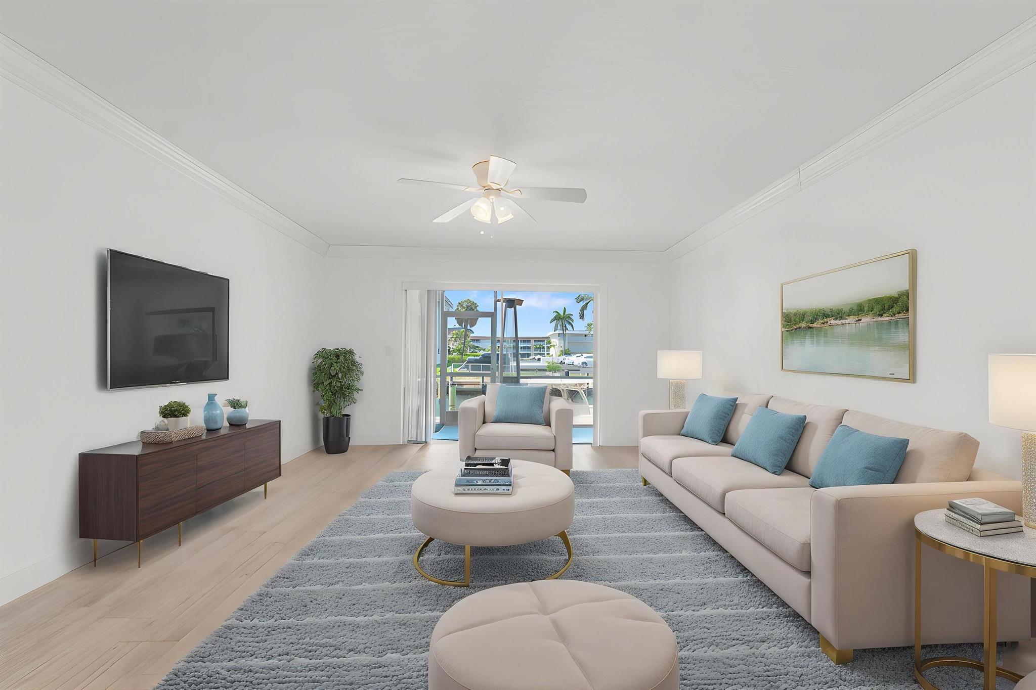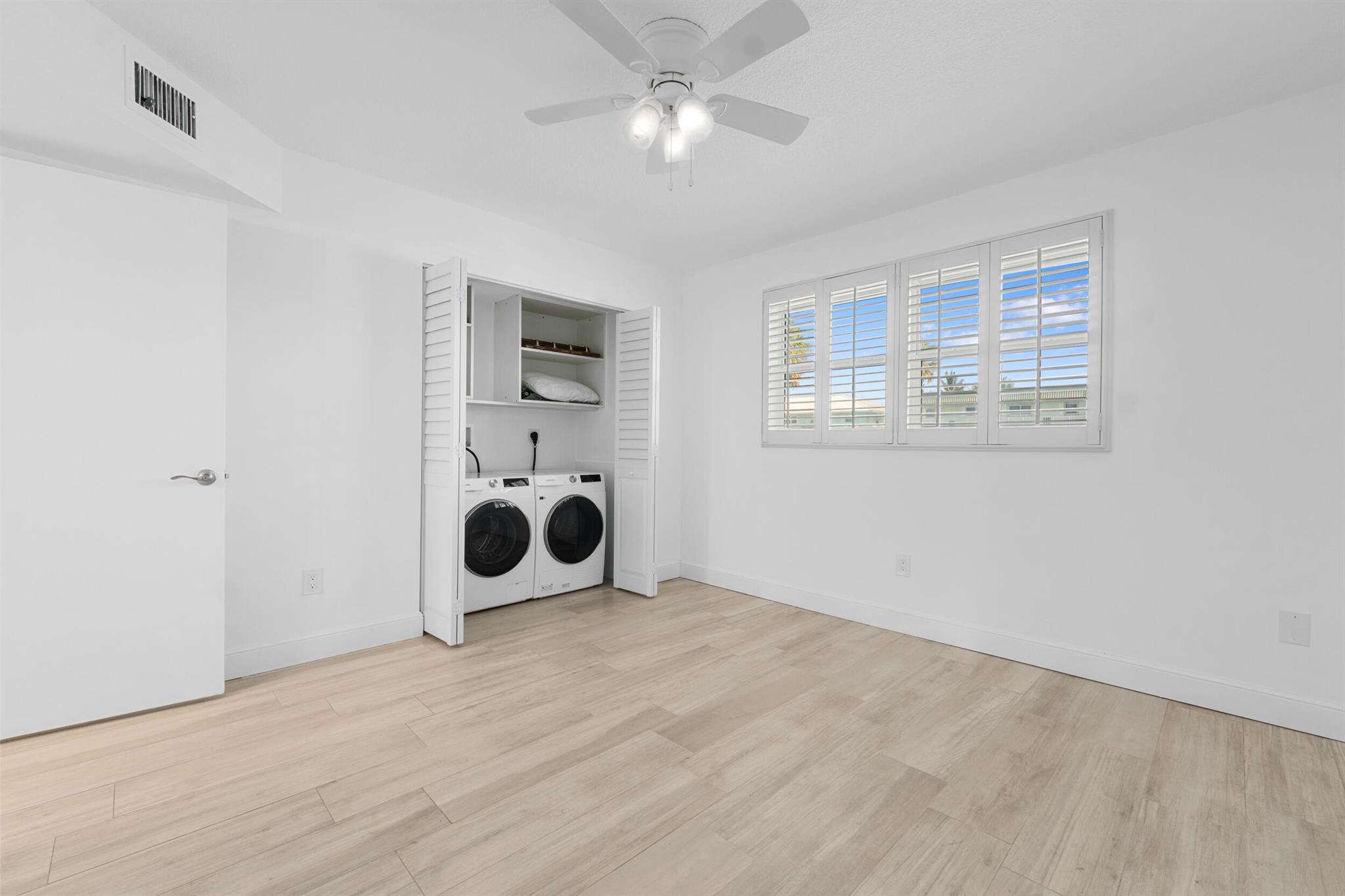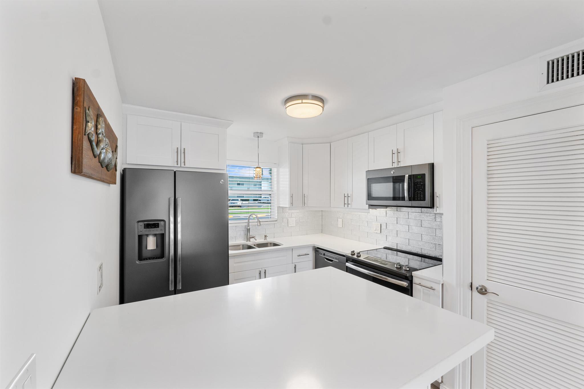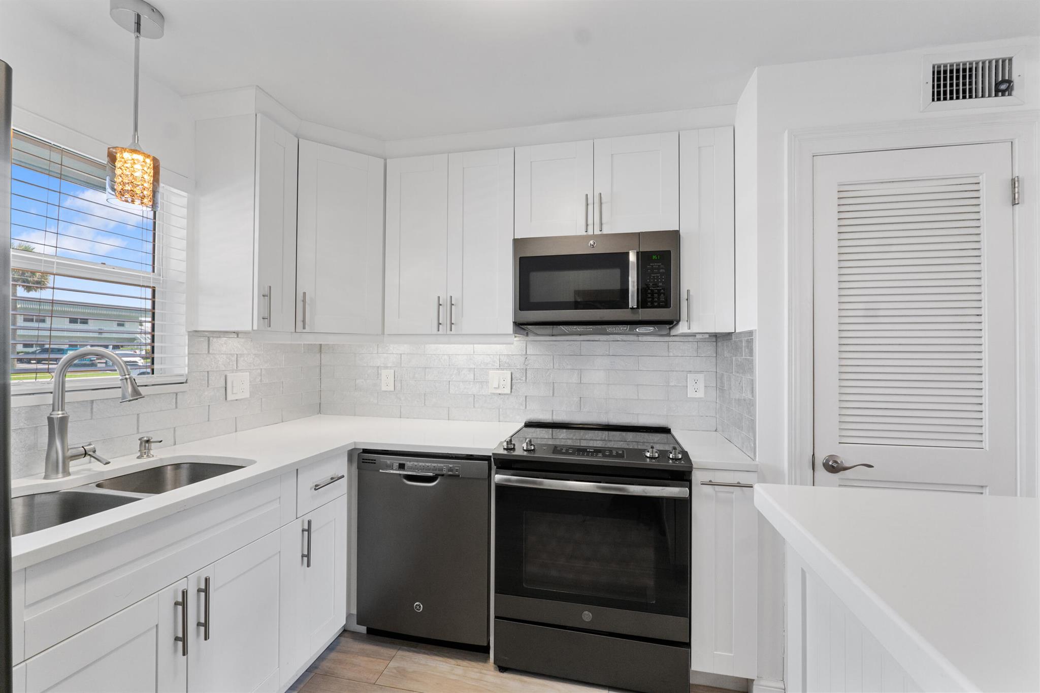 Windor Park is situated along an interior canal just off the intracoastal in the Village of North Palm Beach. This fully renovated two-bedroom, two-bathroom condo features tile flooring throughout, along with soft close cabinetry in both the kitchen and bathrooms, which also include updated vanities. The master bedroom has a generous walk-in closet and has direct access to a screened patio that offers picturesque views of the canal and passing boats. The condo is equipped with impact windows adorned with plantation shutters, and the dining room, conveniently located adjacent to the kitchen, includes a bar with a wine cooler. This property is move-in ready and is ideally positioned near beaches, restaurants, and the North Palm Beach County Club.