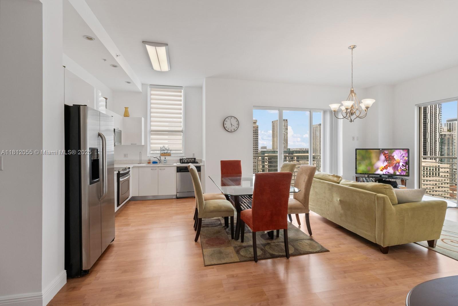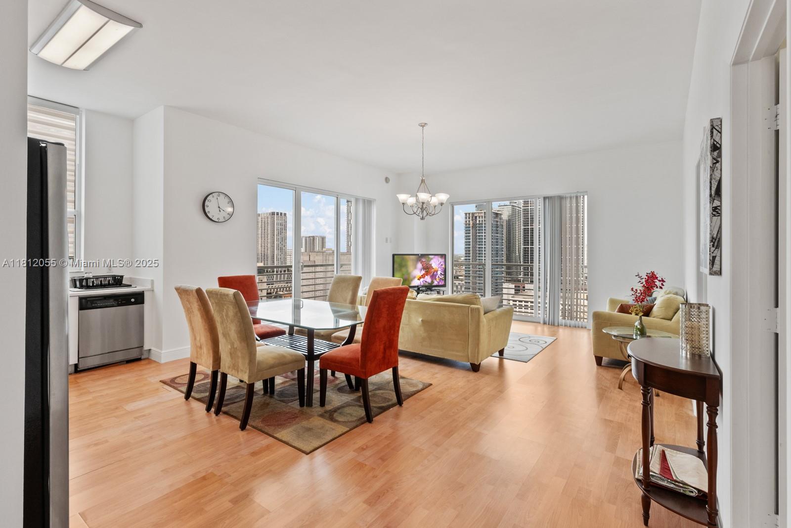 **Views from Every Room! Stunning Sunsets from a High-Floor Corner Residence in Downtown Miami!** Spacious two-bedroom, corner unit offers breathtaking views and the Largest Floor Plan in the building. The living room is illuminated by two large sliding glass doors, welcoming an abundance of natural light and showcasing the vibrant energy of Downtown Miami. Enjoy captivating sunsets, and when night falls, the skyline sparkles with city lights. Key Features: High ceilings, open kitchen, In-unit washer/dryer, Floor-to-ceiling glass with sweeping city views, 24-hr front desk attendant, secured entry, Rec room w/pool table, Rooftop gym w/sauna, Rooftop pool. Perfectly located for urban living, walk to The Arena, Bayside Marketplace, Theaters, Museums, Brickell, & short drive to So.Beach.