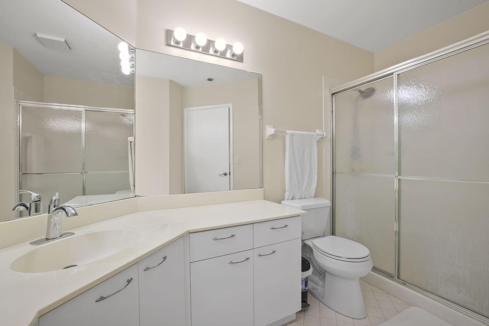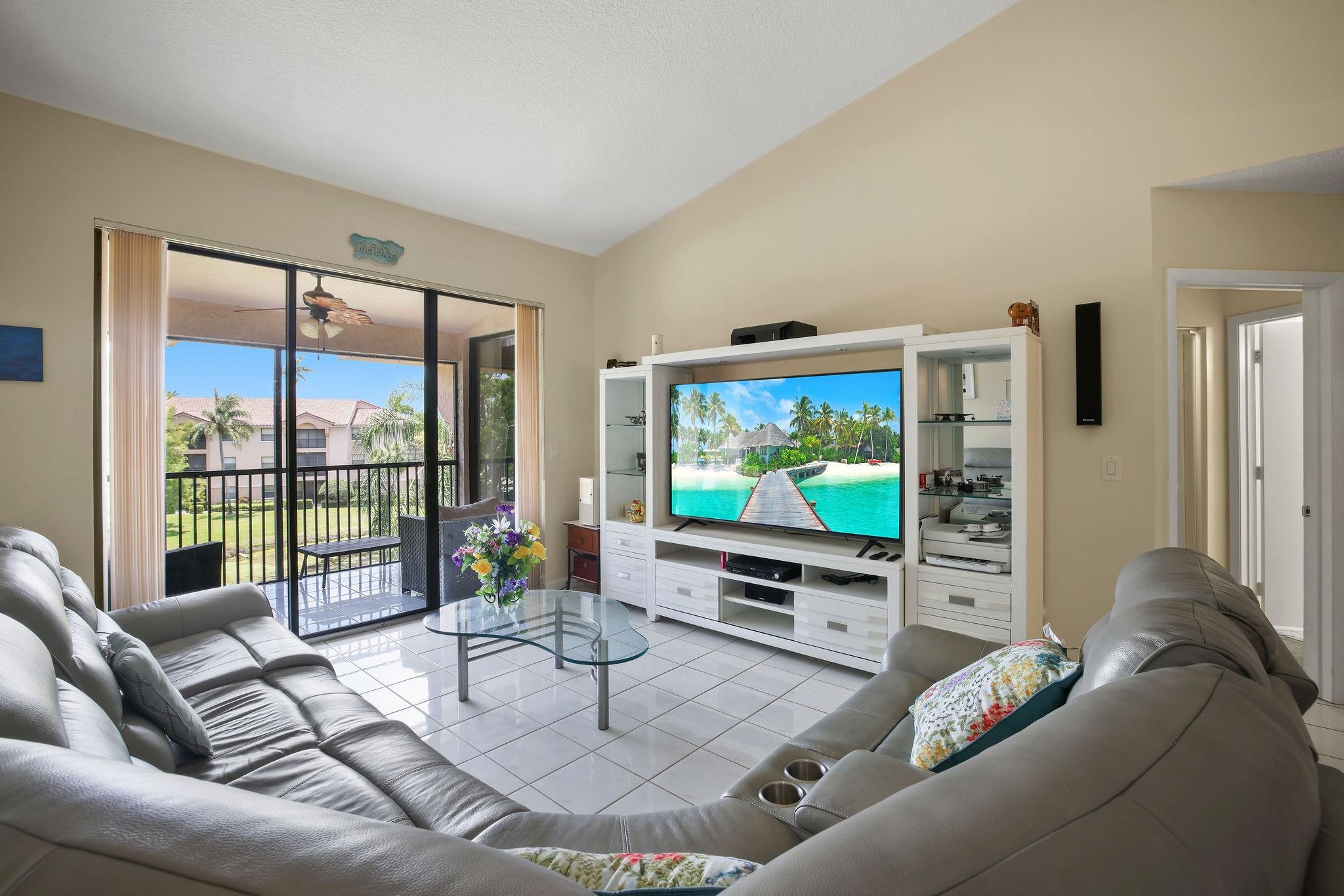Seller motivated—make an offer! VA Approved! Beautiful top-floor corner unit in Bayside Village. This spacious condo features a split floor plan with approximately 1,100 sq ft. Enjoy a modern kitchen with quartz countertops, white cabinets, and all-new stainless steel appliances. The main areas feature tile flooring, while bedrooms have carpet, & the bathrooms have been updated. Relax on the screened balcony with expansive views of the lake. Both bedrooms offer walk-in closets. Impact windows/doors, washer/dryer, & fresh paint throughout. Residents have access to resort-style Township amenities, including an aquatic center, fitness center, tennis courts, basketball courts, beach volleyball courts, clubhouse, theater, & more. Close to shopping, dining, & highways.