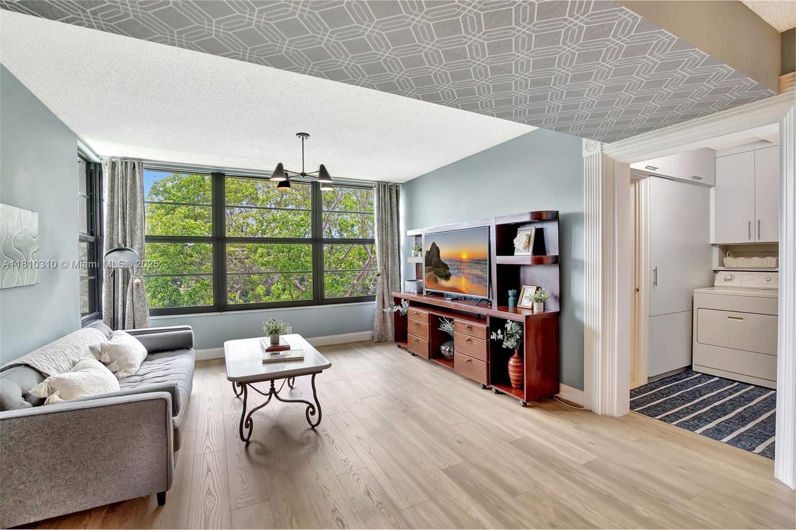 Beautifully updated & artist-decorated 2-bed, 2-bath condo with 1,385 SF of spacious living. Located on the top floor. This private corner unit is filled with natural light & offers panoramic golf course view. Thoughtfully designed layout with an in-unit W&D and a versatile utility room perfect for an office, guest or yoga room. Enjoy access to Pine Island Ridge Country Club lifestyle with no membership fees, featuring 2 restaurants, Gym, pool, golf, tennis & more. 1 assigned space & ample guest parking. Association fee covers Water, Cable, Wi-Fi, Insurance, Roof repairs, exterior painting & all common areas. Centrally located near Nova Southeastern University, hospitals, shopping, dining, FLL Airport & more. No Special assessments due. Furniture is included at no cost. Easy to show.