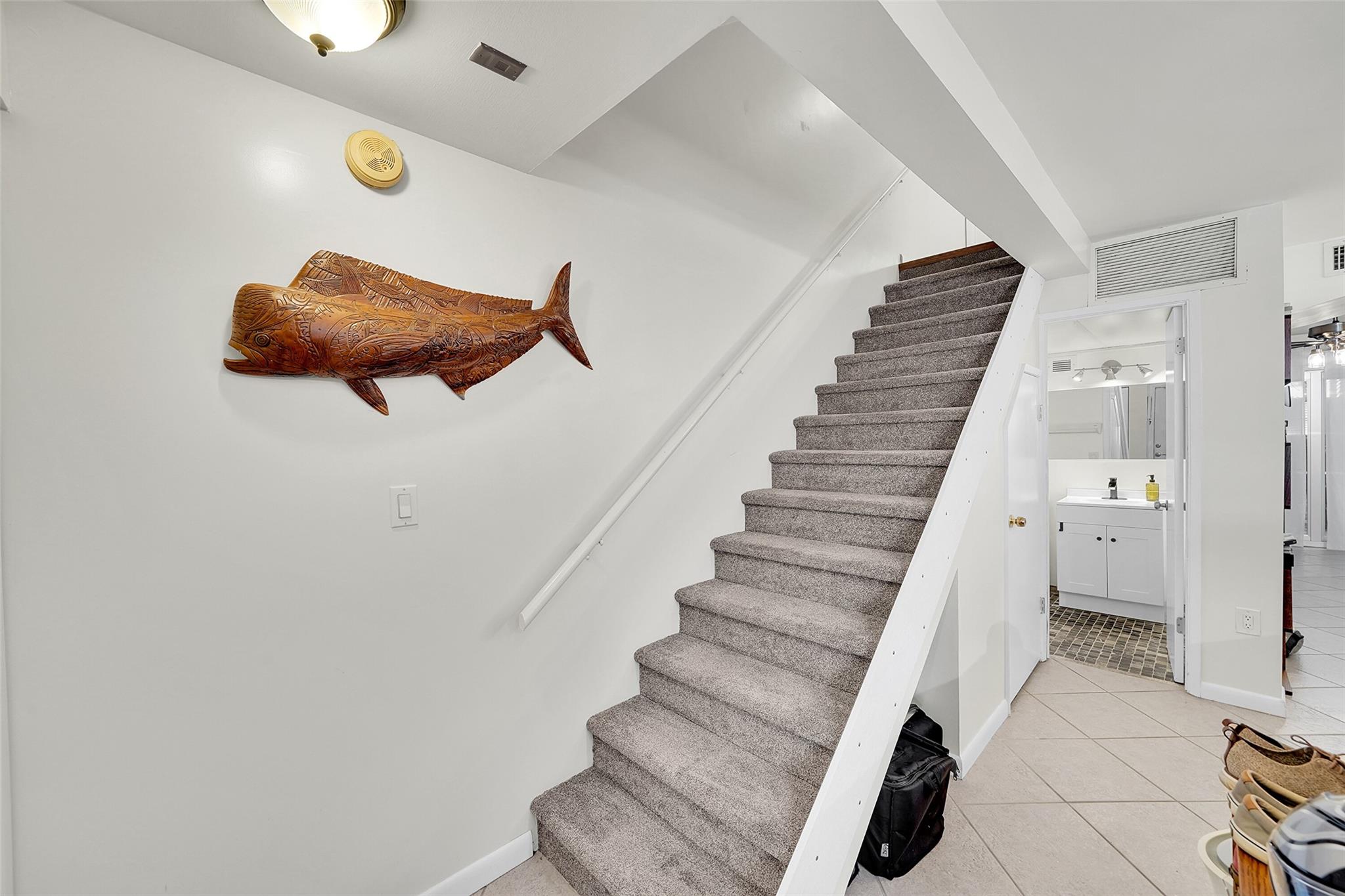 Step into homeownership with this amazing 2-story, 2 bed/1.5 bath condo in a gated community! Park right at your front door and head into an updated kitchen and spacious living room with peaceful garden views. Slide open the impact glass doors to your private, fenced patio—perfect for coffee, plants, or evening hangs. Downstairs also features in-unit laundry and a guest bath. Upstairs, enjoy two oversized bedrooms (yes, a king fits!) and a stylishly remodeled full bath. The community has it all: pool, gym, tennis, racquetball, sauna, and game room. Tons of guest parking, too! Just minutes from beaches, shopping on Federal, and I-95. *No rentals for first 2 years.