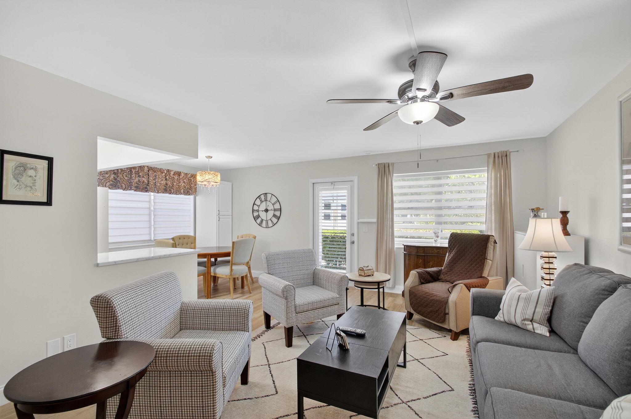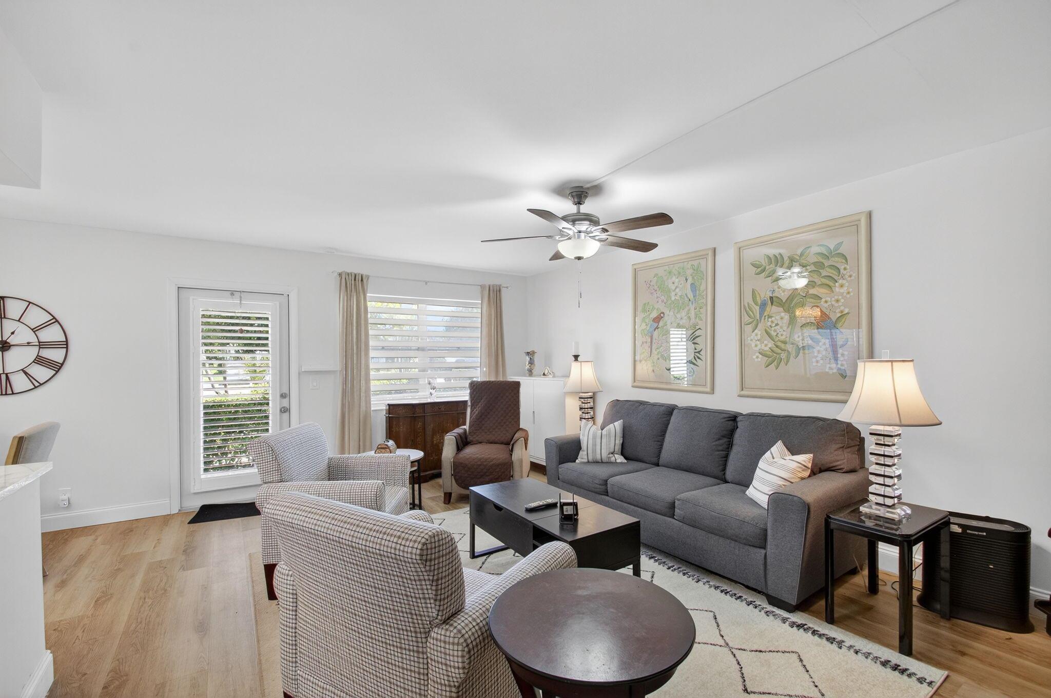 Don't miss this first floor corner unit in the very active adult community of Century Village. The unit has been completely upgraded with all the bells and whistles. It has a nice view from the lanai. There is also an electric fireplace for ambience. Century Village has numerous activities for everyone, provides transportation to shops, shows and more. Close to shopping, restaurants, the beach and Palm Beach Airport. Can be sold unfurnished. New A/C being installed 12/1/25. The roof was replaced two years and, concrete work on the building was done last year and the building is scheduled to be painted. A very well maintained building.