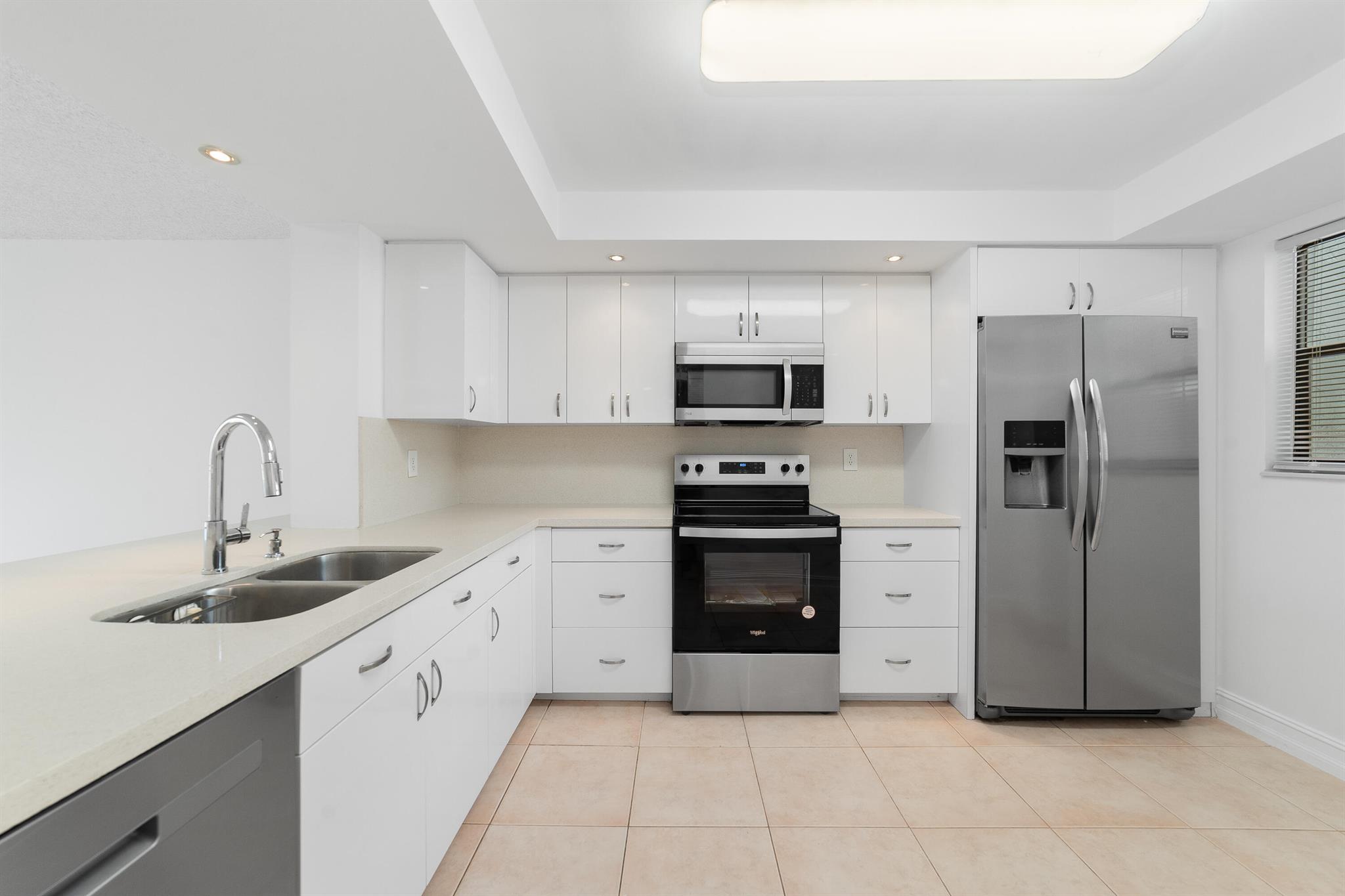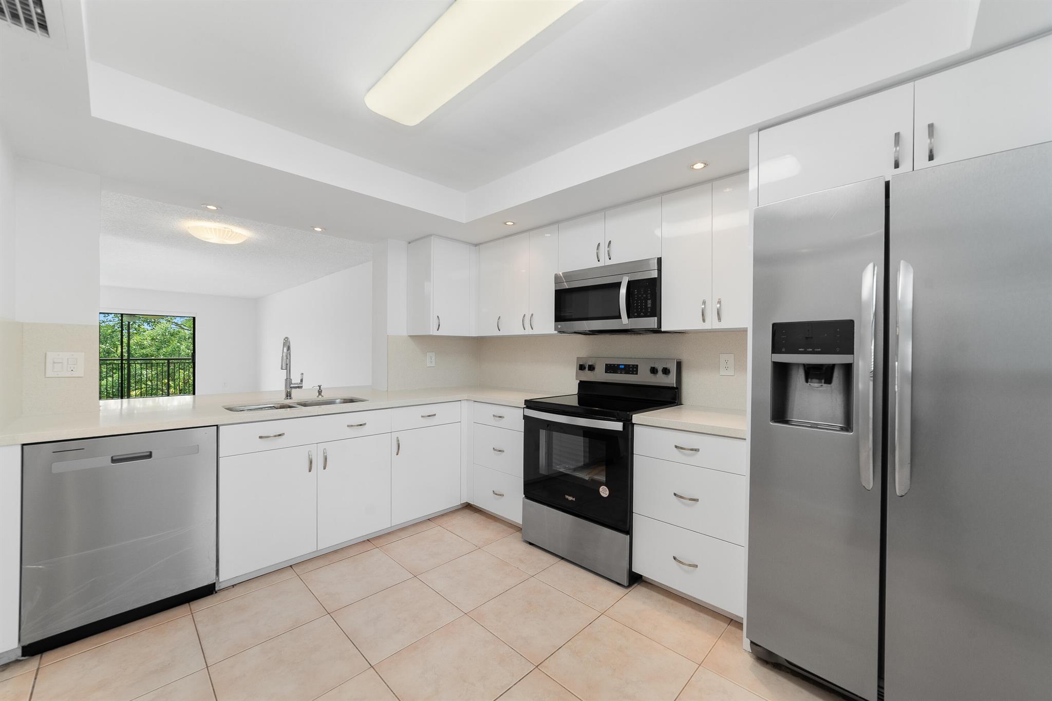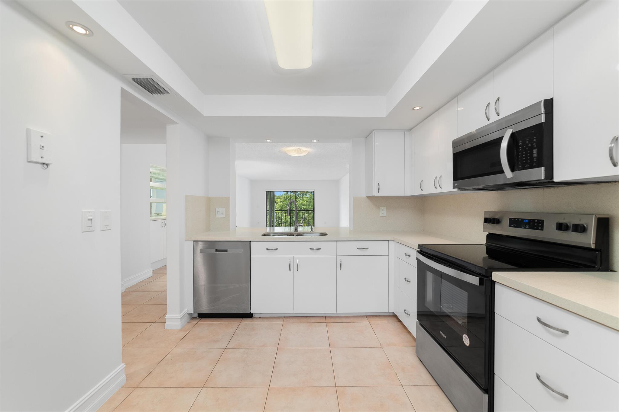 Immaculate and Spacious 2-Bedroom, 2-Bathroom Condo with Spectacular Golf Course Views. This beautifully cared-for residence offers a bright and open interior layout. The kitchen features stainless steel appliances, generous cabinet space, and a convenient pass-through window that connects to the dining and living areas--ideal for both everyday living and entertaining. A built-in bar in the dining area serves perfectly as a coffee station, decorative display, or additional serving space. Tile flooring enhances the main living areas, while the bedrooms are finished with newer, plush carpeting. The expansive primary suite includes a walk-in closet and a private ensuite bath with a walk-in shower. Both bathrooms showcase elegant floor-to-ceiling tile.